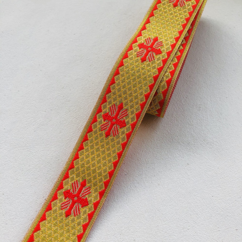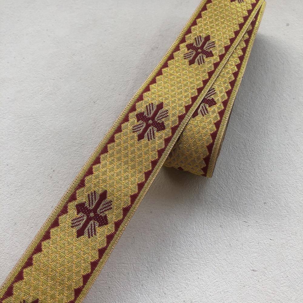 자카드 리본 민족 레이스 금속 와이어 골드 크로스 패턴 의류 액세서리 폭 3.3 cm A-2901