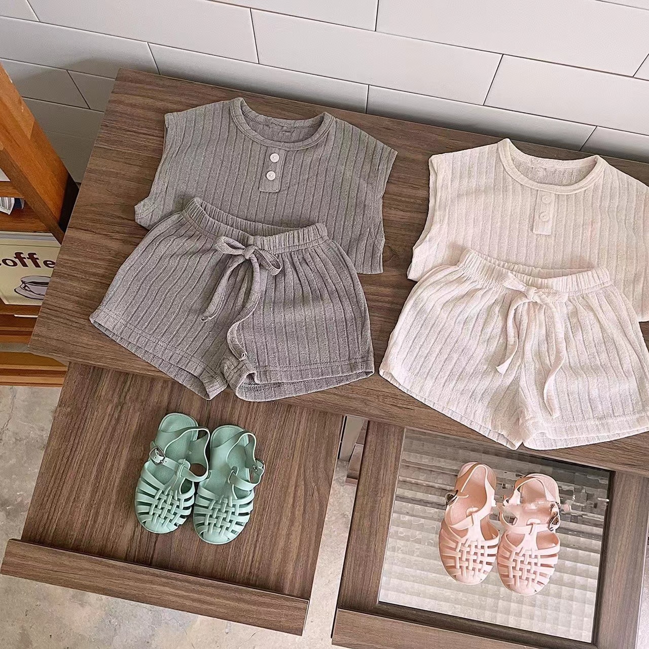 여름 아기 민소매 티셔츠 소년 반바지 세트 어린이 면 투피스 여아 캐주얼 아동복스토어 가기