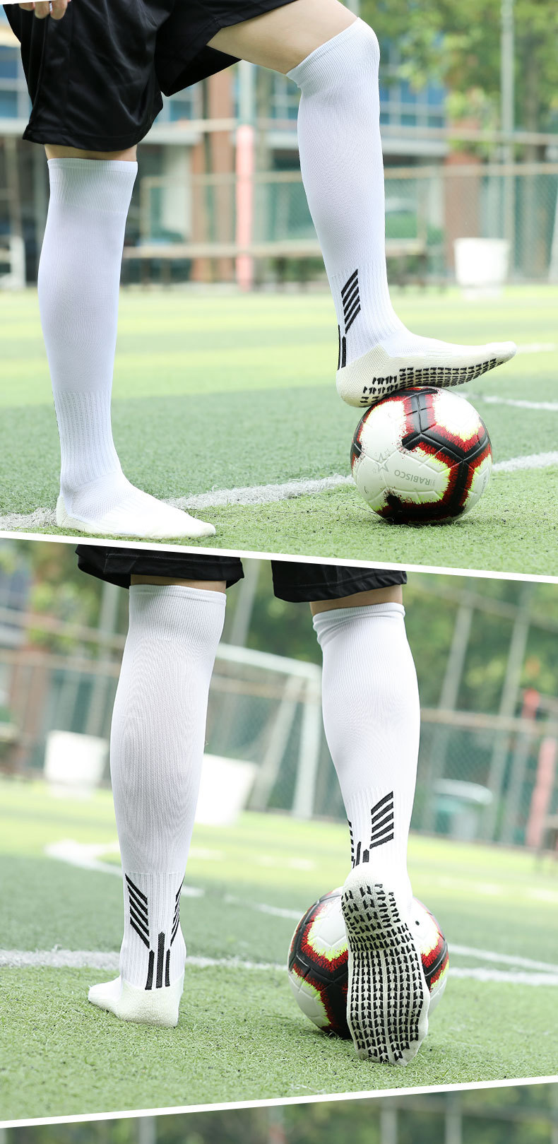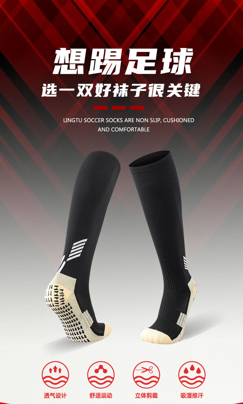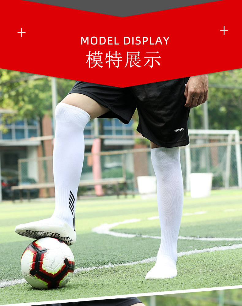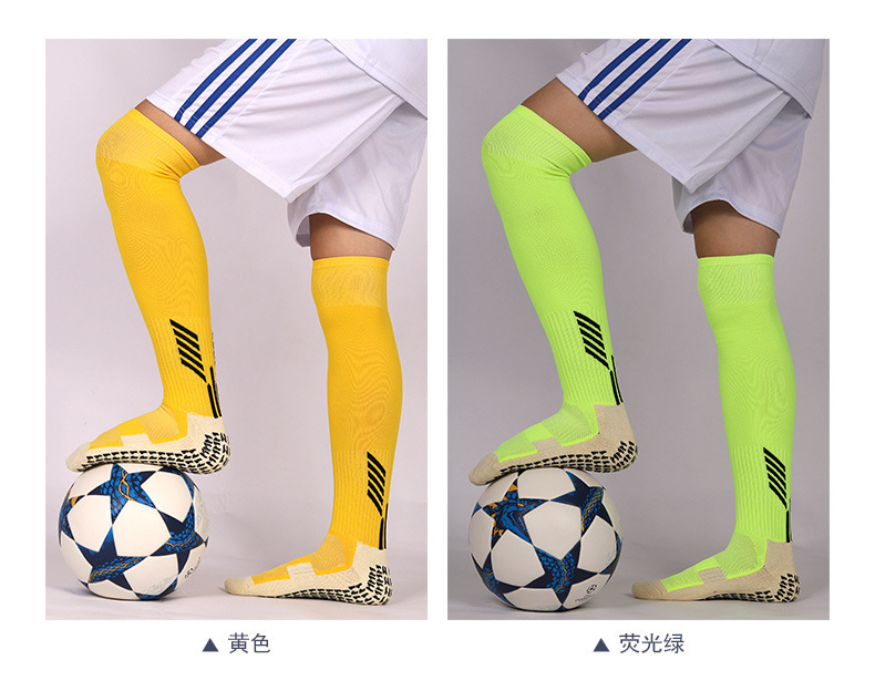 국경 간 축구 양말 남성용 미끄럼 방지 양말 긴 무릎 위 점선 양말 두꺼운 수건 바닥 높은 스포츠 양말 도매스토어 가기