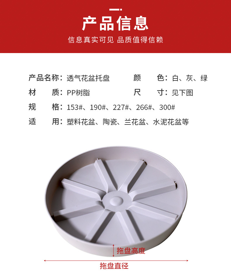 통기성 꽃 냄비 트레이 라운드 두꺼운 플라스틱 수지 안티 썩은 루트 기본 트레이