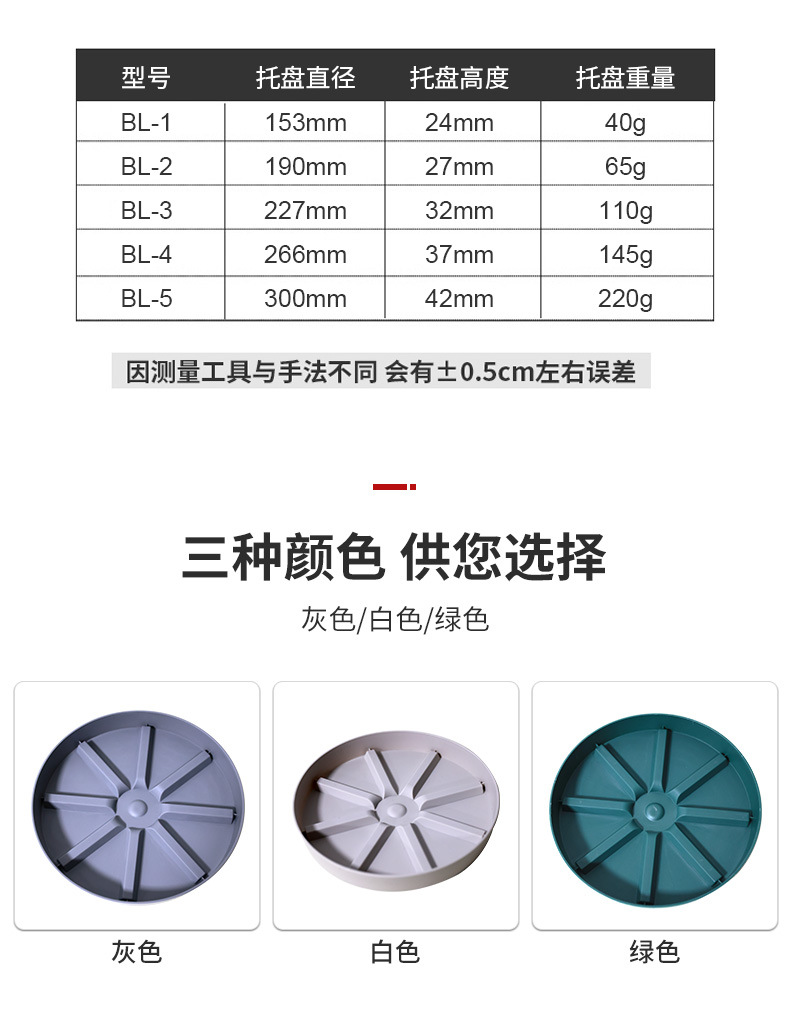 통기성 꽃 냄비 트레이 라운드 두꺼운 플라스틱 수지 안티 썩은 루트 기본 트레이스토어 가기