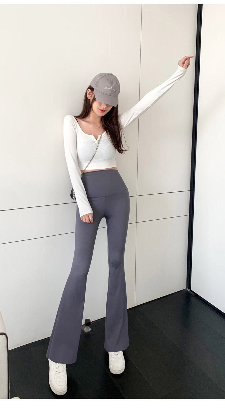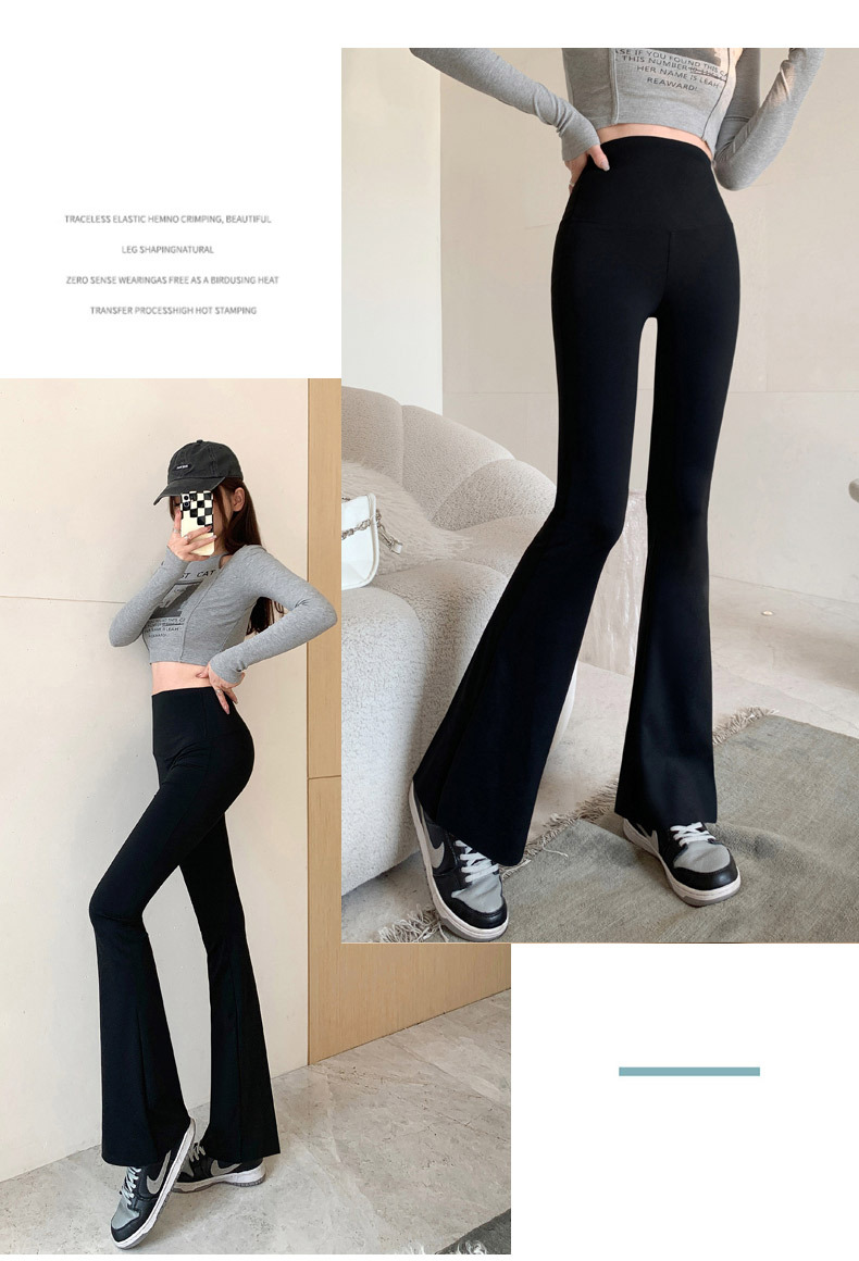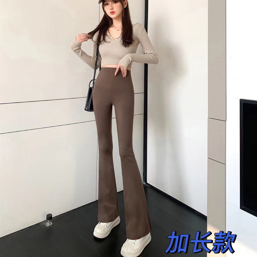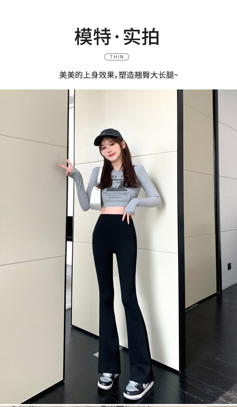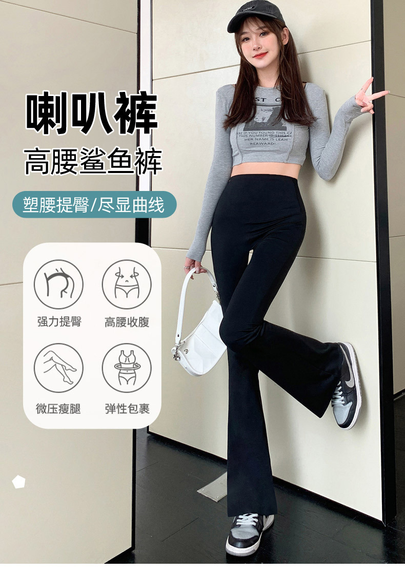 타이트 슬림핏 말굽 바지 여성용 겉옷 상어 바지 하이 웨이스트 힙 리프트 봄과 가을 레깅스 요가 스트레치 플레어 팬츠