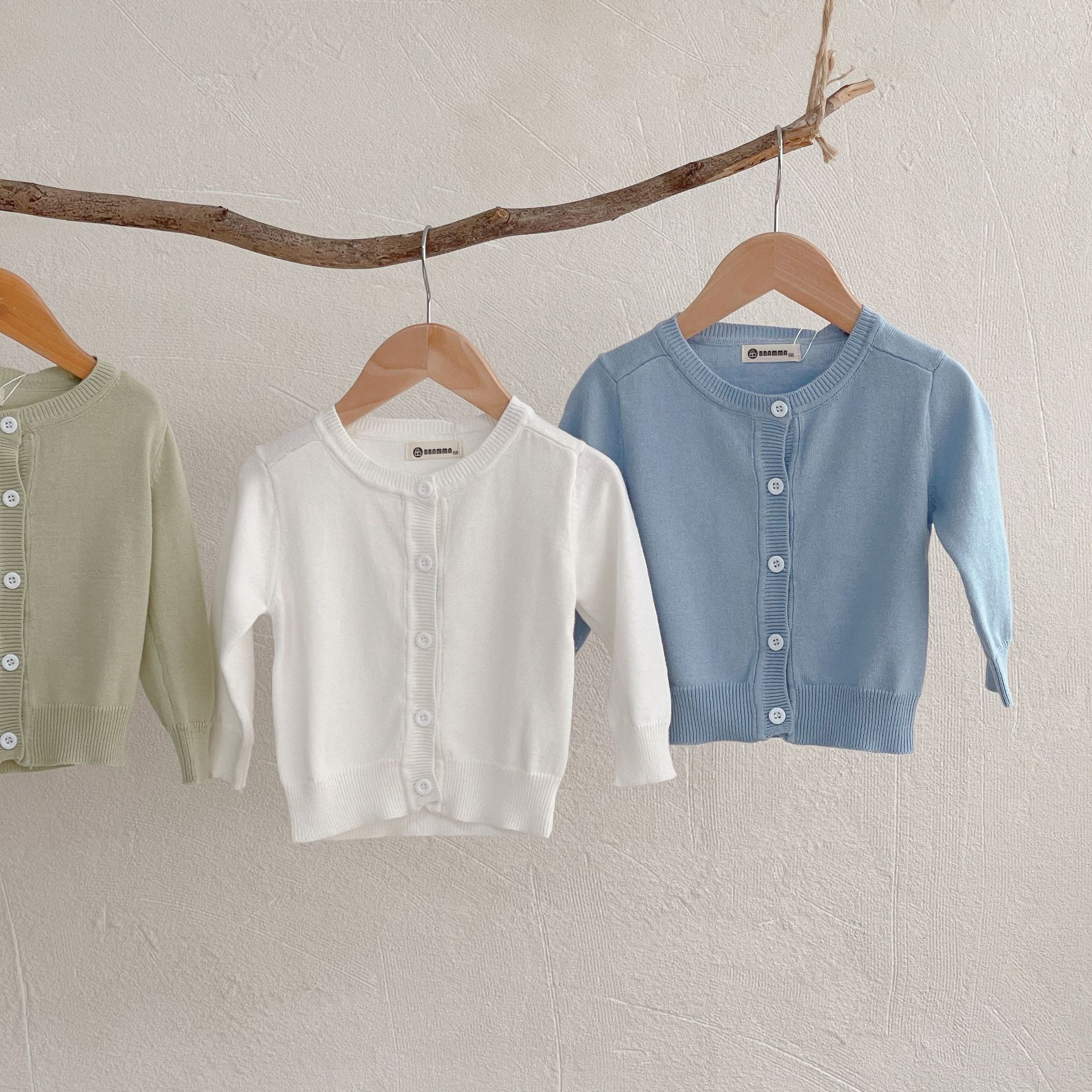 아기 여름용 얇은 스웨터 가디건 에어컨 셔츠 신생아복 아기 봄용 싱글버튼 스웨터 얇은 코트스토어 가기