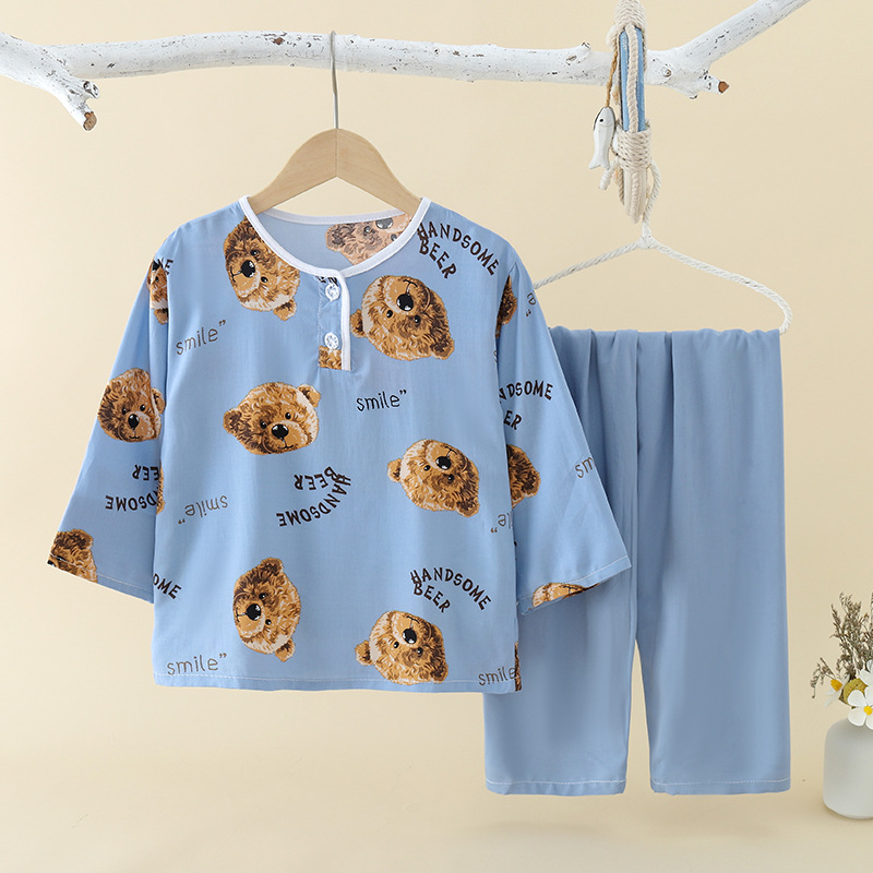 여름 어린이 면 실크 잠옷 얇은 소년 소녀 아기 가정복 소년 면 실크 여아 에어컨 옷 세트