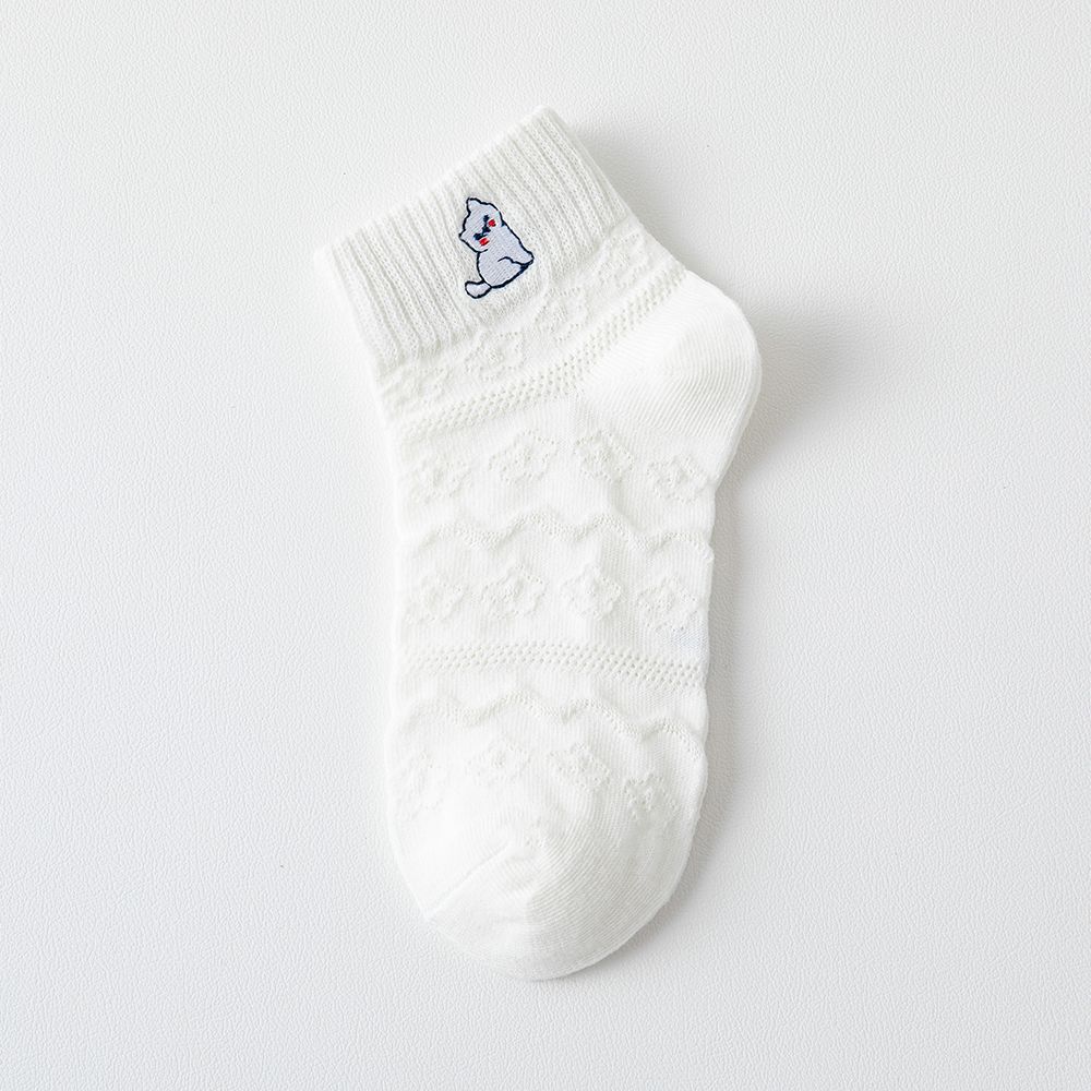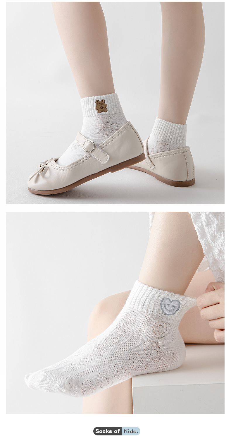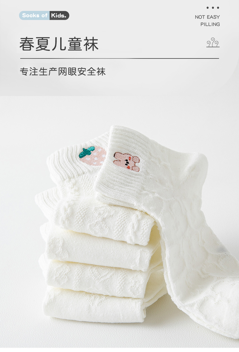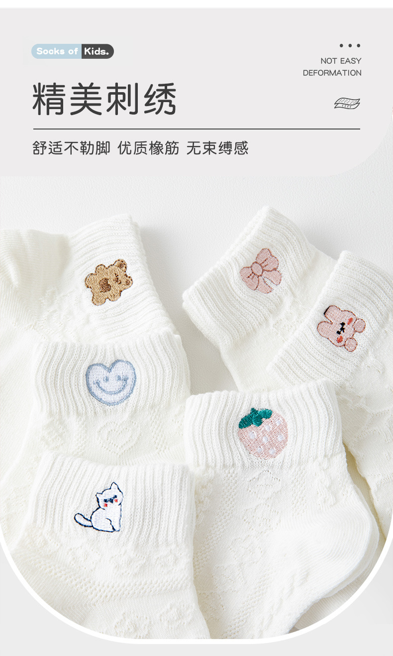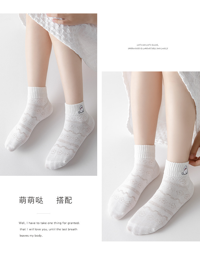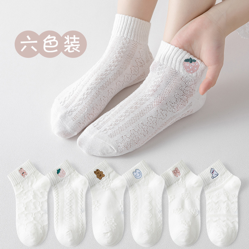 어린이 양말 소녀 자수 단색 봄과 여름 메쉬 순수 빗질면 어린이 짧은 튜브 얇은 양말 도매스토어 가기
