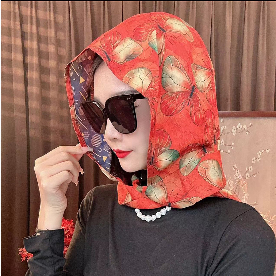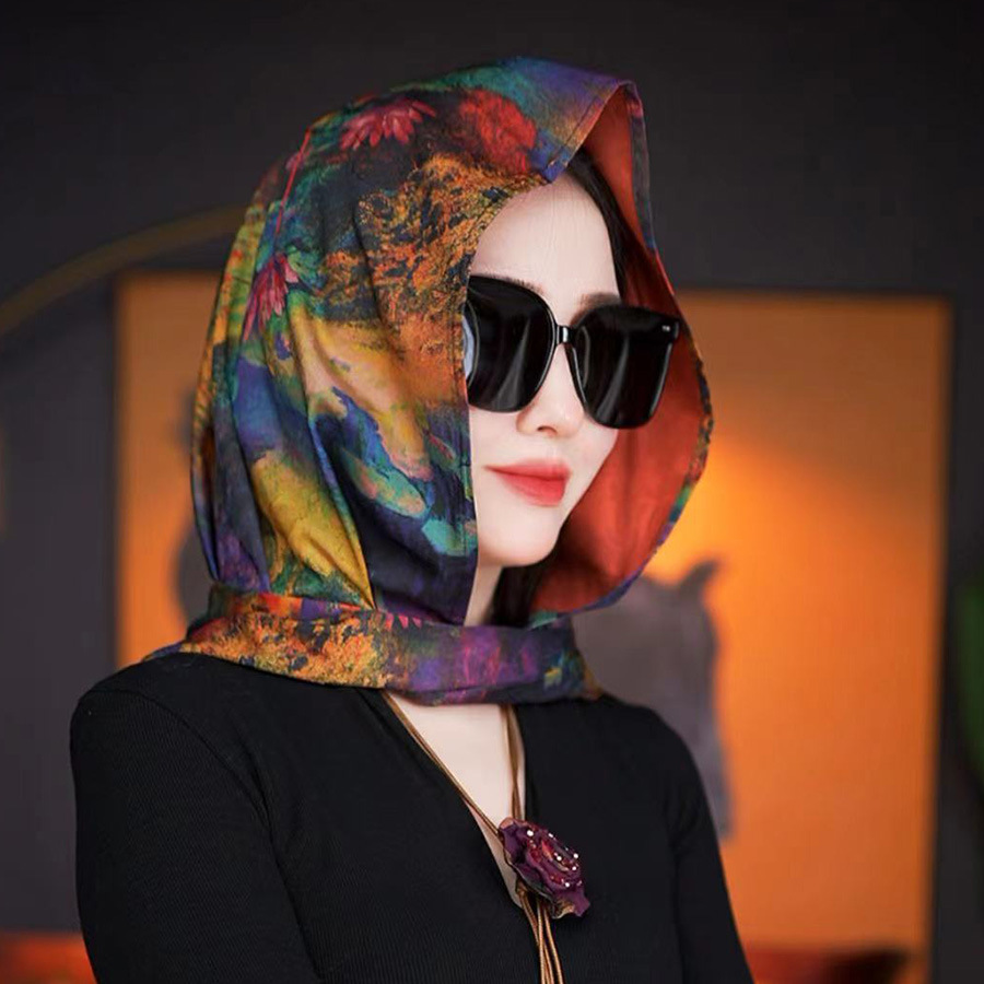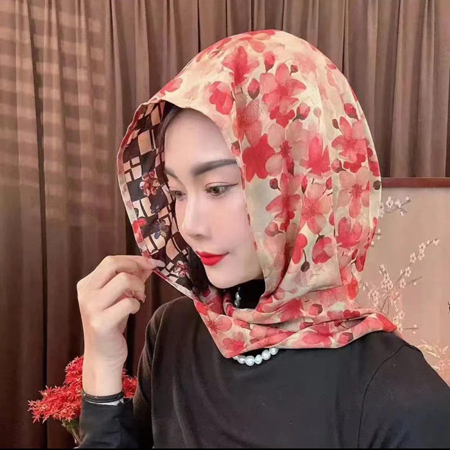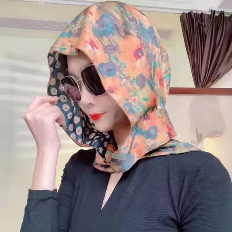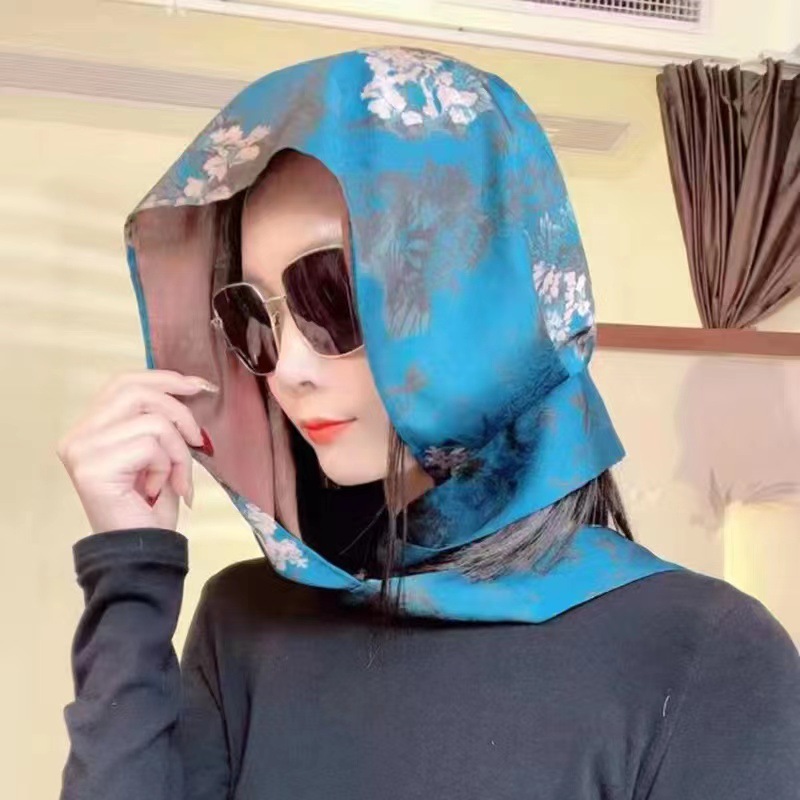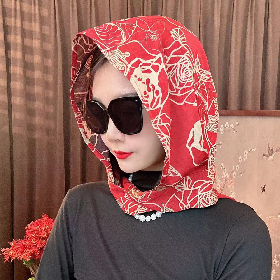 2024 여성의 새로운 여행 선스크린 스카프 모자 모방 Xiangyun 원사 양면 꽃 장미 다기능 여성용 스카프스토어 가기