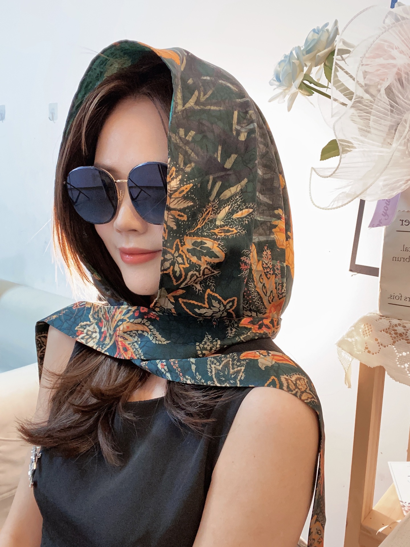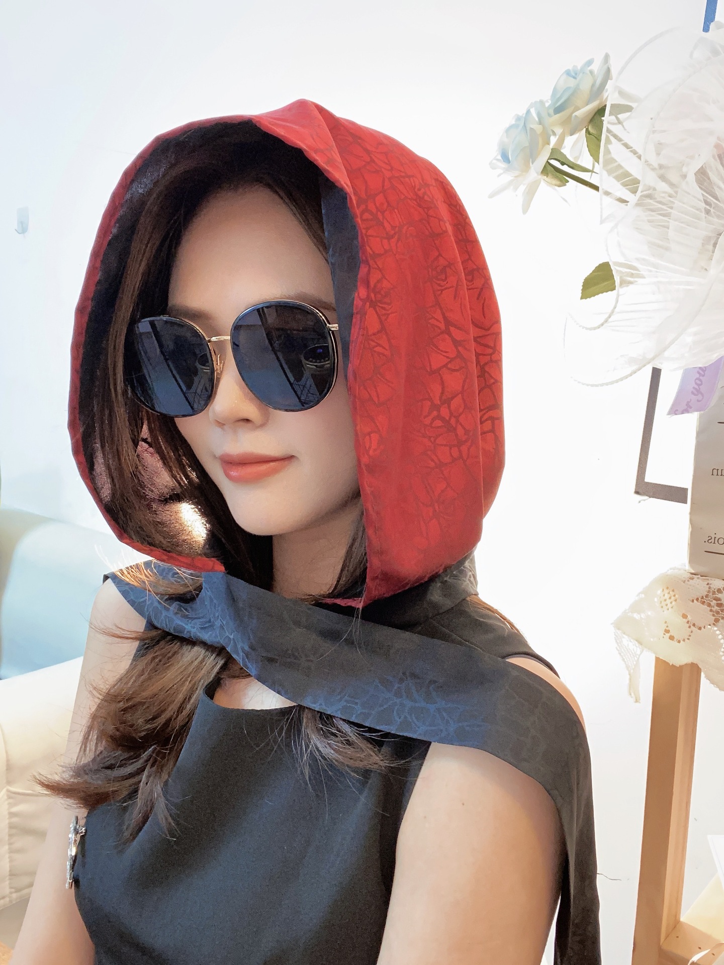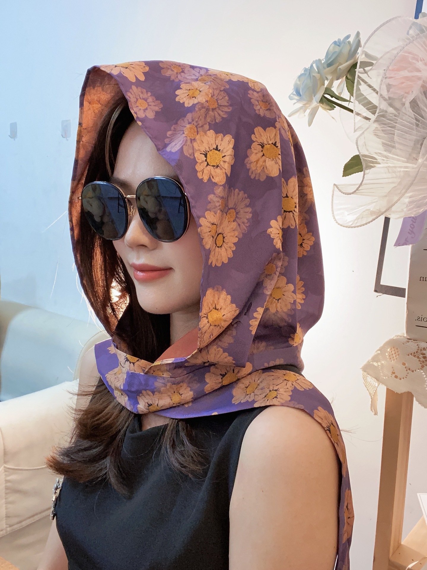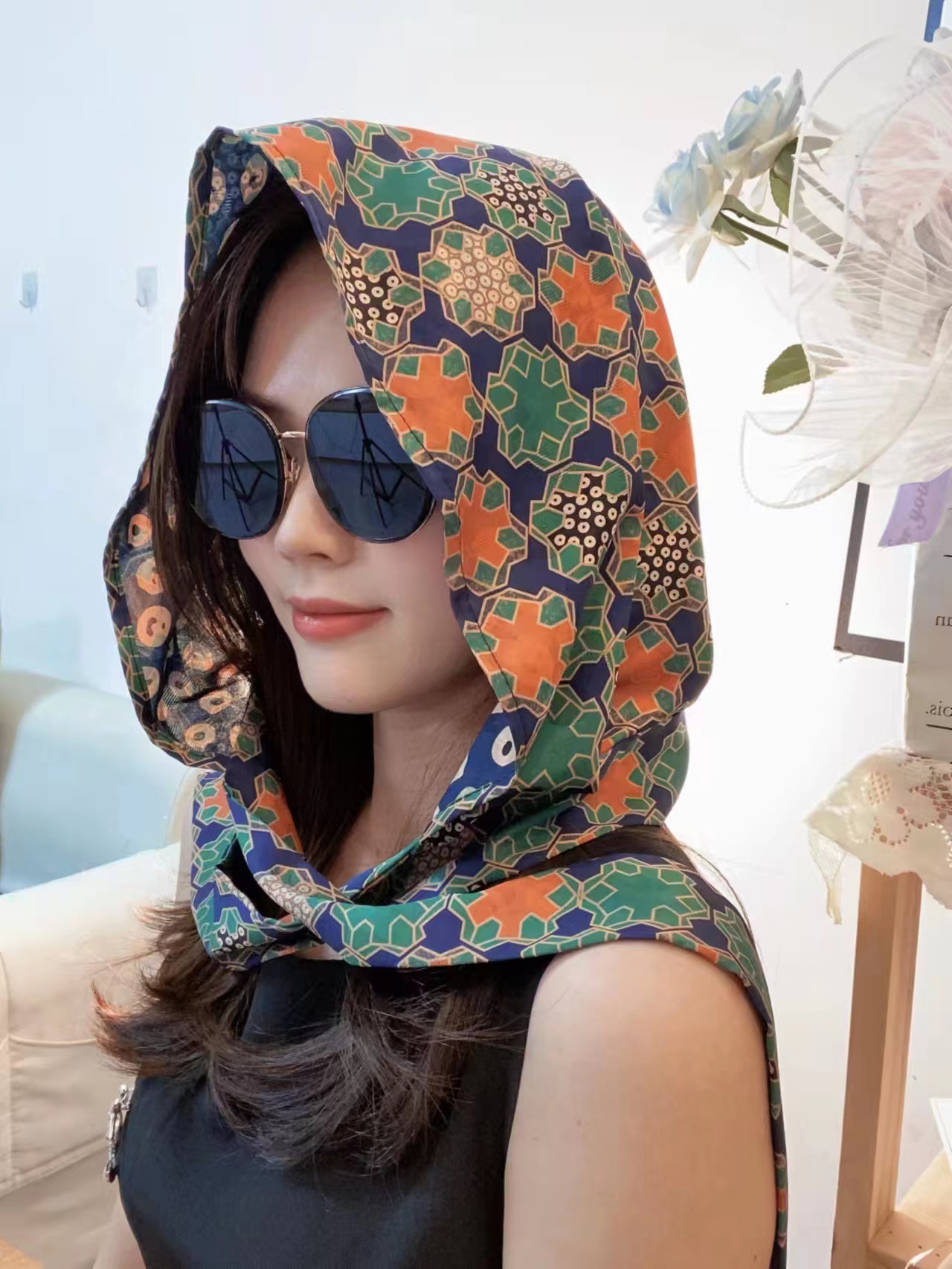 2024 여성의 새로운 여행 선스크린 스카프 모자 모방 Xiangyun 원사 양면 꽃 장미 다기능 여성용 스카프스토어 가기