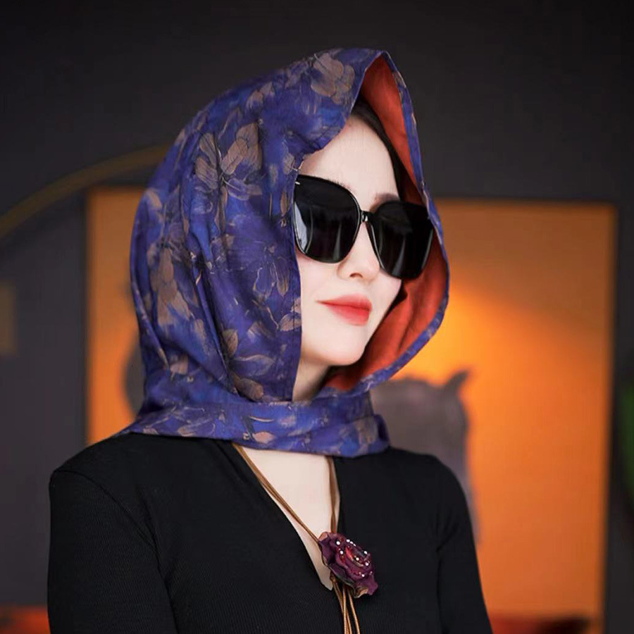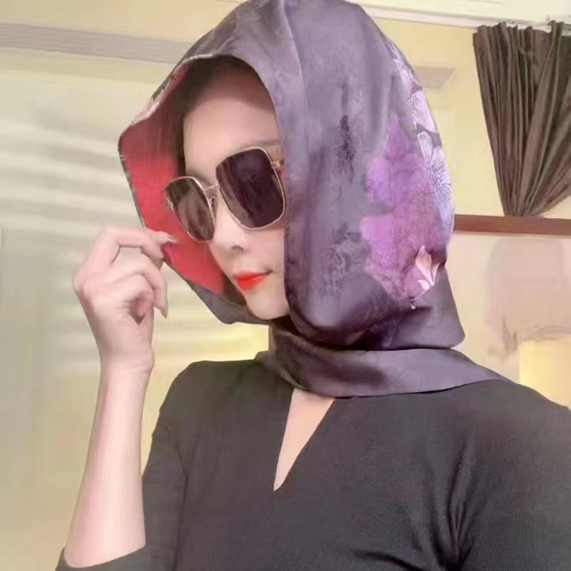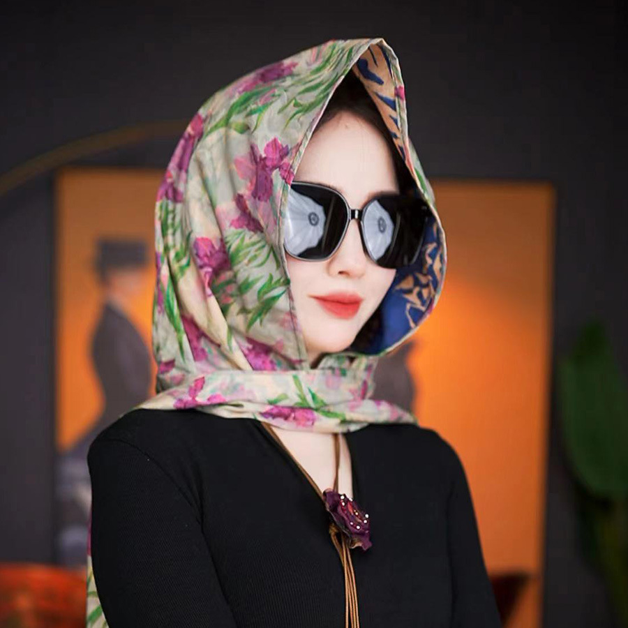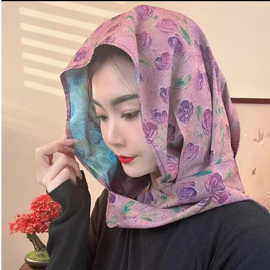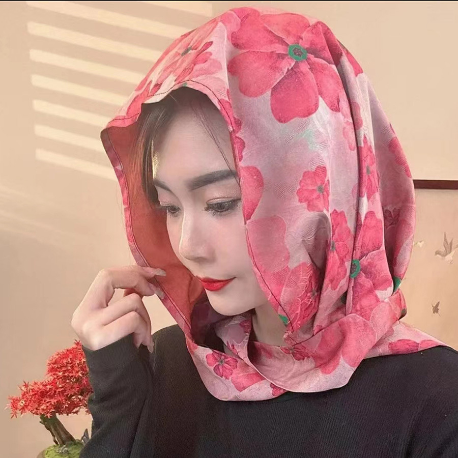 2024 여성의 새로운 여행 선스크린 스카프 모자 모방 Xiangyun 원사 양면 꽃 장미 다기능 여성용 스카프
