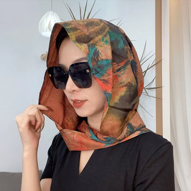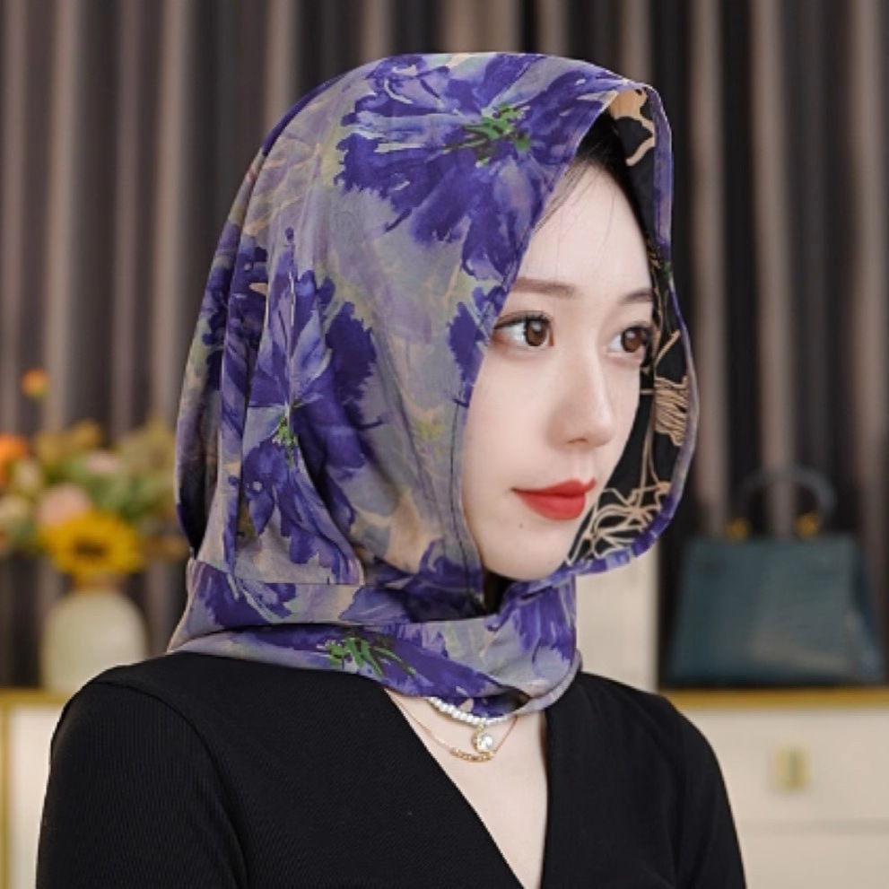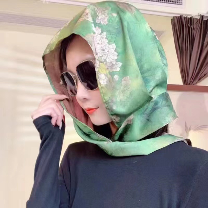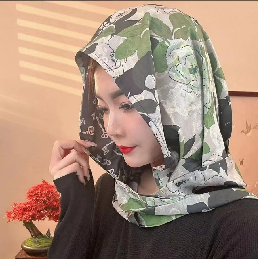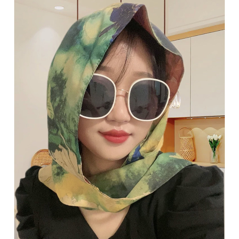 2024 여성의 새로운 여행 선스크린 스카프 모자 모방 Xiangyun 원사 양면 꽃 장미 다기능 여성용 스카프