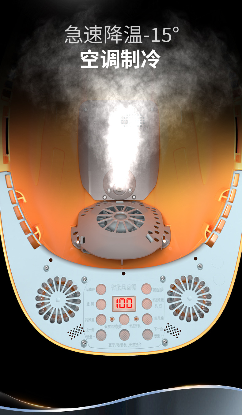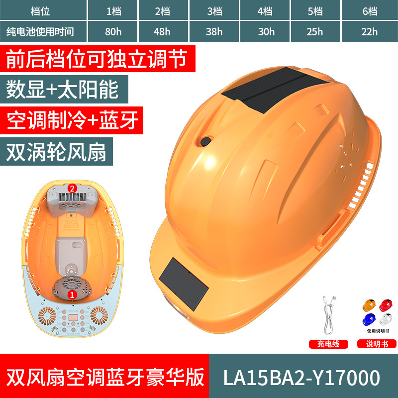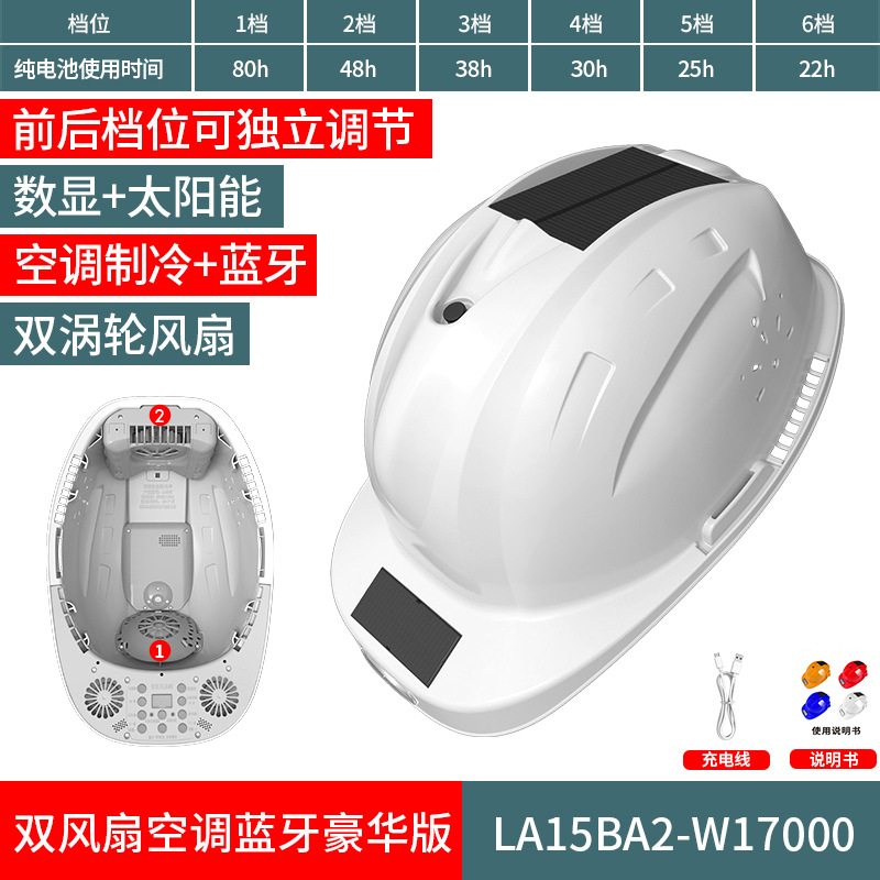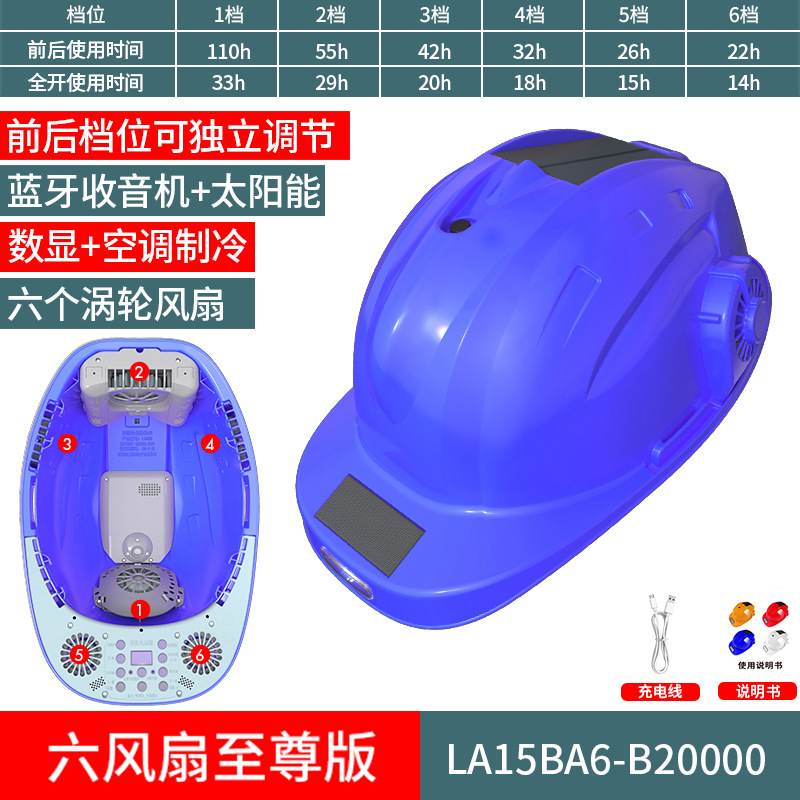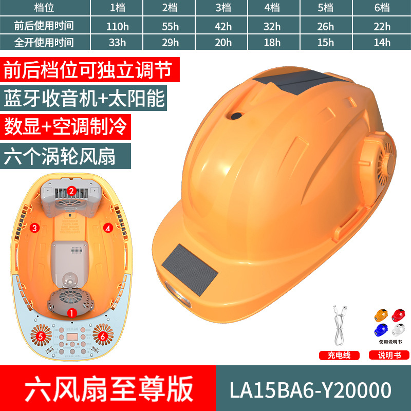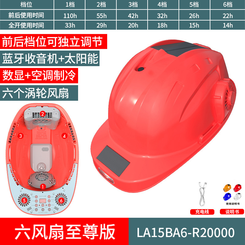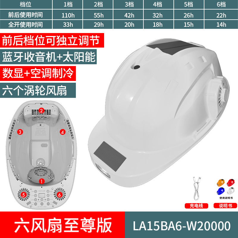 스마트 6팬 모자, 건설 현장 보호용, 분무식 냉각, 블루투스 음악 감상, 충전식, 내장 리튬 배터리, 리더십 헬멧