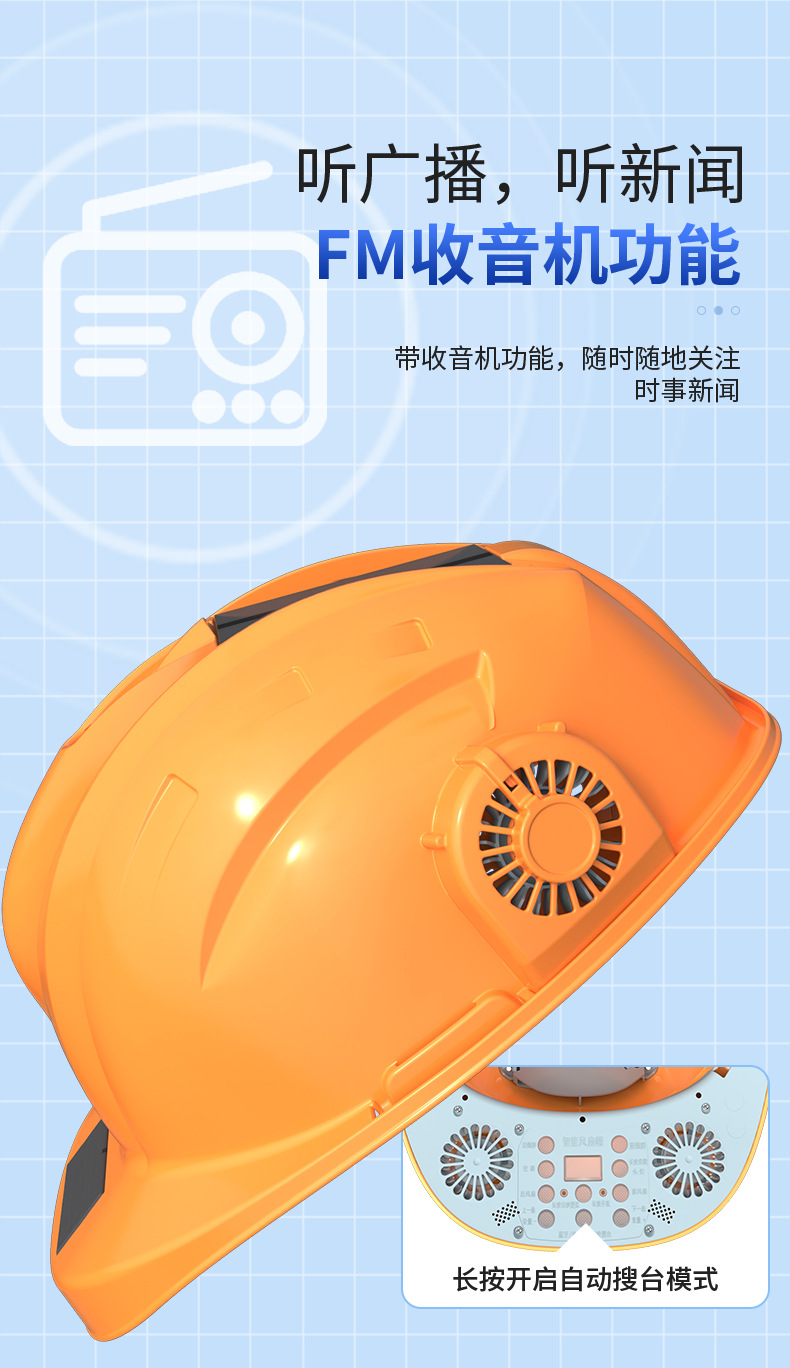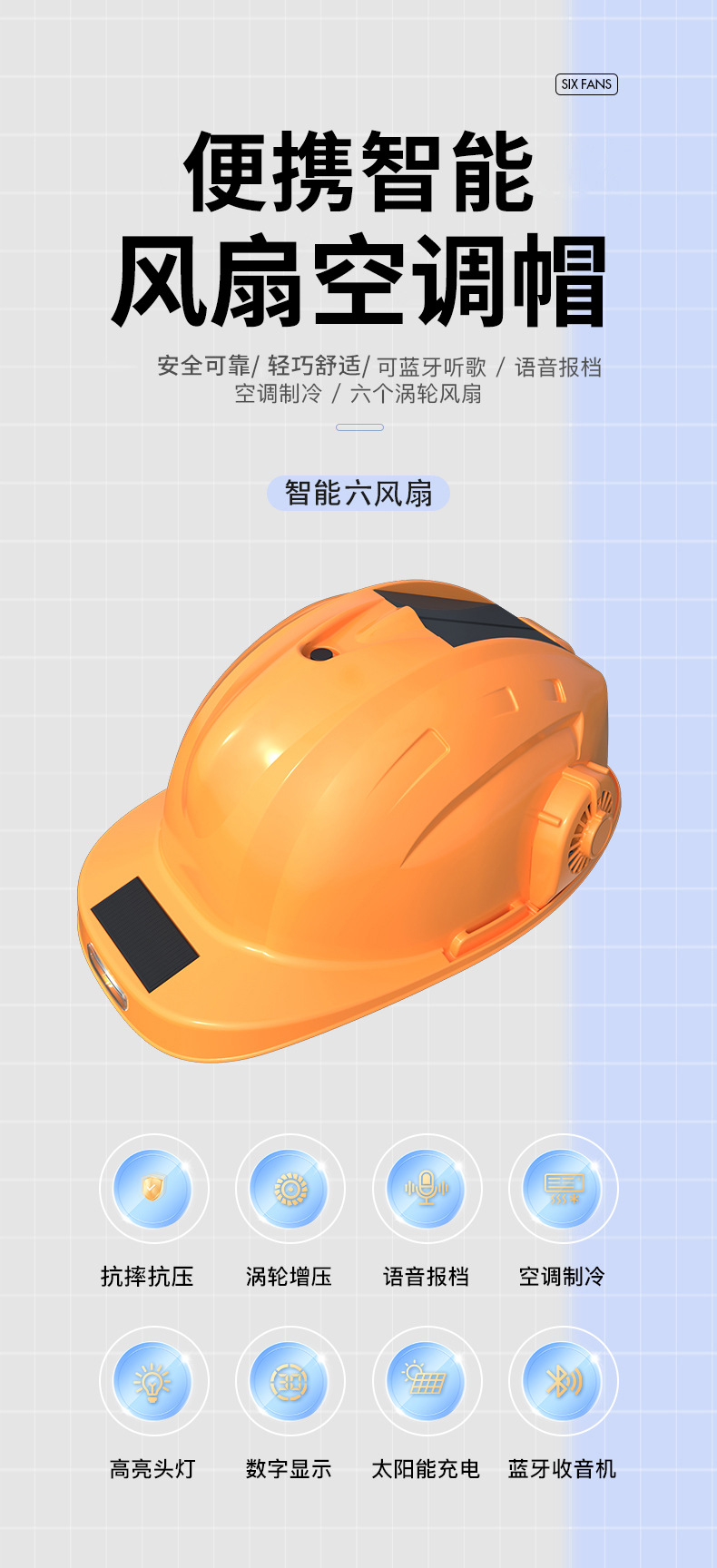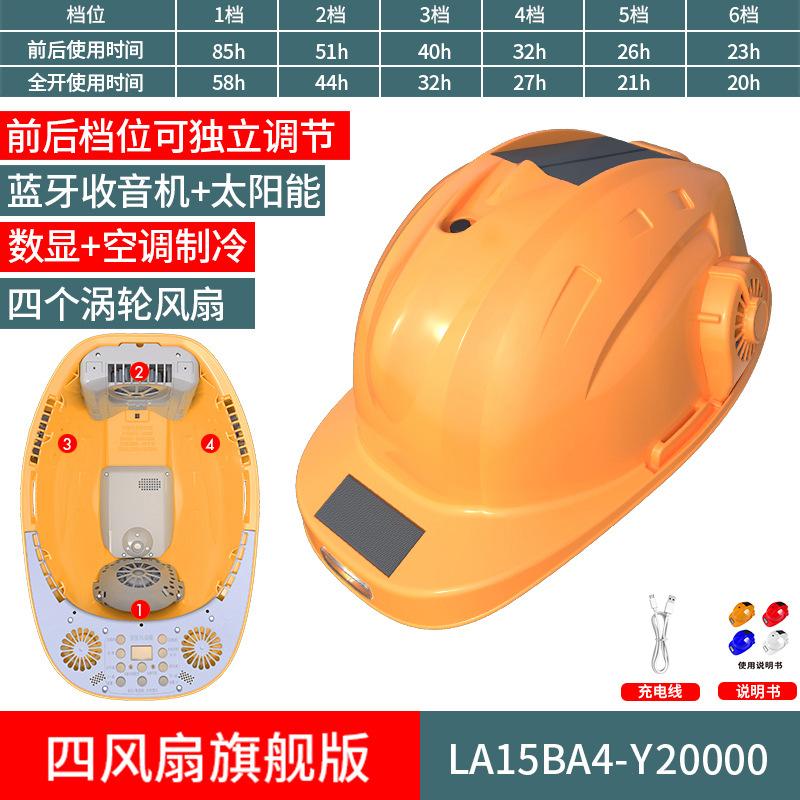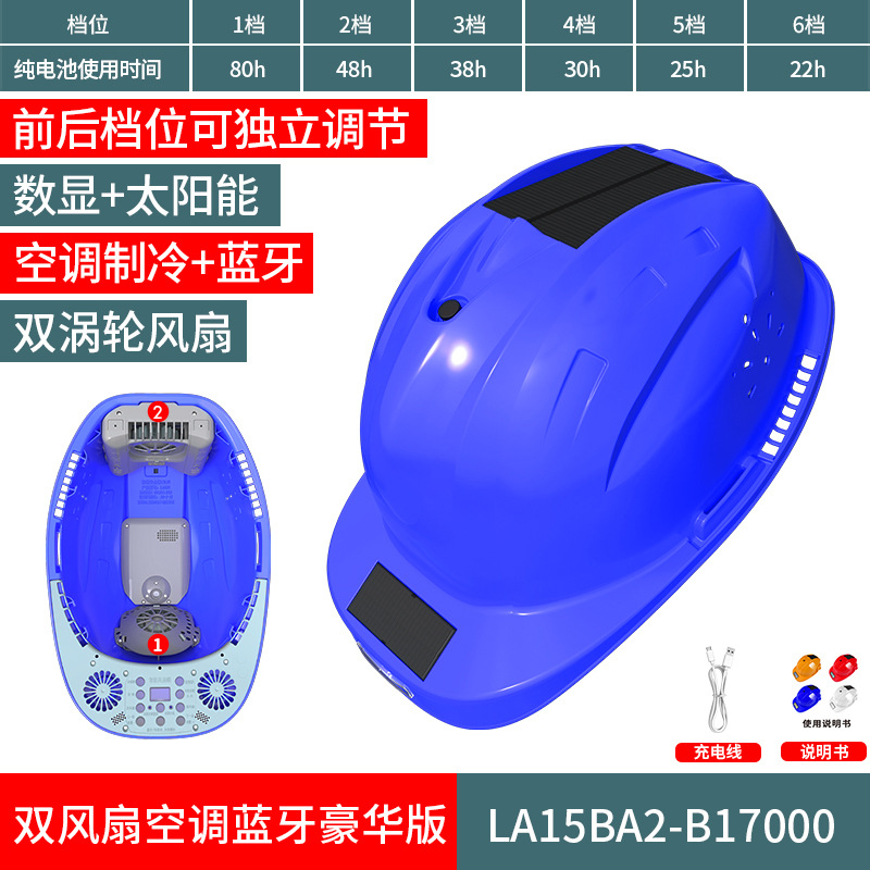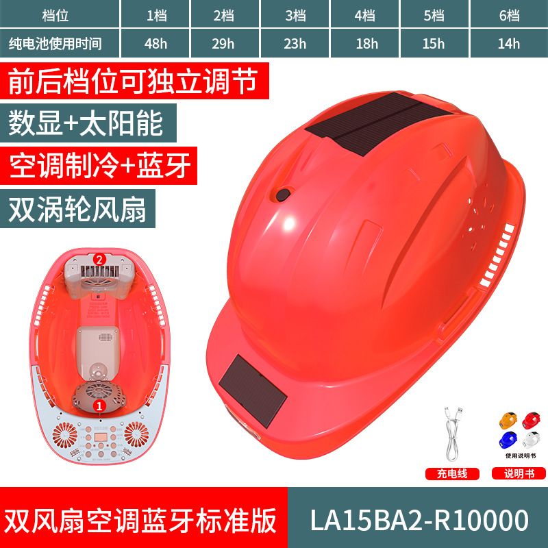 스마트 6팬 모자, 건설 현장 보호용, 분무식 냉각, 블루투스 음악 감상, 충전식, 내장 리튬 배터리, 리더십 헬멧