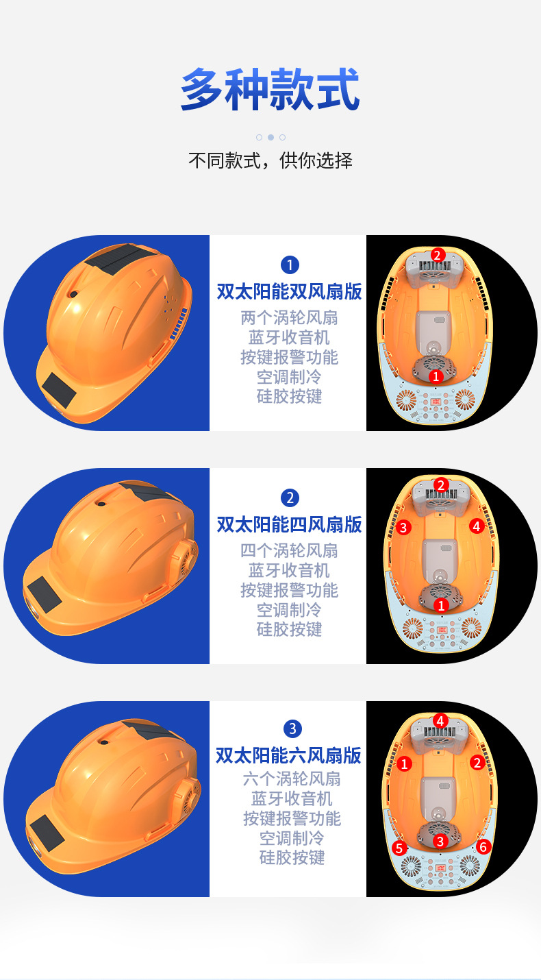 스마트 6팬 모자, 건설 현장 보호용, 분무식 냉각, 블루투스 음악 감상, 충전식, 내장 리튬 배터리, 리더십 헬멧스토어 가기