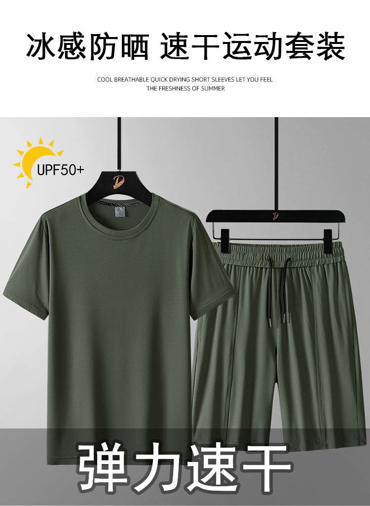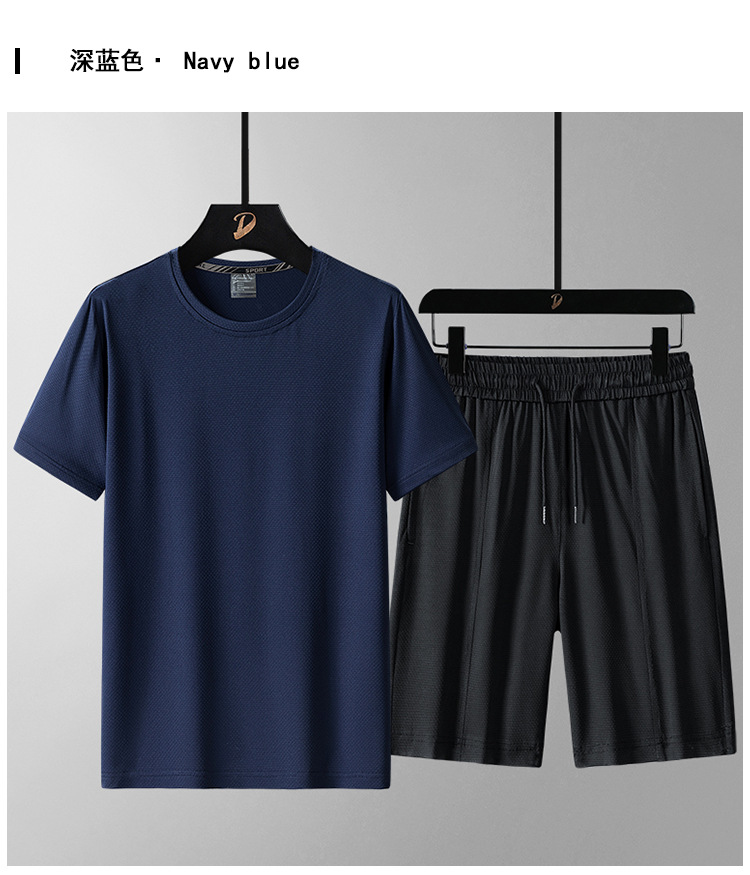 여름 반팔 남자의 속건 통기성 느슨한 플러스 사이즈 반바지 스포츠 세트 티셔츠 피트니스웨어 캐주얼 투피스 세트스토어 가기