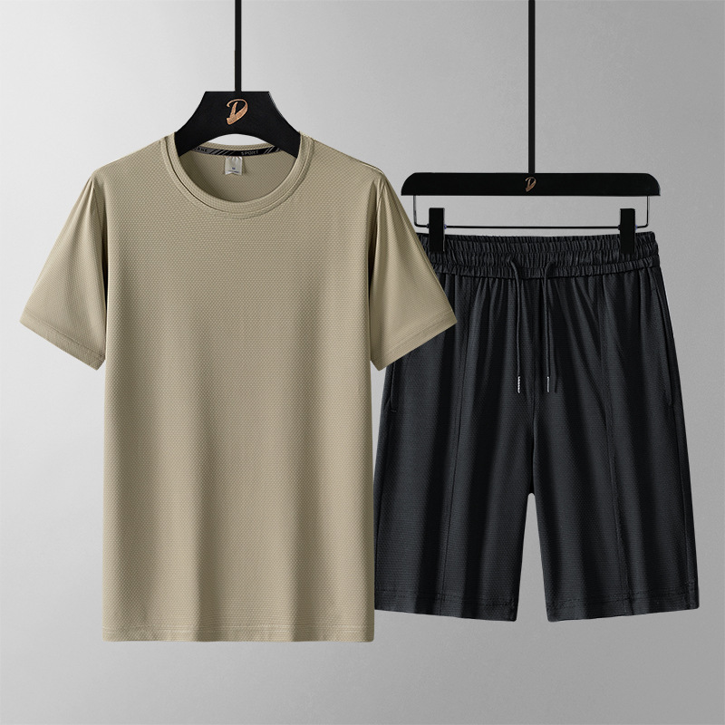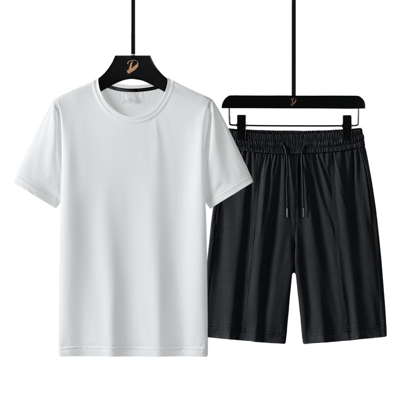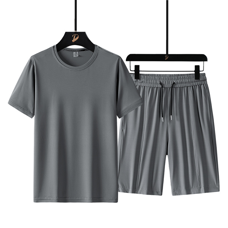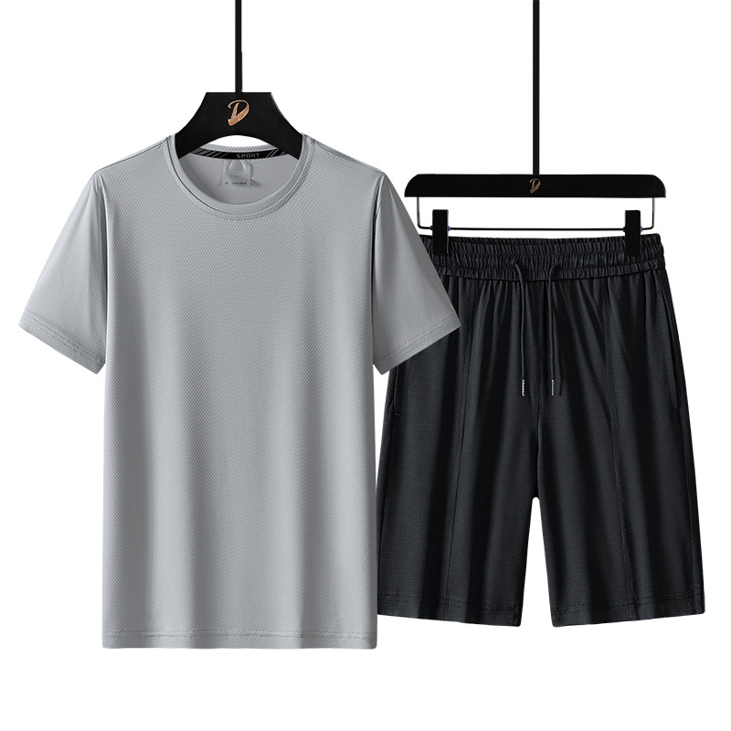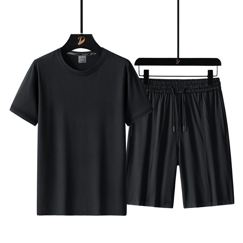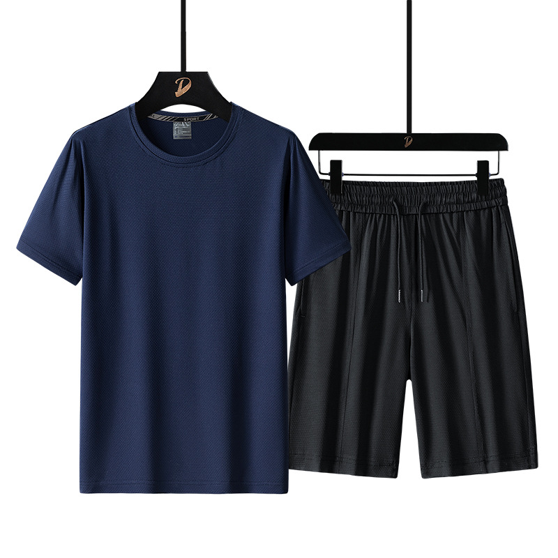 여름 반팔 남자의 속건 통기성 느슨한 플러스 사이즈 반바지 스포츠 세트 티셔츠 피트니스웨어 캐주얼 투피스 세트