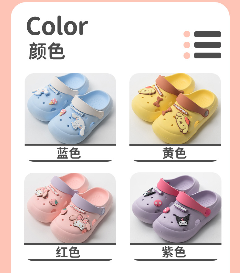 Sanrio EVA 여름 만화 어린이 구멍 신발 겉옷 가정 소년 소녀 샌들 슬리퍼 미끄럼 방지 도매스토어 가기