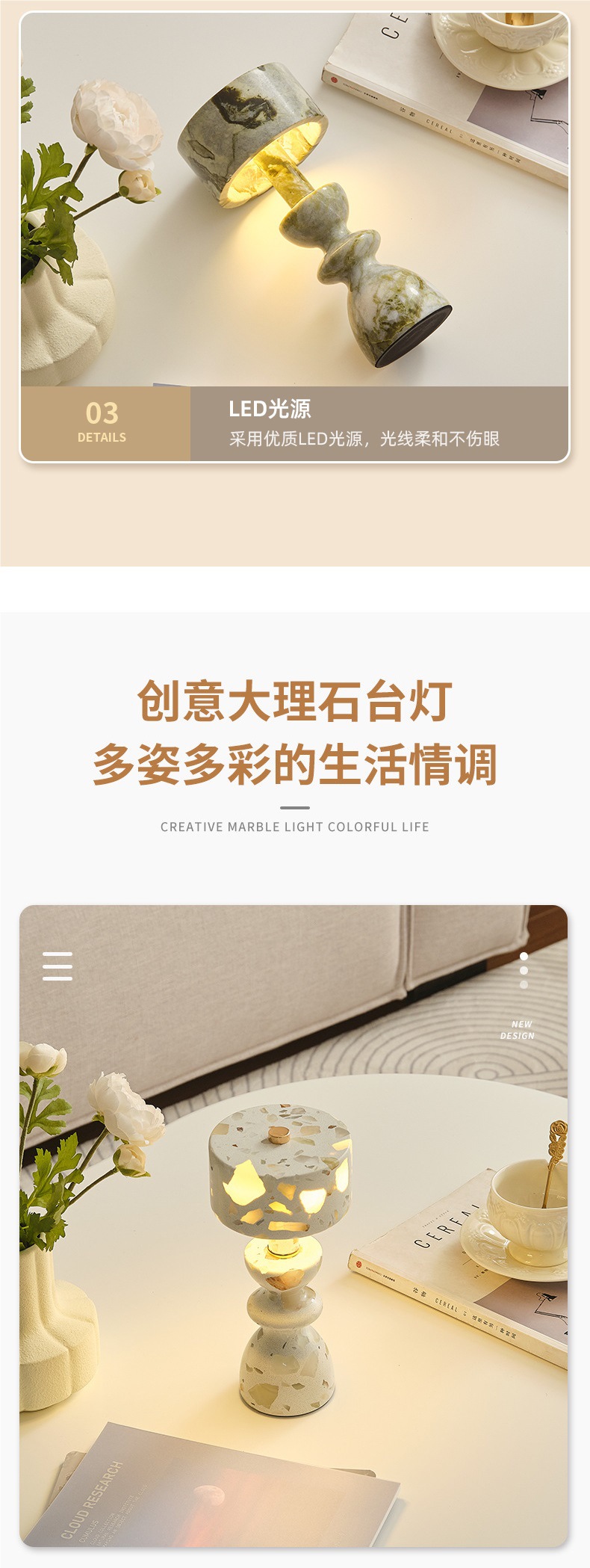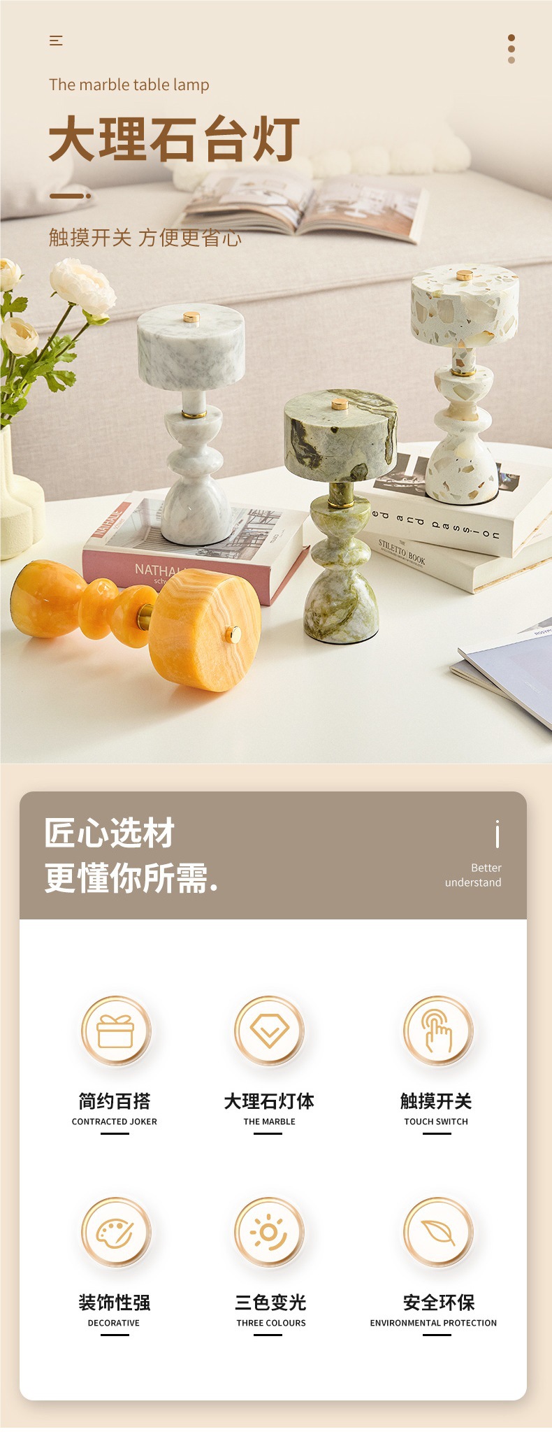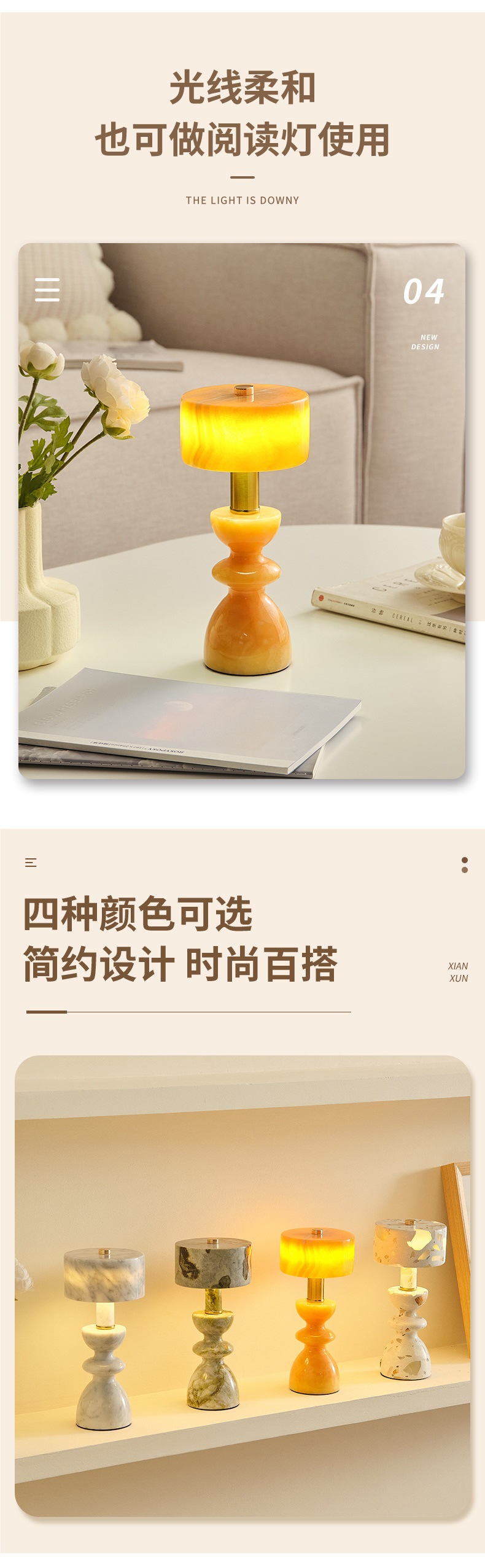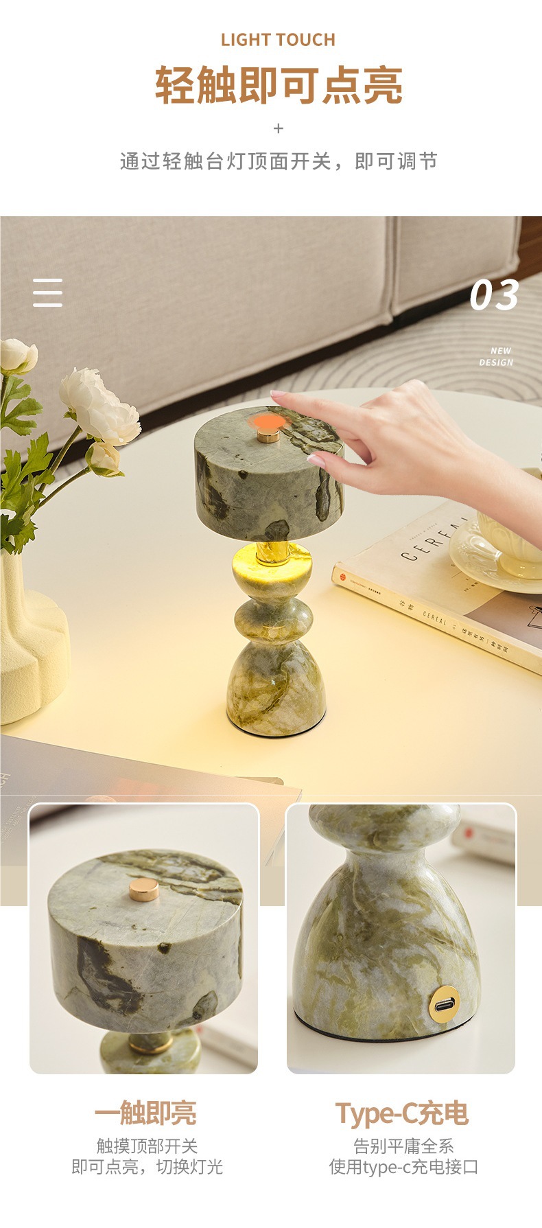 대리석과 옥 테이블 램프 커피 데스크탑 바 램프 북유럽 크리 에이 티브 간단한 충전식 침대 옆 야간 조명스토어 가기