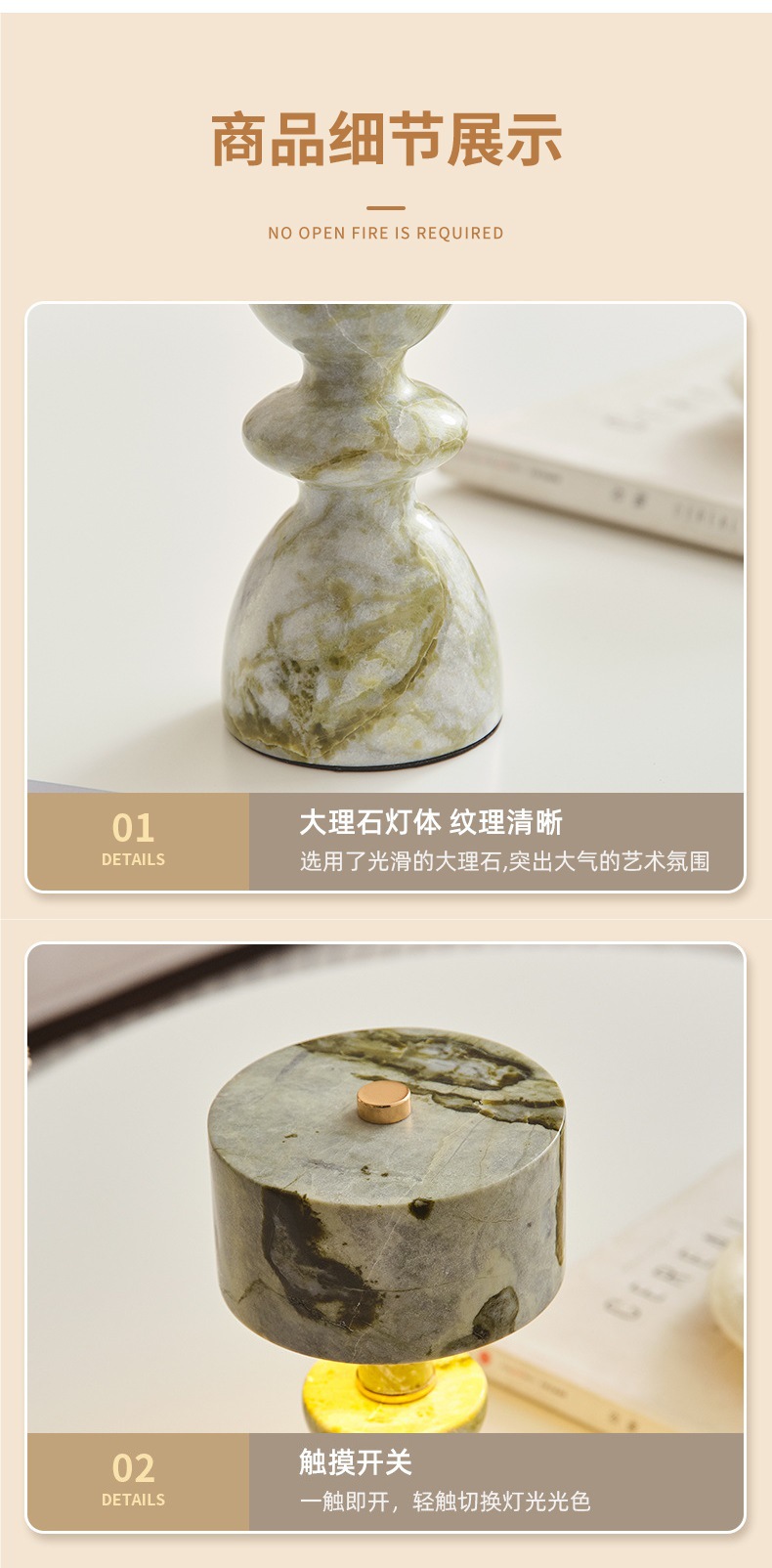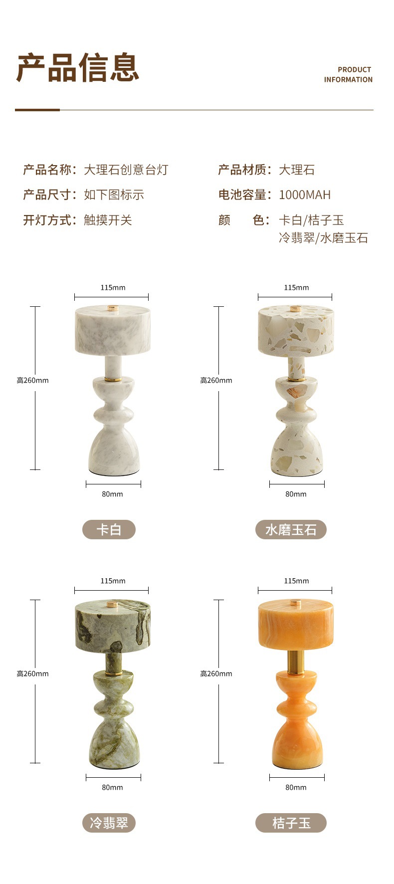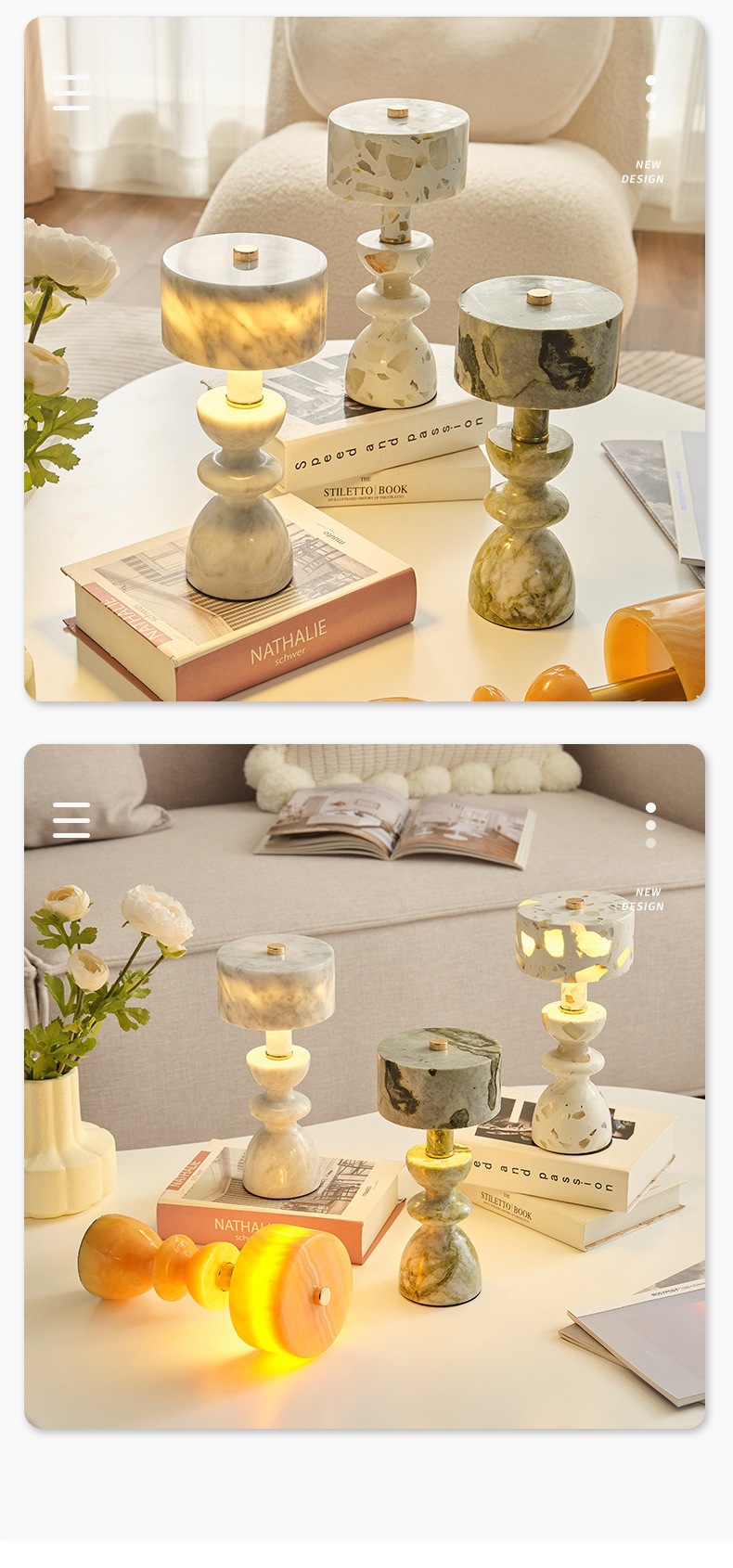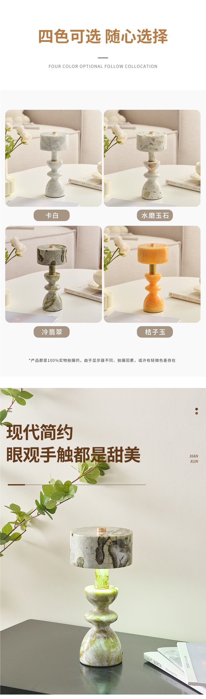 대리석과 옥 테이블 램프 커피 데스크탑 바 램프 북유럽 크리 에이 티브 간단한 충전식 침대 옆 야간 조명