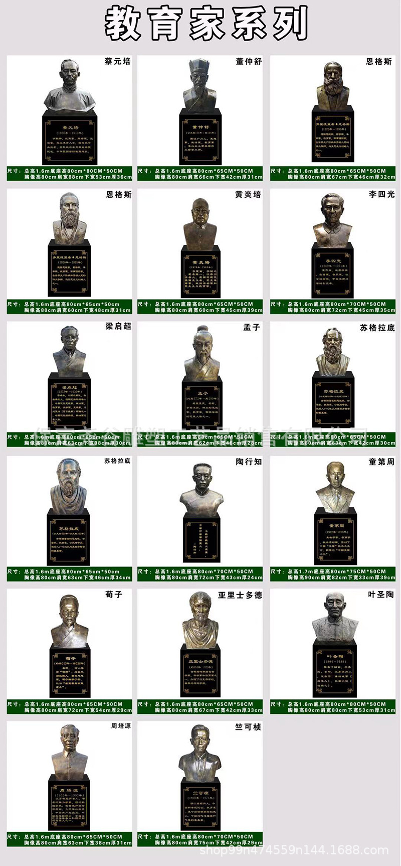 순수한 구리 고대 인물 조각 주조 구리 공원 캠퍼스 유명인 위대한 남자 흉상 장식 FRP 모방 구리 초상화스토어 가기