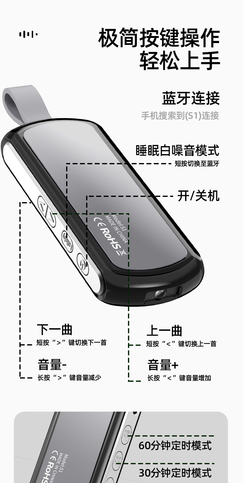 便携式睡眠音响能辅助舒解心理压力,播放大自然轻音乐帮助尽快入眠,让脑袋不乱想,心情放松达到自然入睡