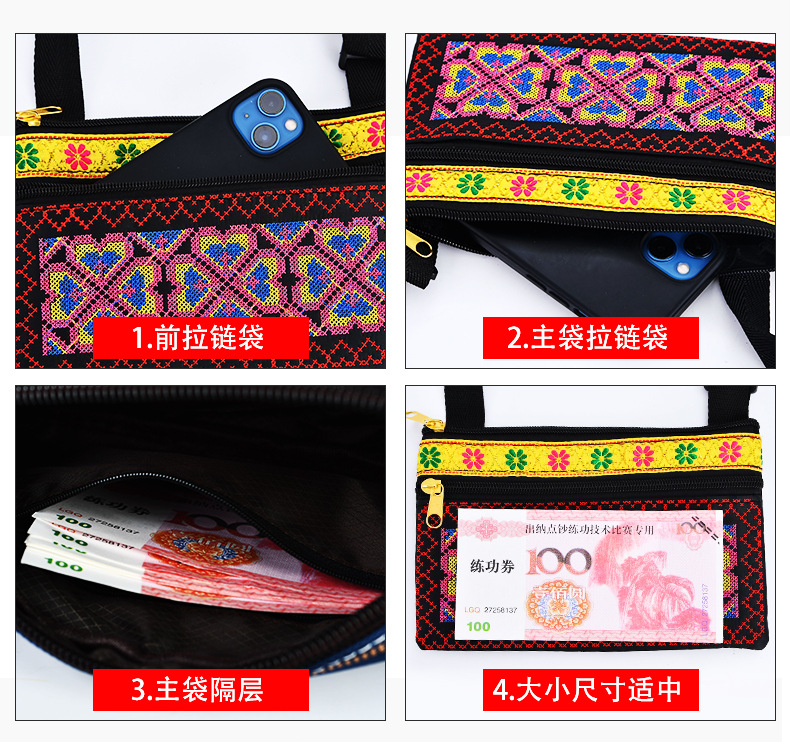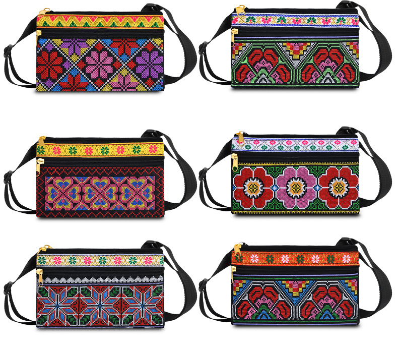 여성용 여행 자수 크로스 바디 플라워 백 에스닉 스타일 윈난 Xishuangbanna 달리 아트 내셔널 스타일 자수 숄더 백