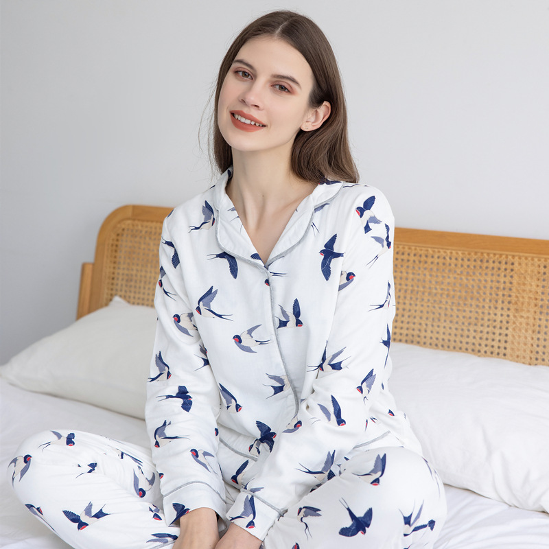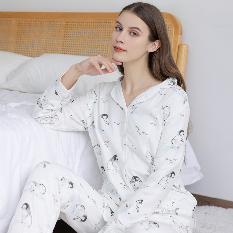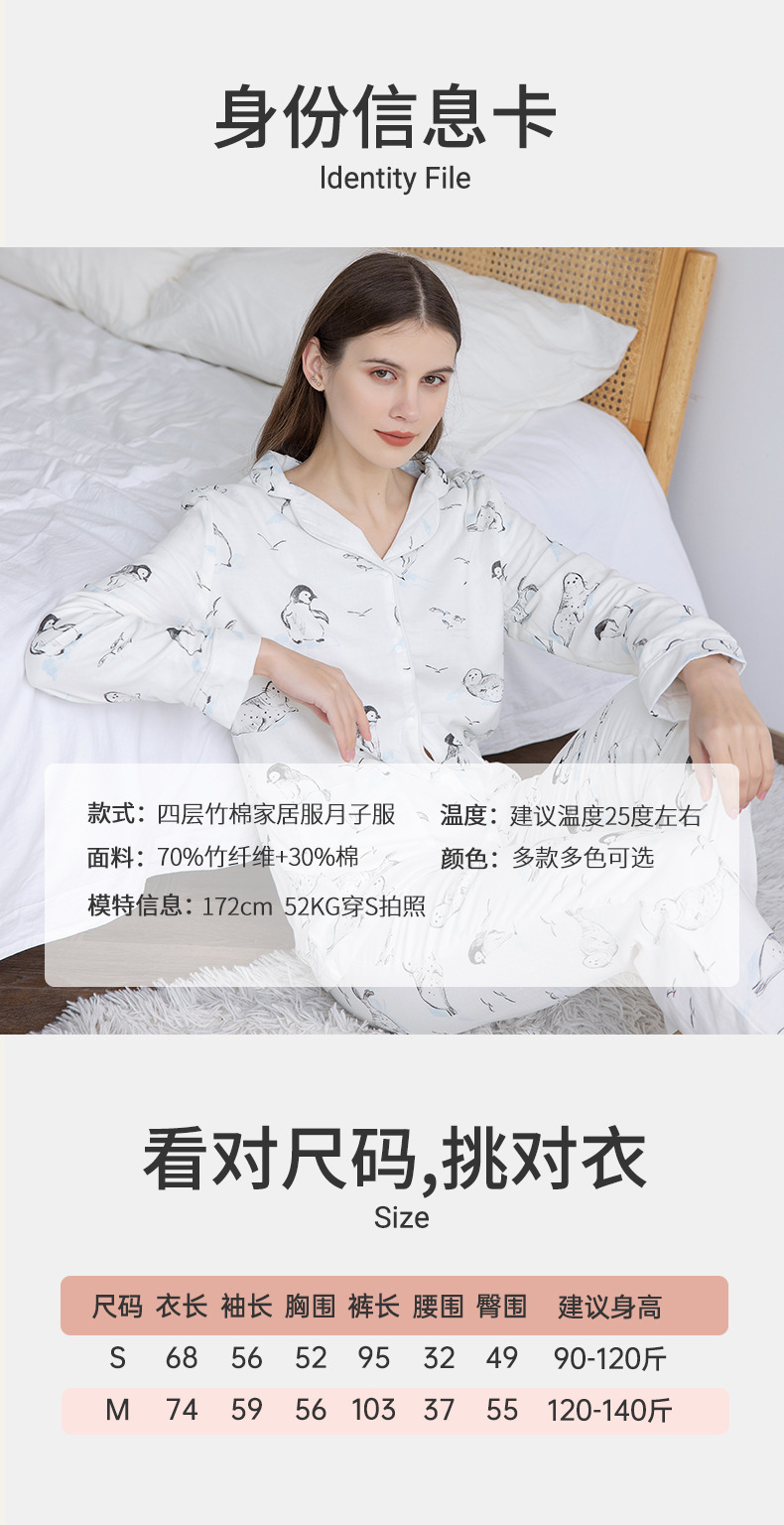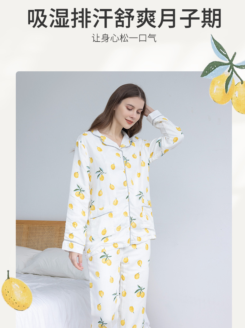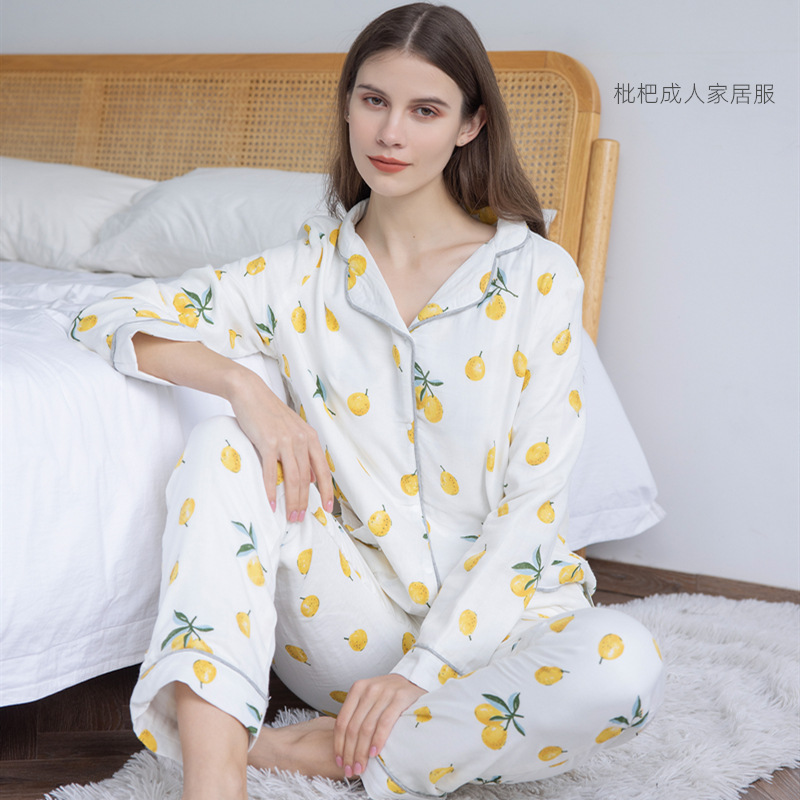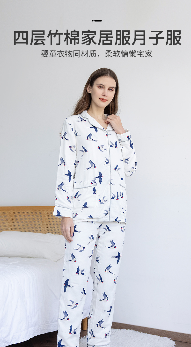 성인용 홈웨어 세트, 대나무 면 거즈 소재, 봄 여름 신상품, 긴팔 긴바지, 산후복, 잠옷, 외출복으로도 착용 가능