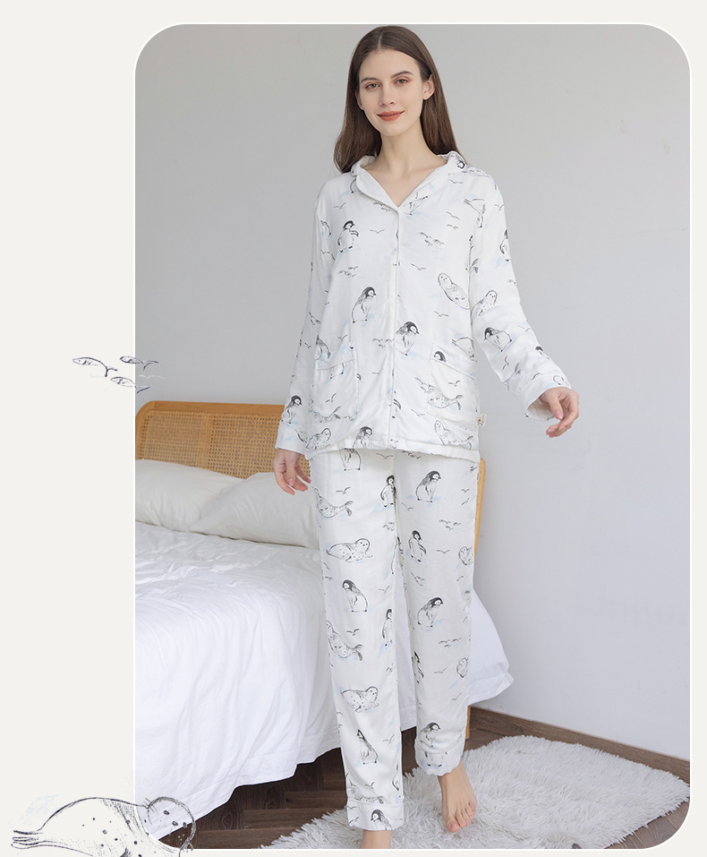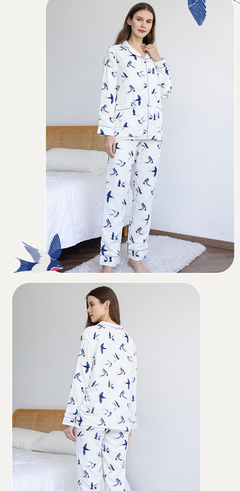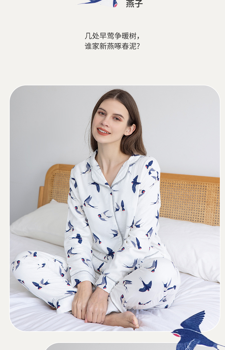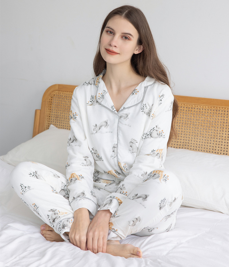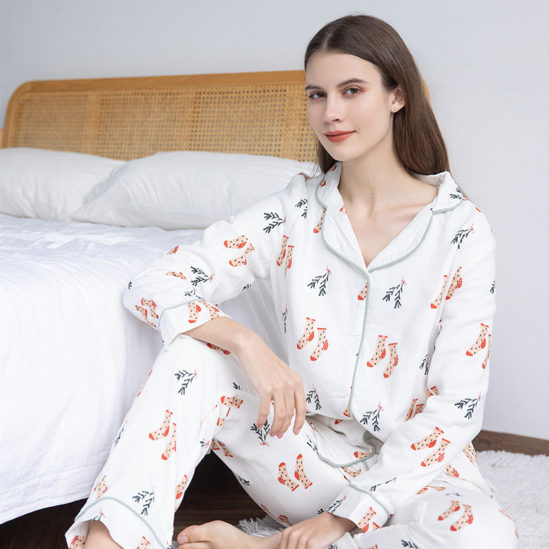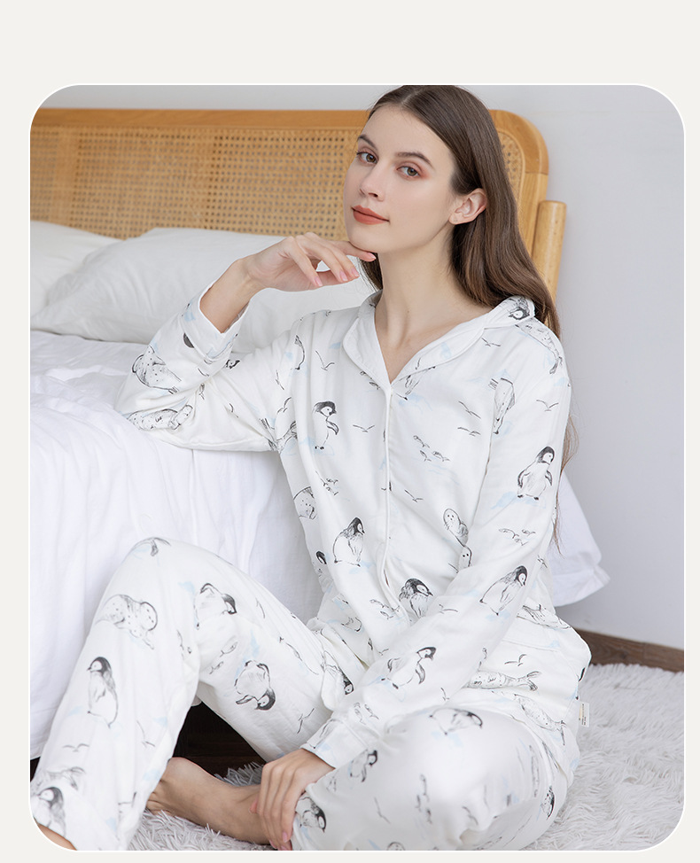 성인용 홈웨어 세트, 대나무 면 거즈 소재, 봄 여름 신상품, 긴팔 긴바지, 산후복, 잠옷, 외출복으로도 착용 가능