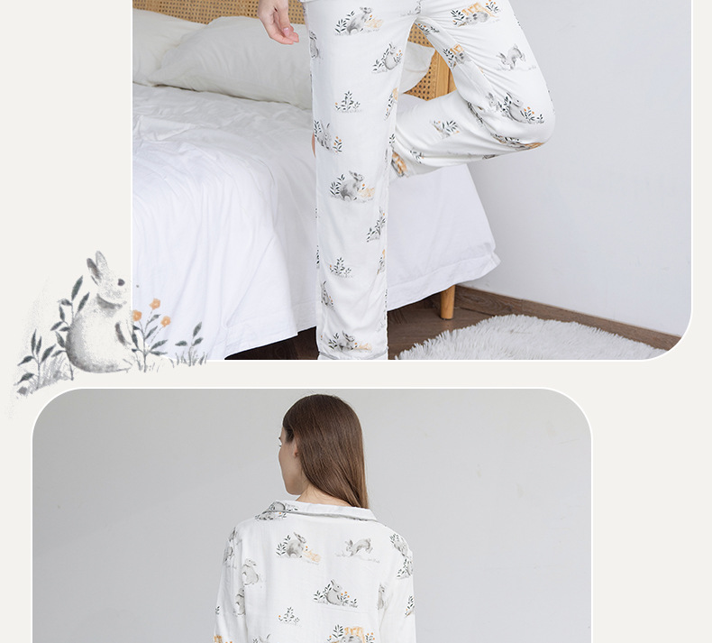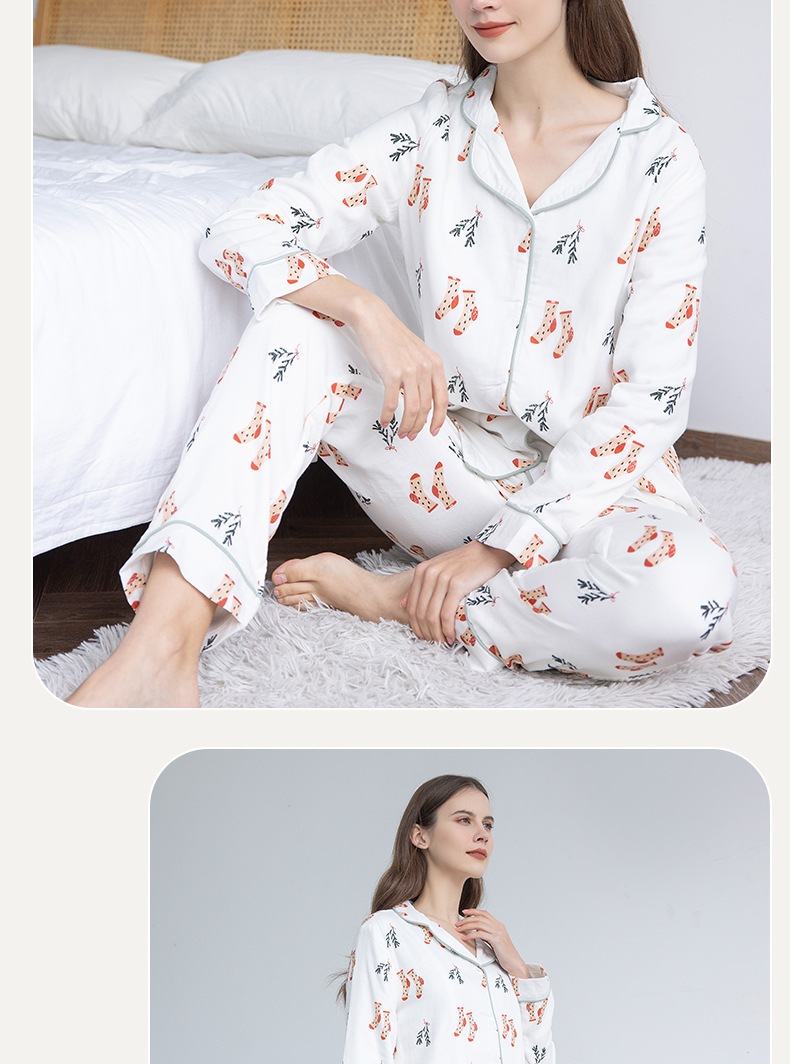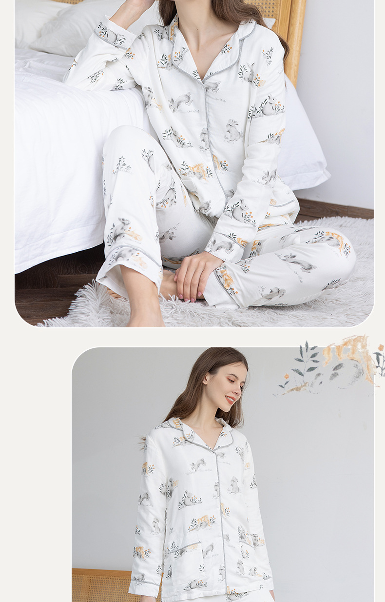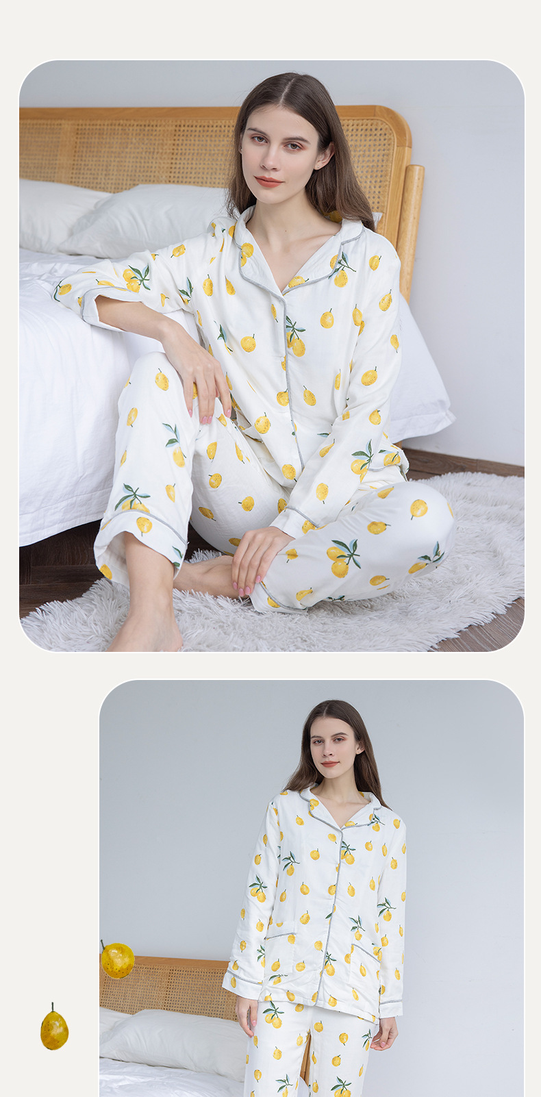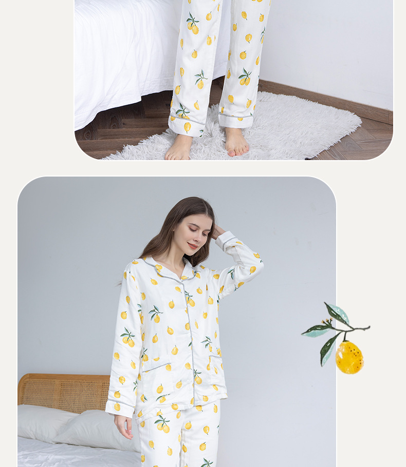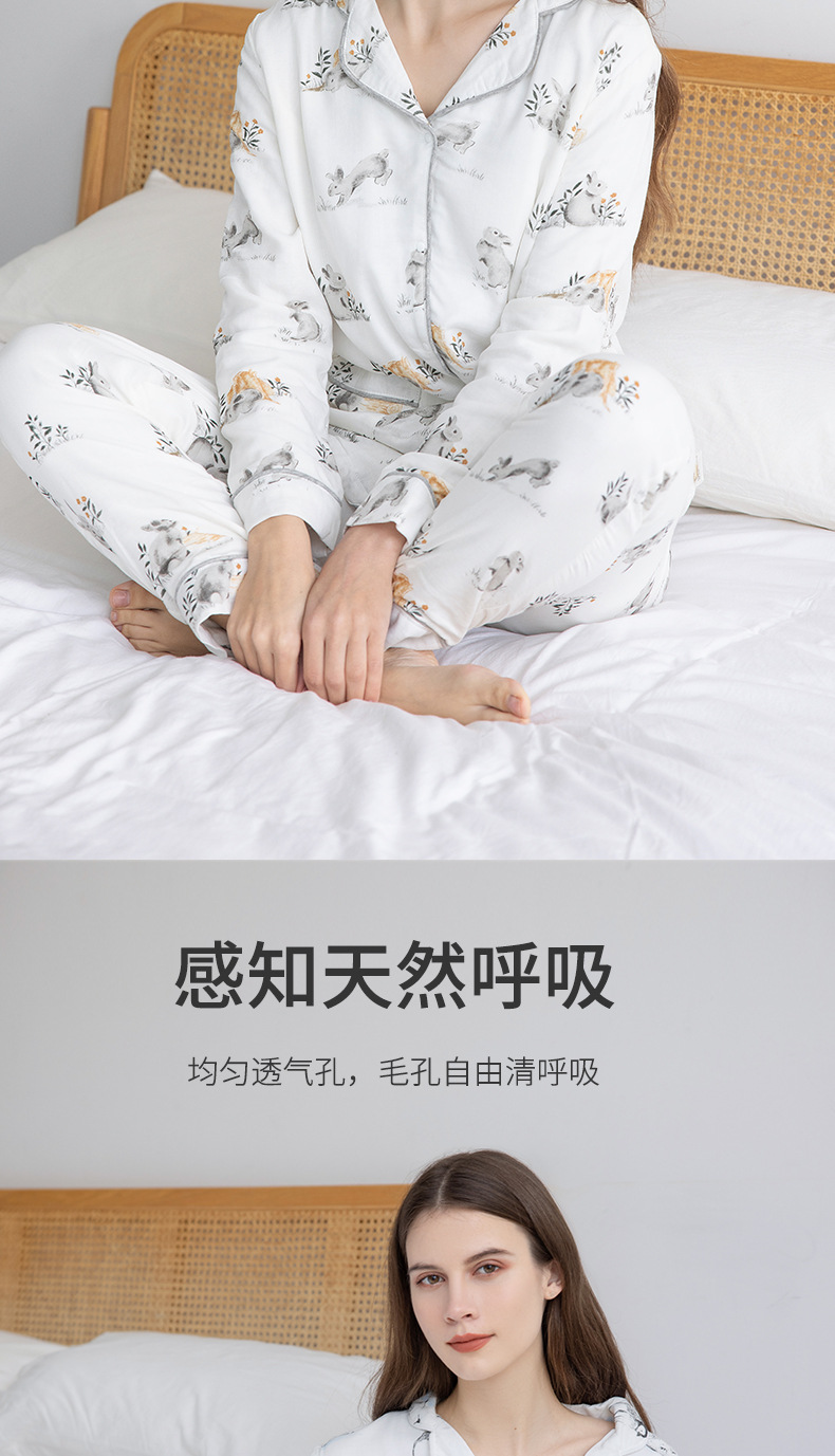 성인용 홈웨어 세트, 대나무 면 거즈 소재, 봄 여름 신상품, 긴팔 긴바지, 산후복, 잠옷, 외출복으로도 착용 가능스토어 가기