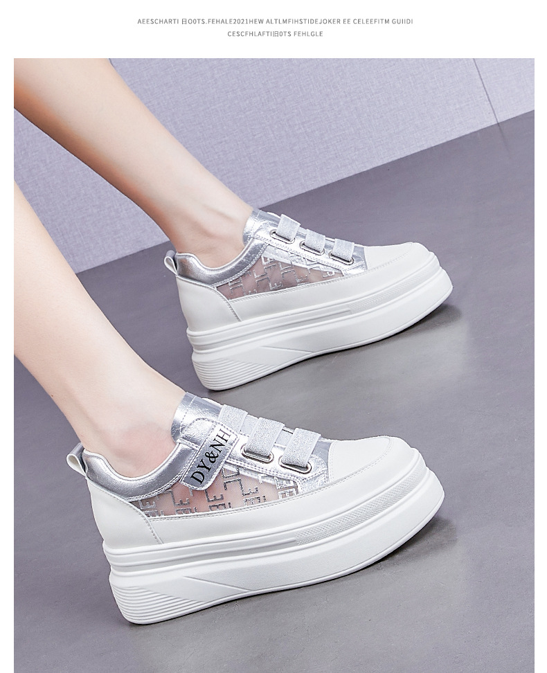 여성용 흰색 운동화, 여름 신상품, 통기성 메쉬 슈즈, 벨크로 가죽, 다용도 스포츠 캐주얼 플랫폼 슈즈, 편안함스토어 가기