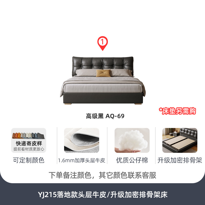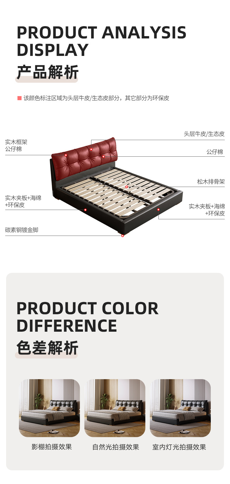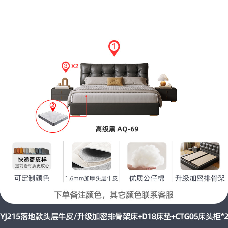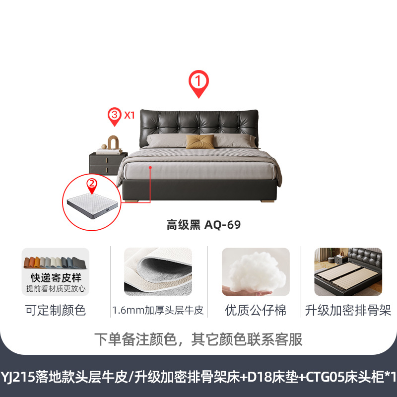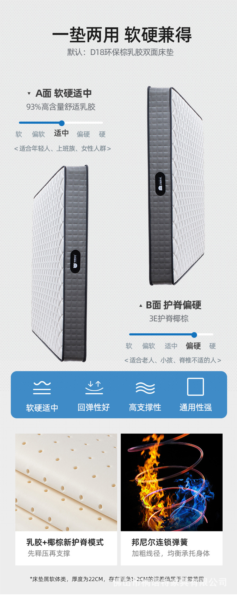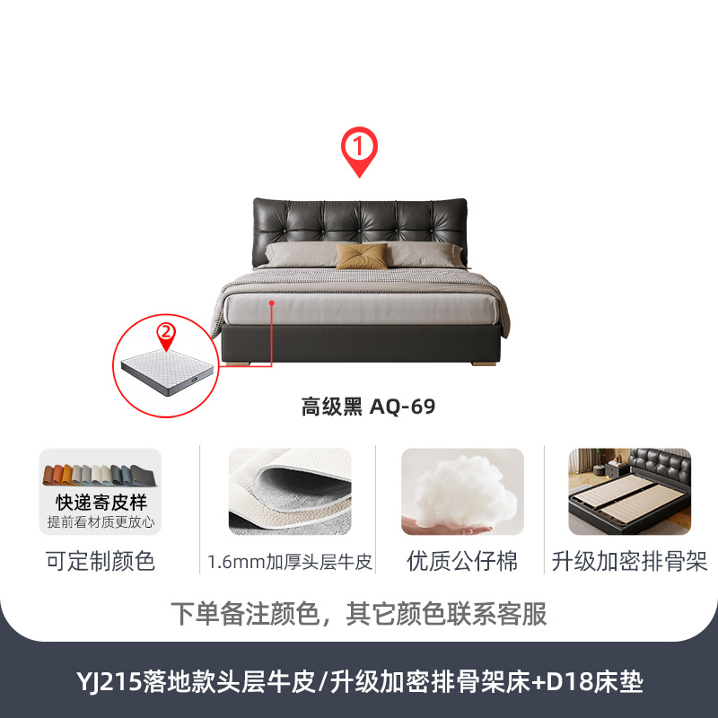 • 1 층 소가죽 침대 + D18 양면 매트리스/암호화 된 행 골격
