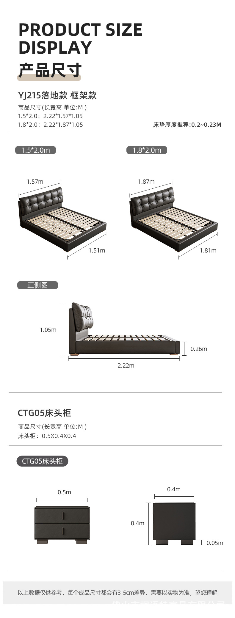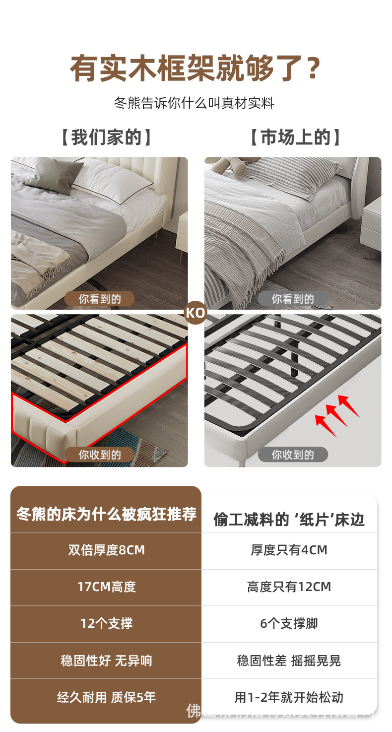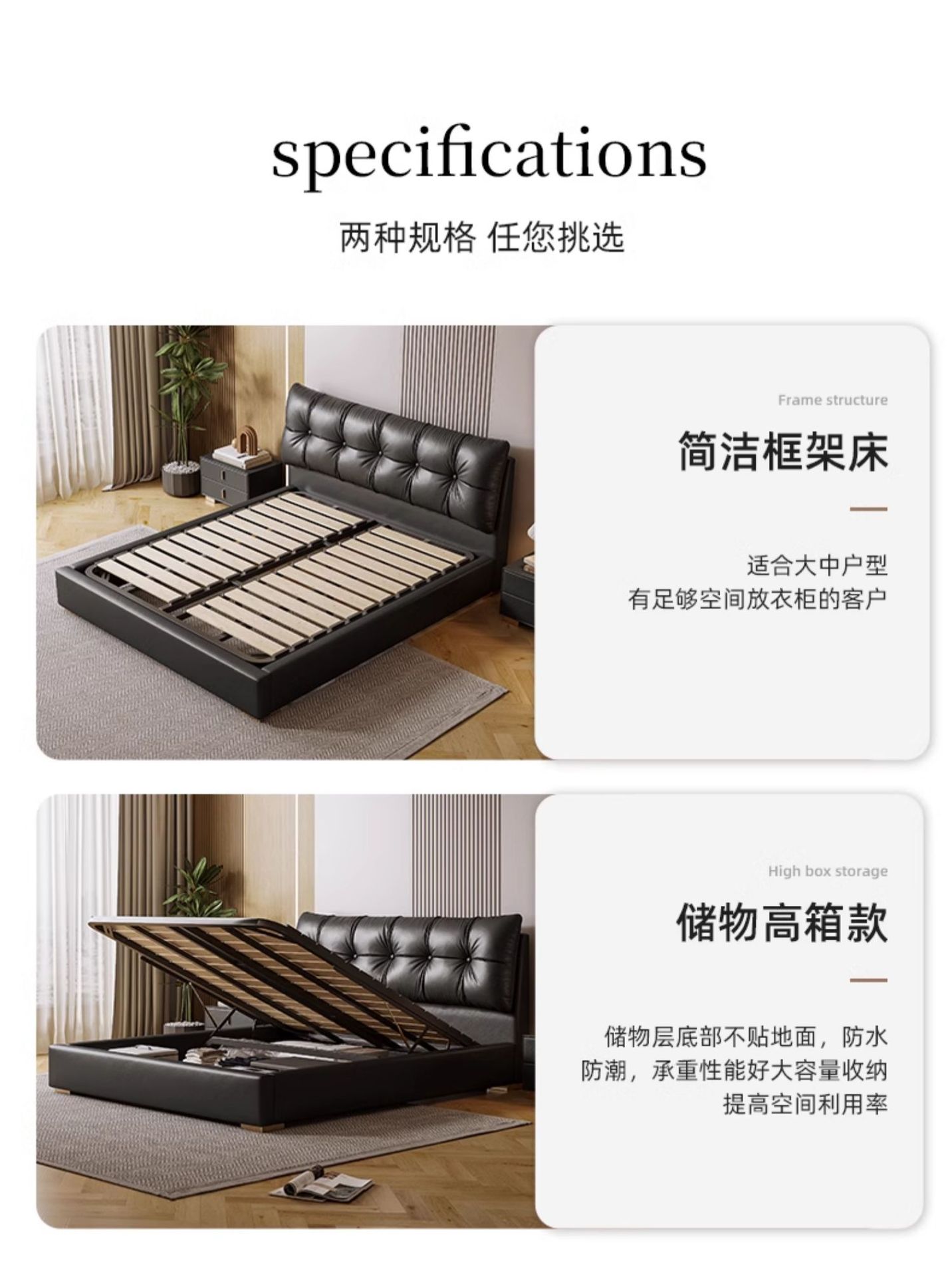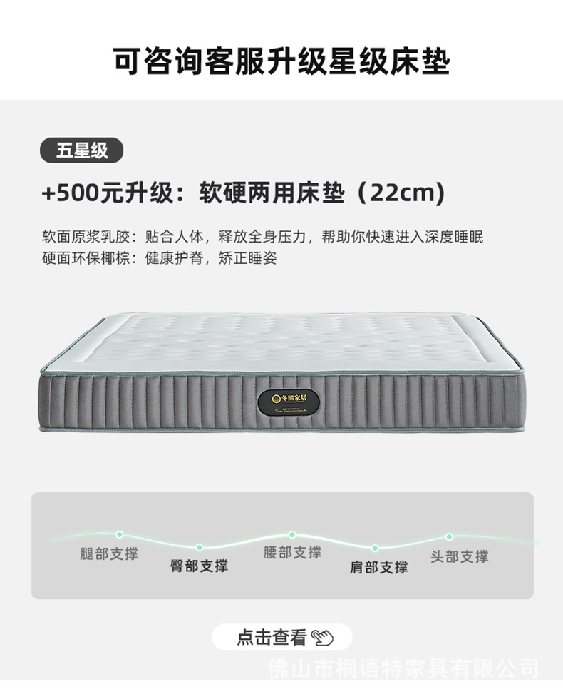 • 1 층 소가죽 침대 + D18 양면 매트리스/암호화 된 행 골격