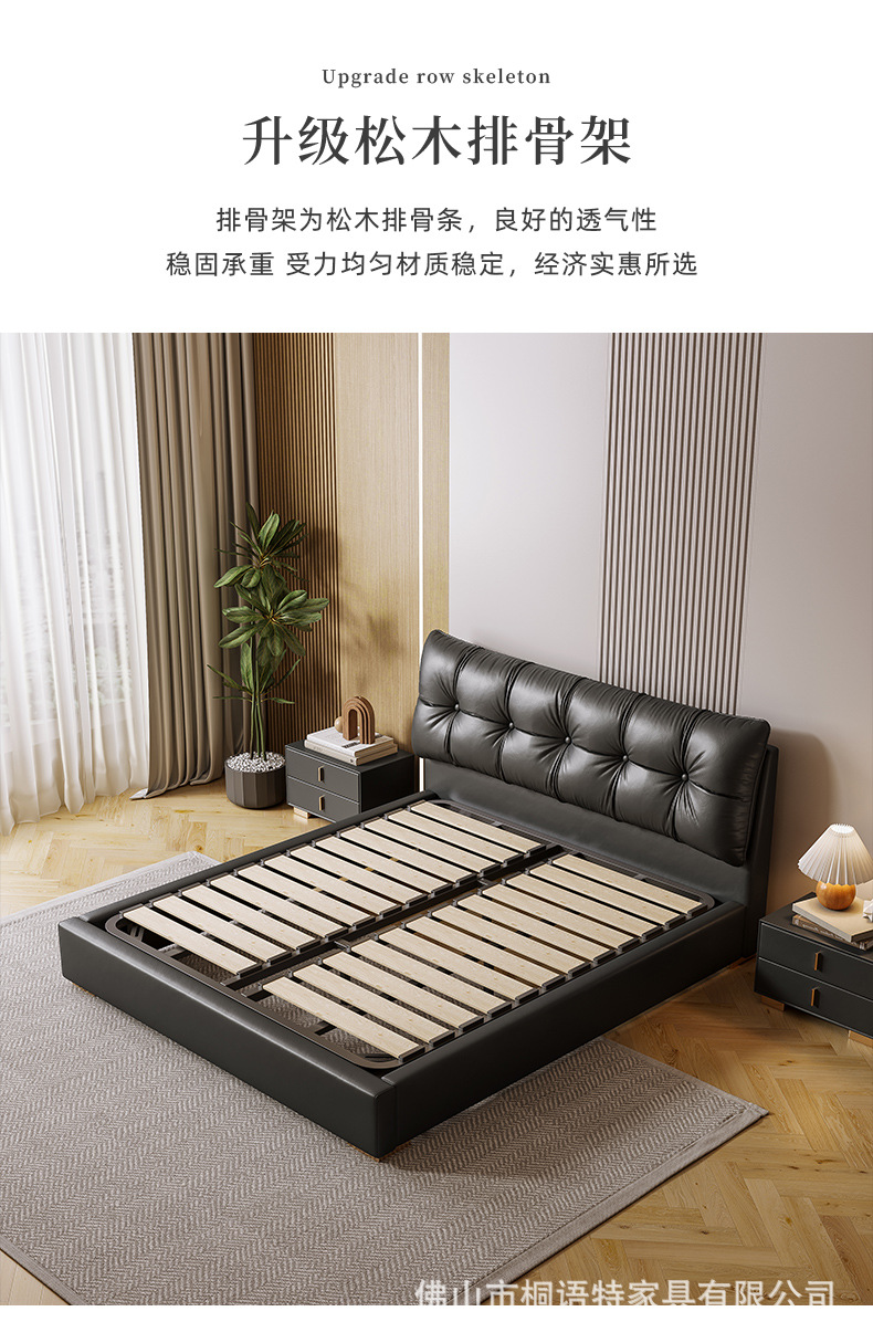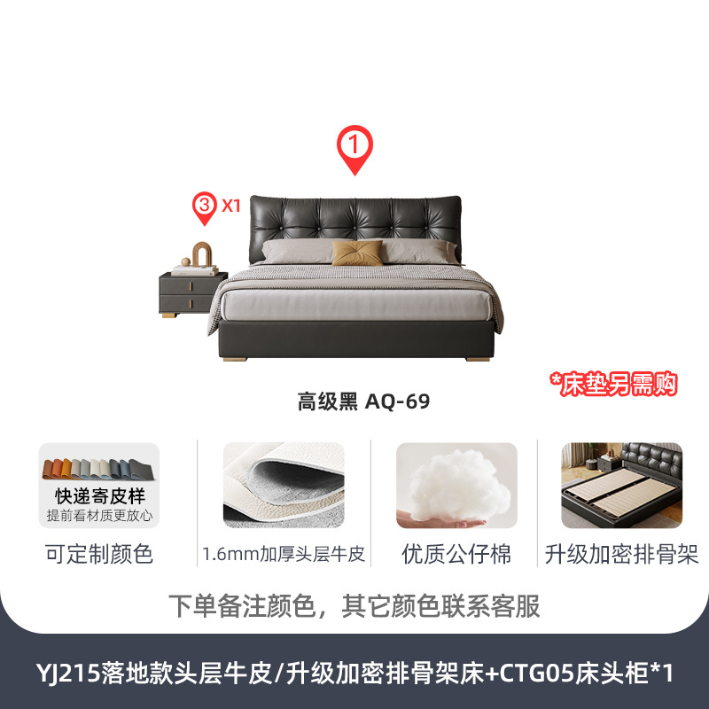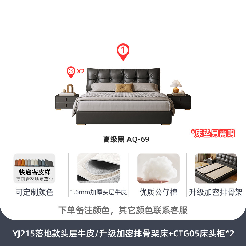 • 최상층 소가죽 침대 + 침대 옆 탁자 * 2/암호화 된 행 골격