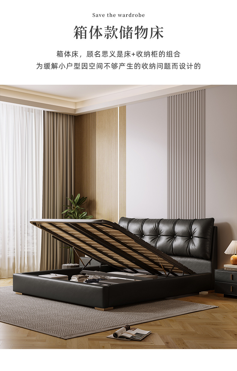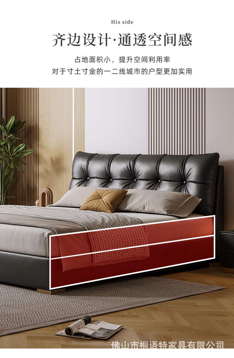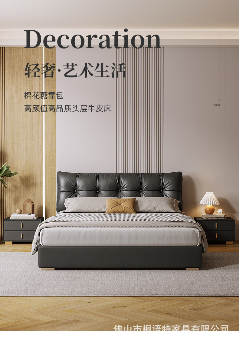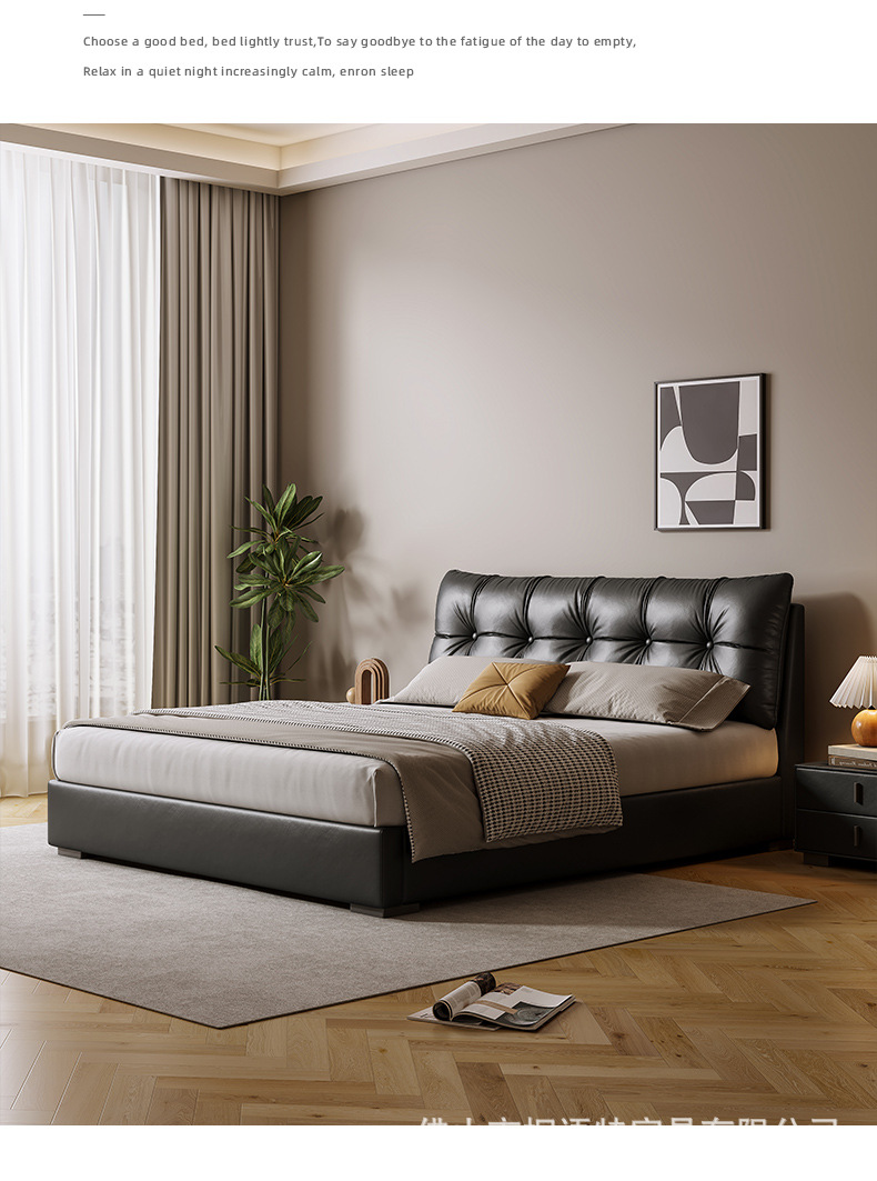 이탈리아 스타일 미니멀리스트 현대 바닥 침대 조명 럭셔리 가죽 더블 마스터 침실 1.8 m 다운 블랙 소프트 백 보관 침대스토어 가기