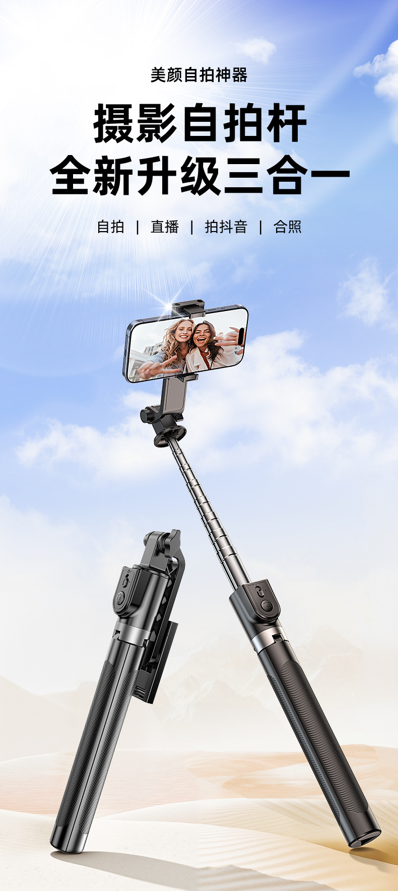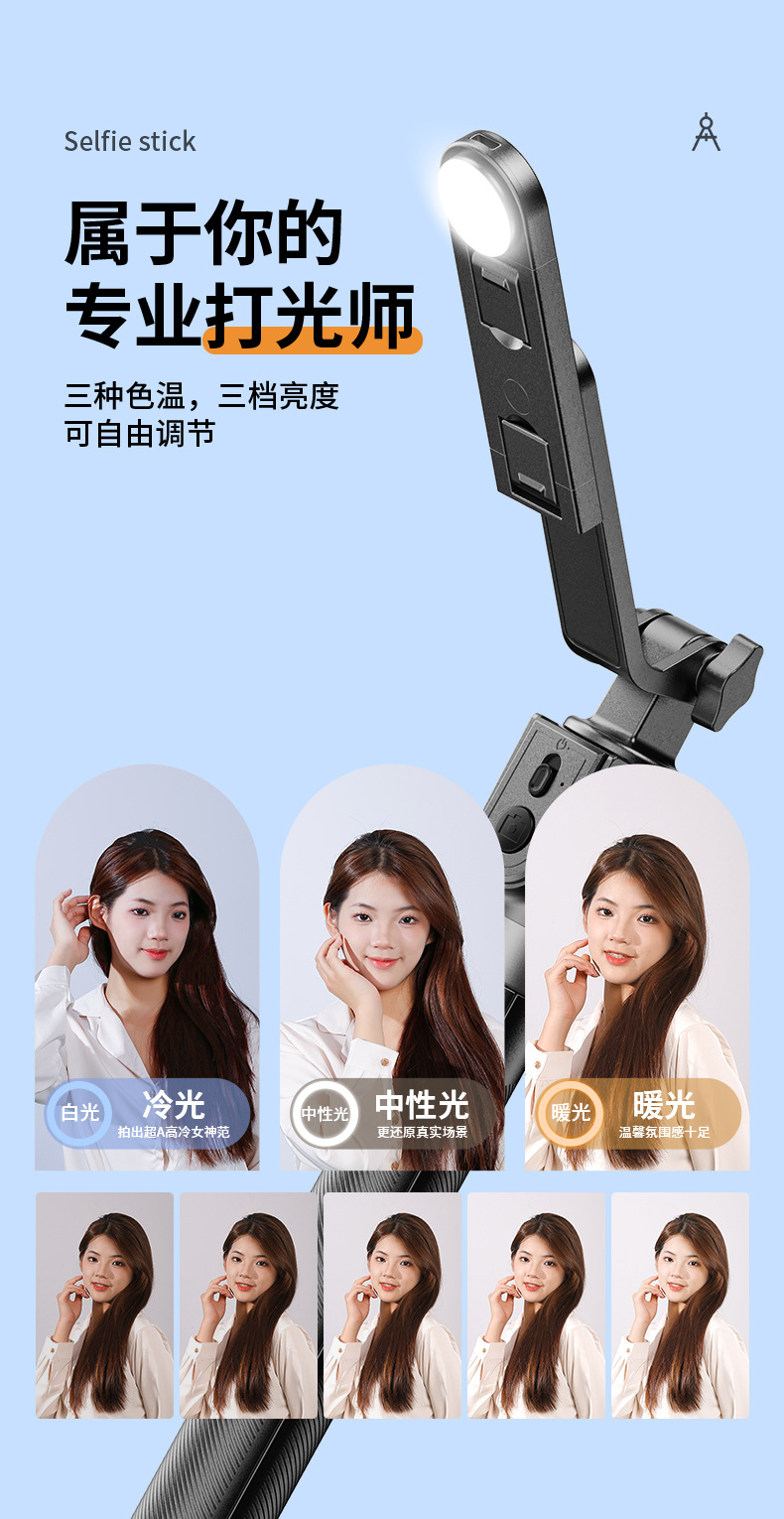 Douyin 셀카 스틱 필 라이트 휴대 전화 블루투스 텔레스코픽 올인원 삼각대 확장 휴대용 라이브 방송 브래킷 도매