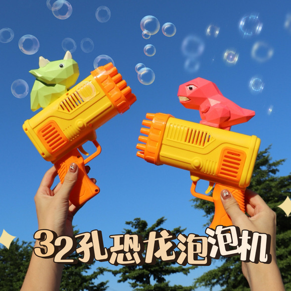 32孔3D恐龙火箭炮泡泡机霸王龙三角龙电动手持火箭筒加特林泡泡枪