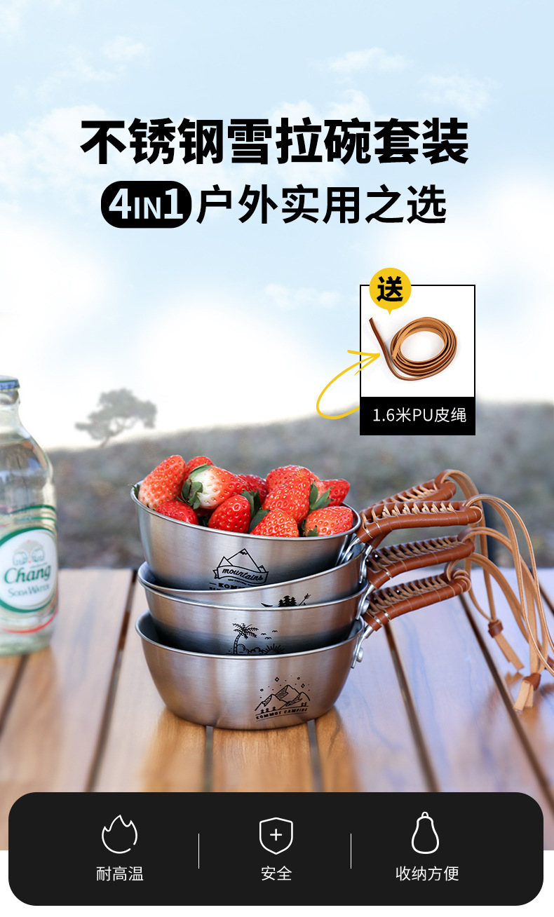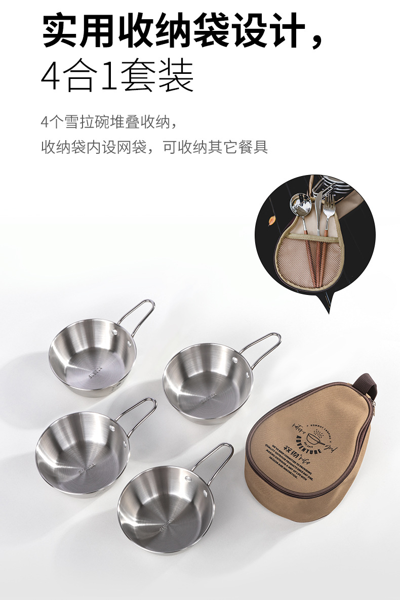 KOMMOT Mu Che 야외 캠핑 식기 휴대용 스테인레스 스틸 그릇 세트 화상 방지 눈 그릇 피크닉 바베큐 조리기구스토어 가기