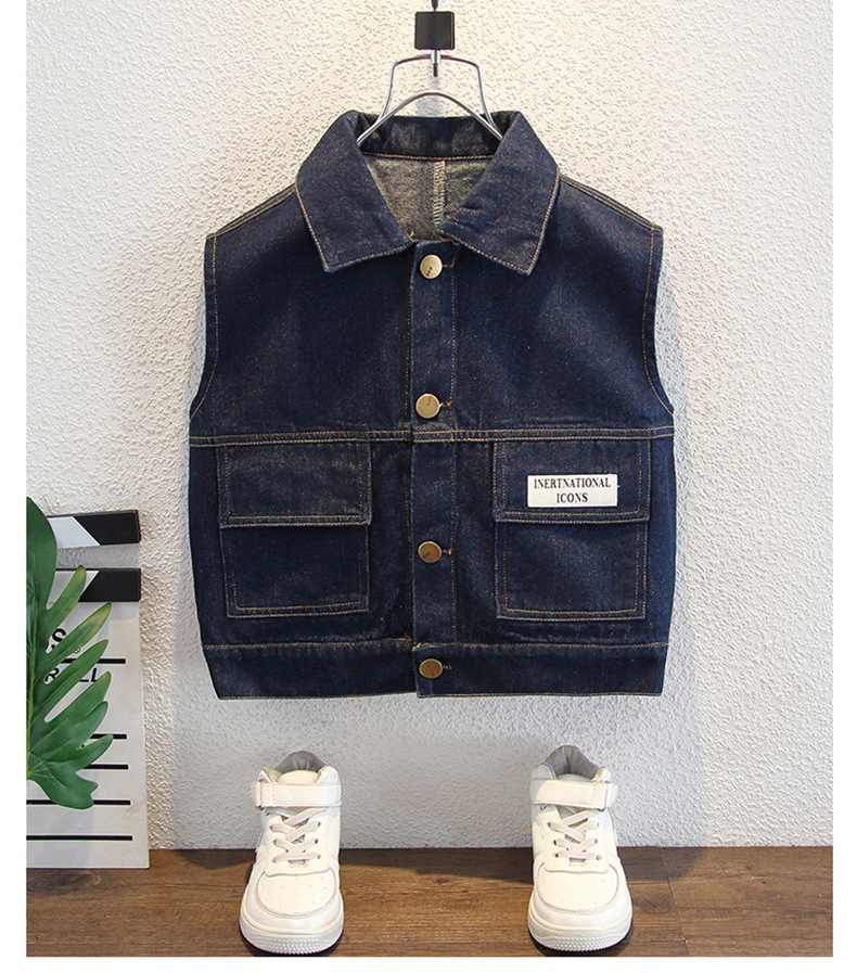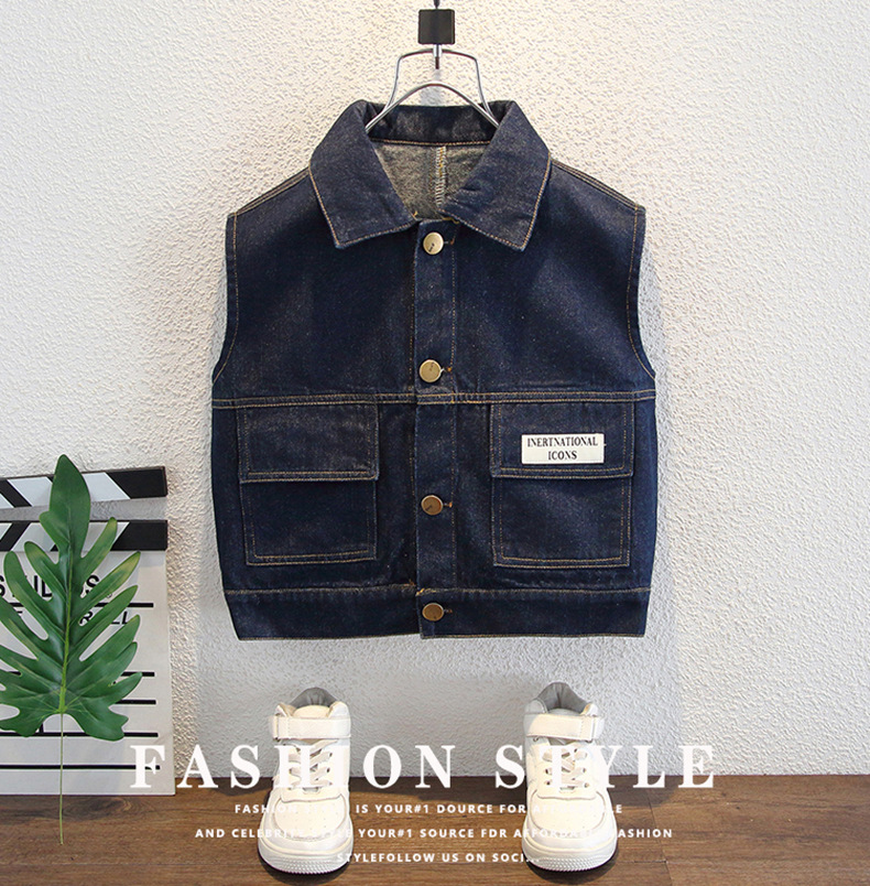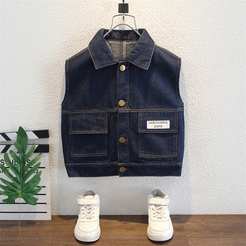 소년 데님 조끼 봄, 가을 2025 새로운 어린이 봄, 가을 겉옷 봄 조끼 스트리트 자켓 탑스토어 가기
