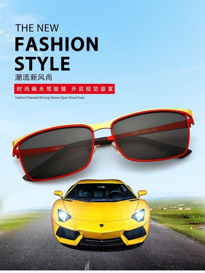 국경을 넘는 새로운 남성 패션 편광 선글라스 세련된 사각형 프레임 선글라스 두꺼비 거울 운전 7358 안경스토어 가기
