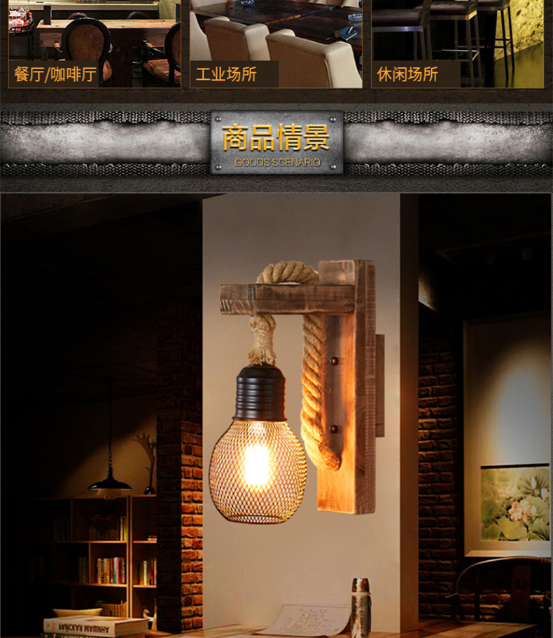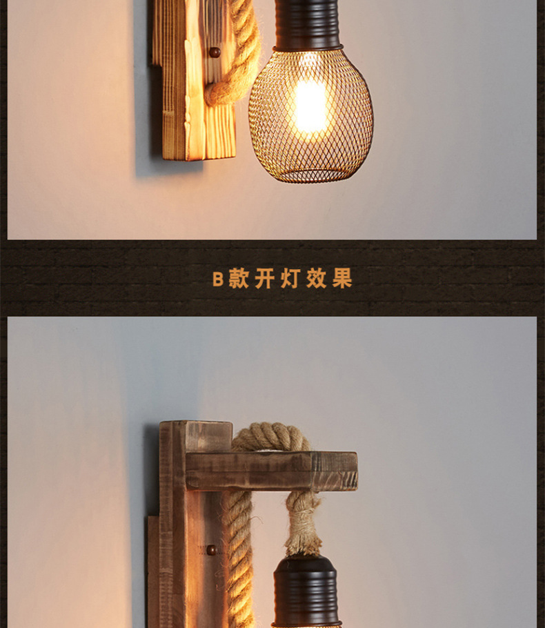 미국 국가 창조적 인 단단한 나무 머리 향수 복고풍 벽 램프 거실 싱글 헤드 단단한 나무 레스토랑 바 산업 바람 벽 램프스토어 가기