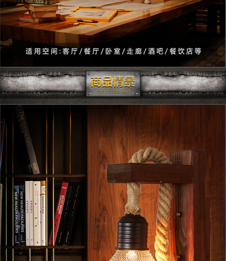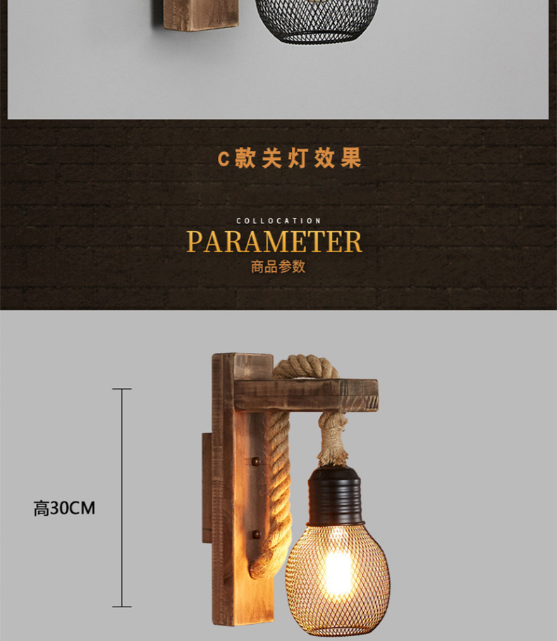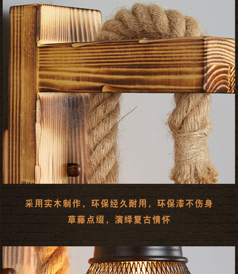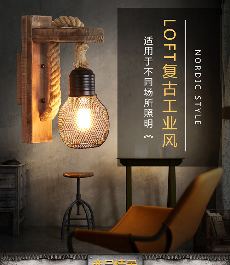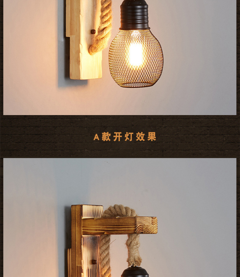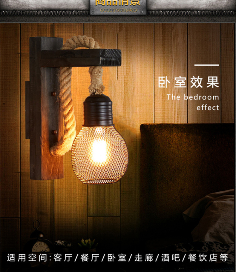 미국 국가 창조적 인 단단한 나무 머리 향수 복고풍 벽 램프 거실 싱글 헤드 단단한 나무 레스토랑 바 산업 바람 벽 램프