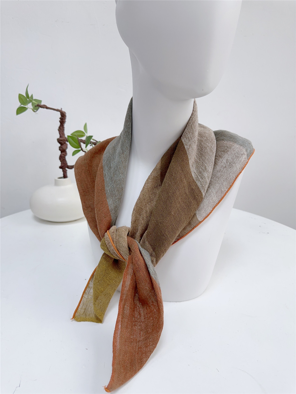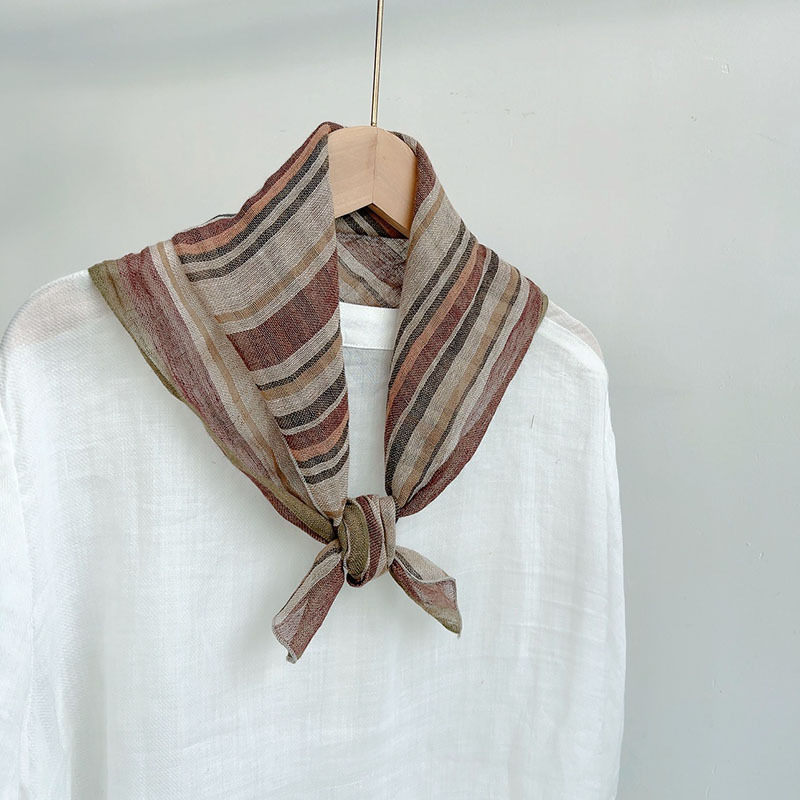 • 면과 린넨 브라운 스트라이프 스퀘어 스카프 67*60cm