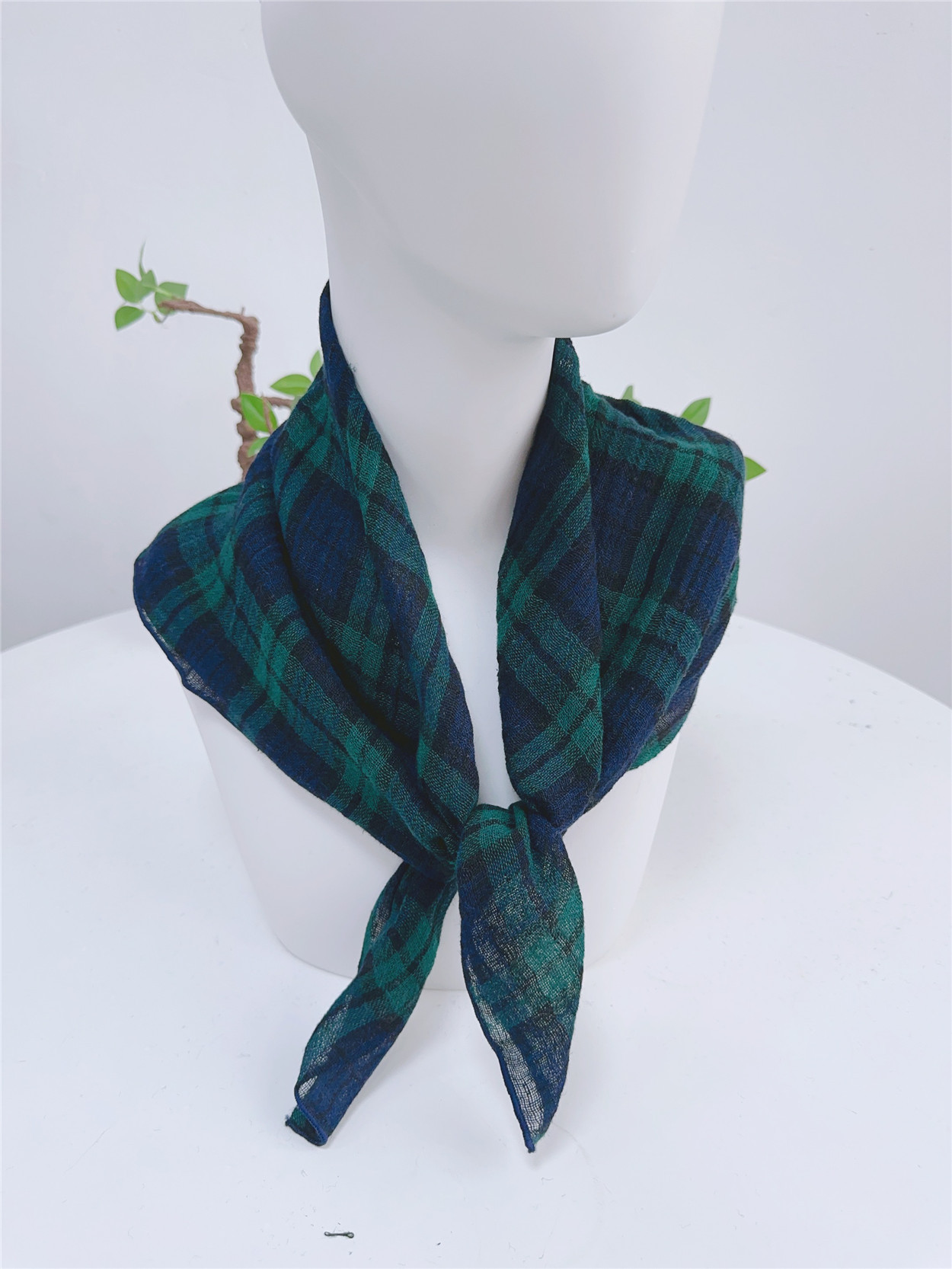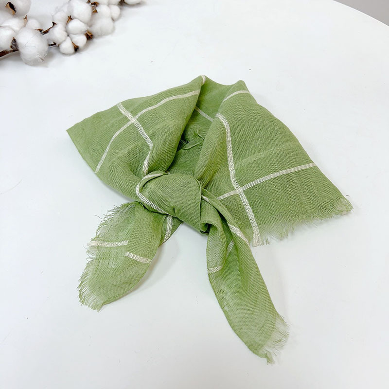 • 면 및 린넨 녹색 대형 격자 무늬 광장 65*67cm