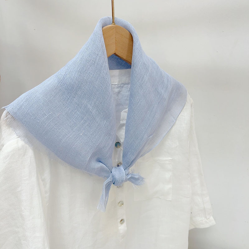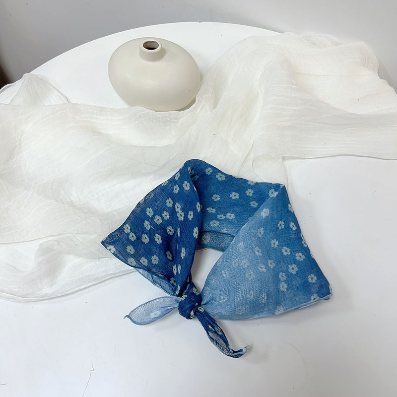 봄과 여름 빈티지 모조 블루 염료 그라디언트 인쇄 리넨 스퀘어 스카프 예술적 모든 매치 여성 여름 목 보호 작은 실크 스카프 신제품스토어 가기