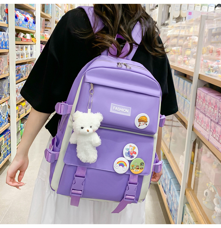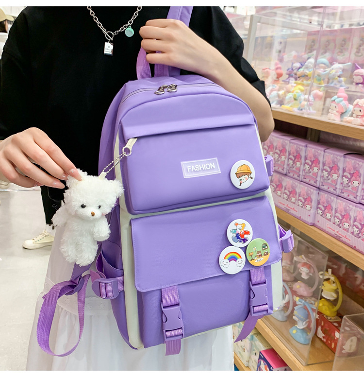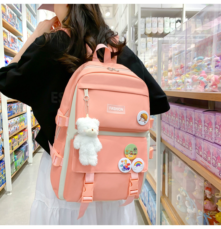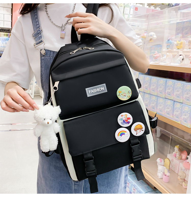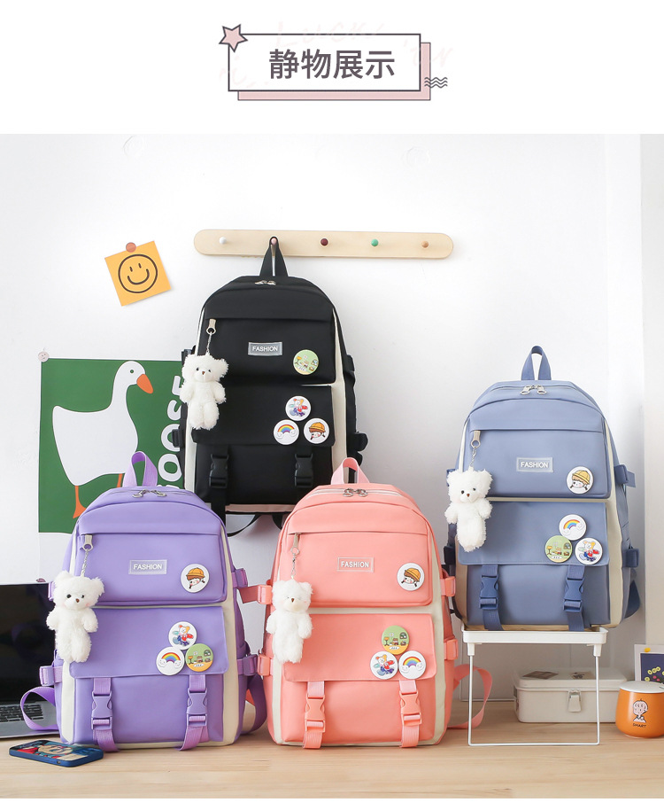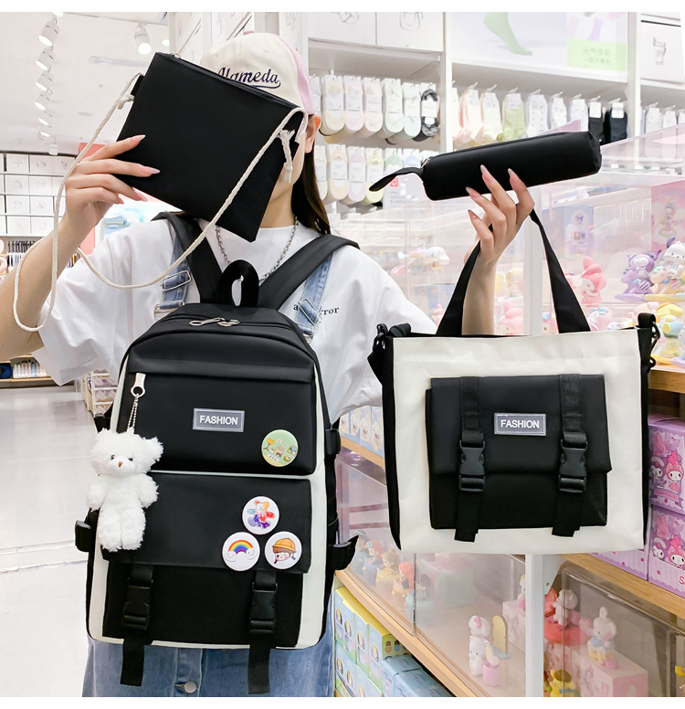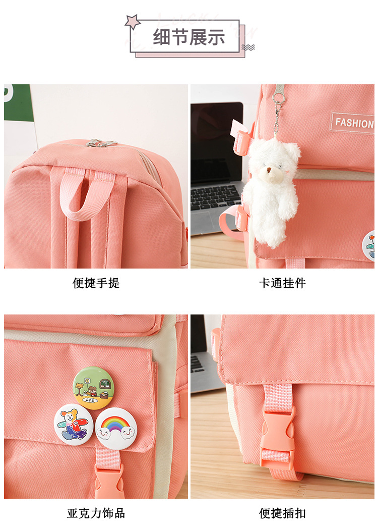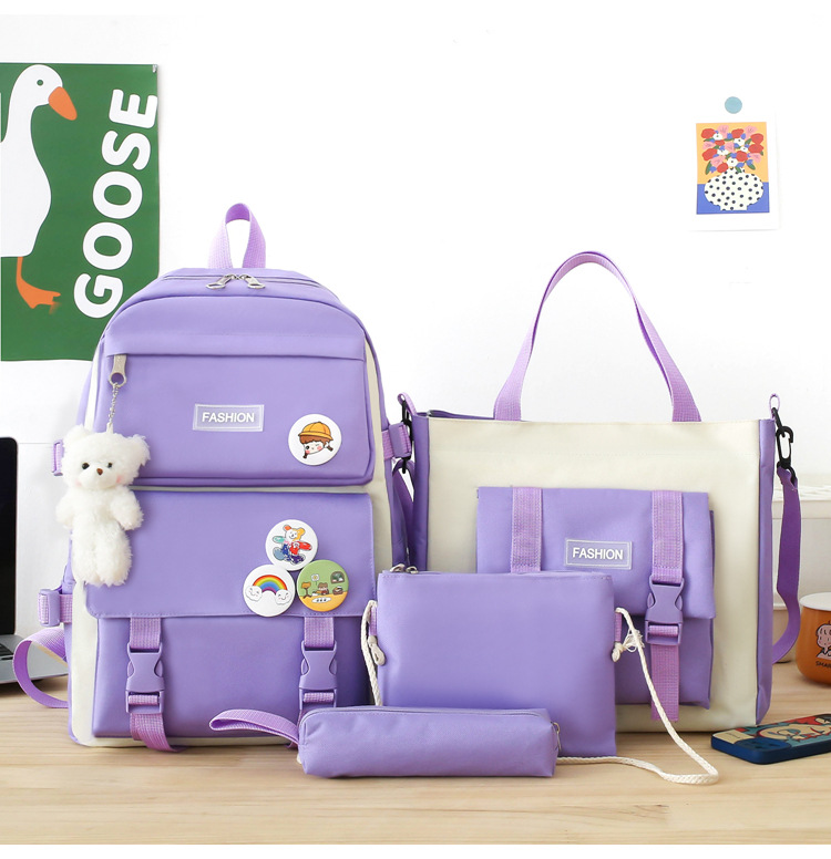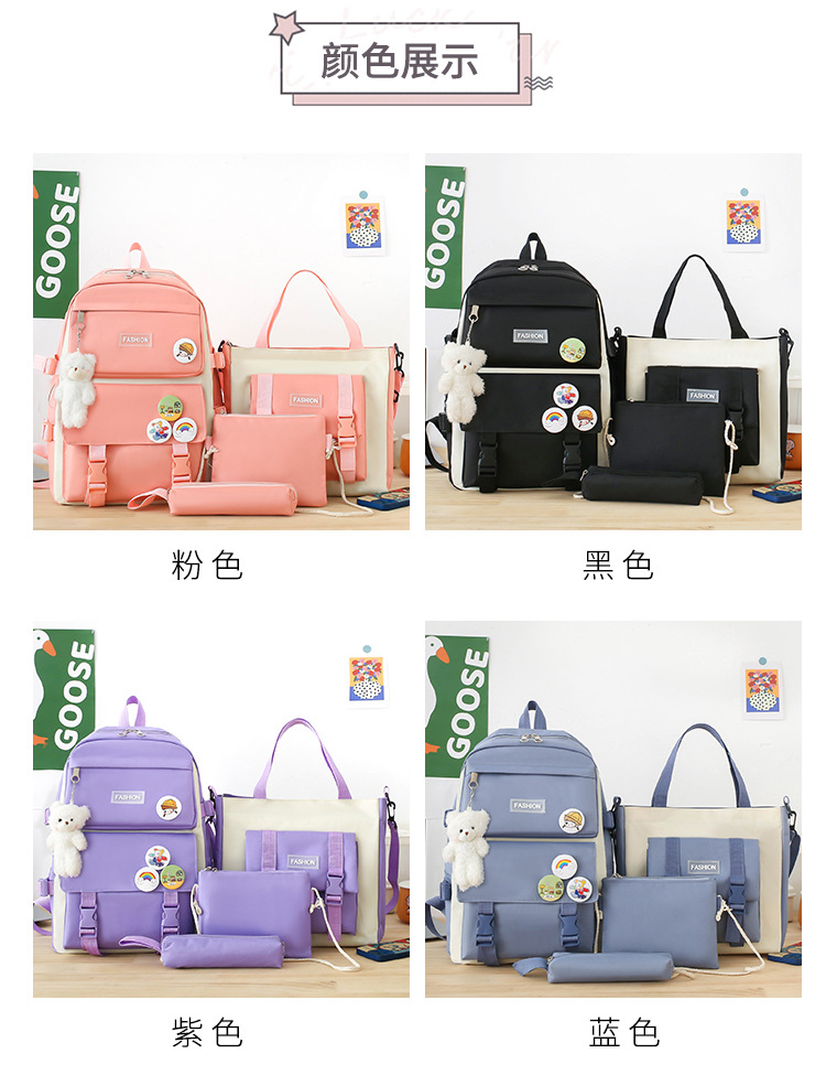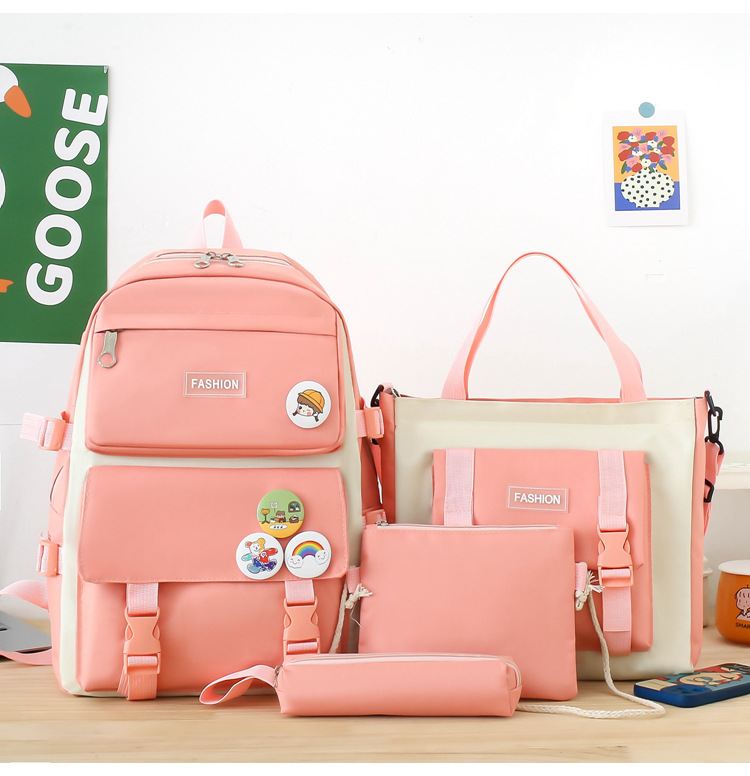 초등학생용 4 피스 책가방 중학생용 3 ~ 6 학년 여성용 경량 상쾌한 배낭 대용량 배낭