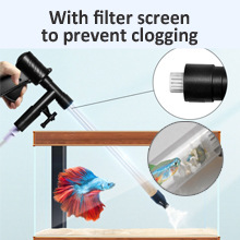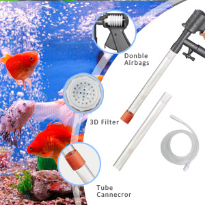 升级功能:独特的轻型手动按压式设计,既方便又美观。 沙漏机配有两个内部加厚安全气囊,可以快速泵水。 过滤篮的水族虹吸管出水管还配有过滤器,不仅避免碎石阻塞和各种污垢,还能保护您可爱的鱼和小砾石免受水箱吸出。