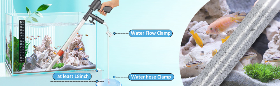 多功能清洁套装:水族馆砂砾吸尘器套装是一款多功能水族馆清洁剂,采用虹吸管设计原理,包括水族箱、水族馆、洗砂、除藻、排泄鱼、水族箱残留杂物、水族馆换水等。 快速换水为鱼提供干净舒适的水族箱生活环境。