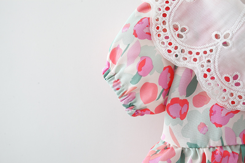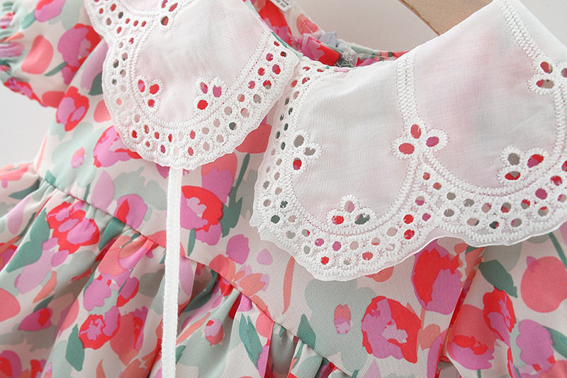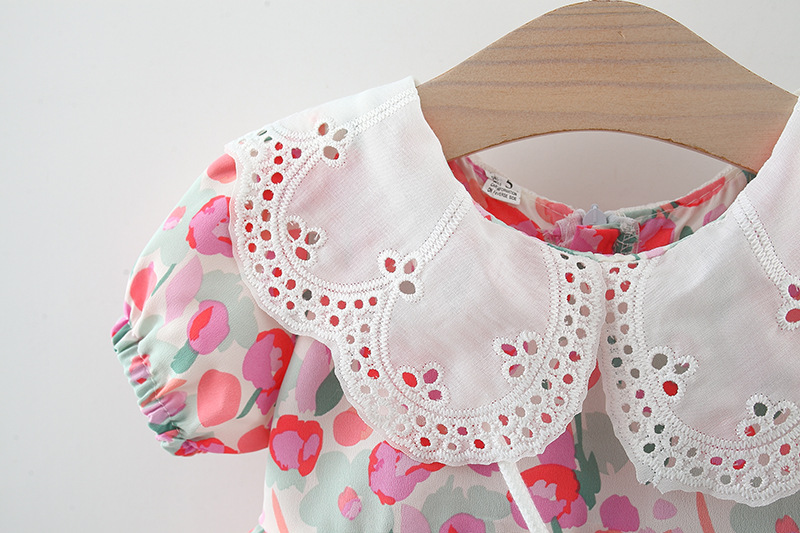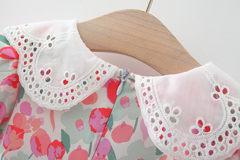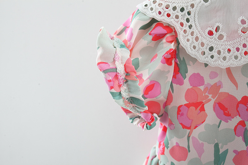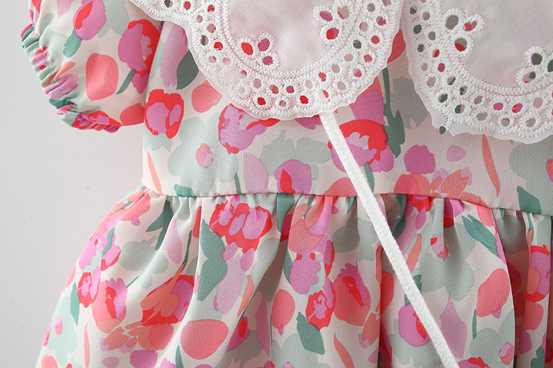 아동복 아기 소녀 한국식 원피스 셔츠 어린 소녀의 여름 쉬폰 스커트 아기의 반팔 인쇄 스커트 4446