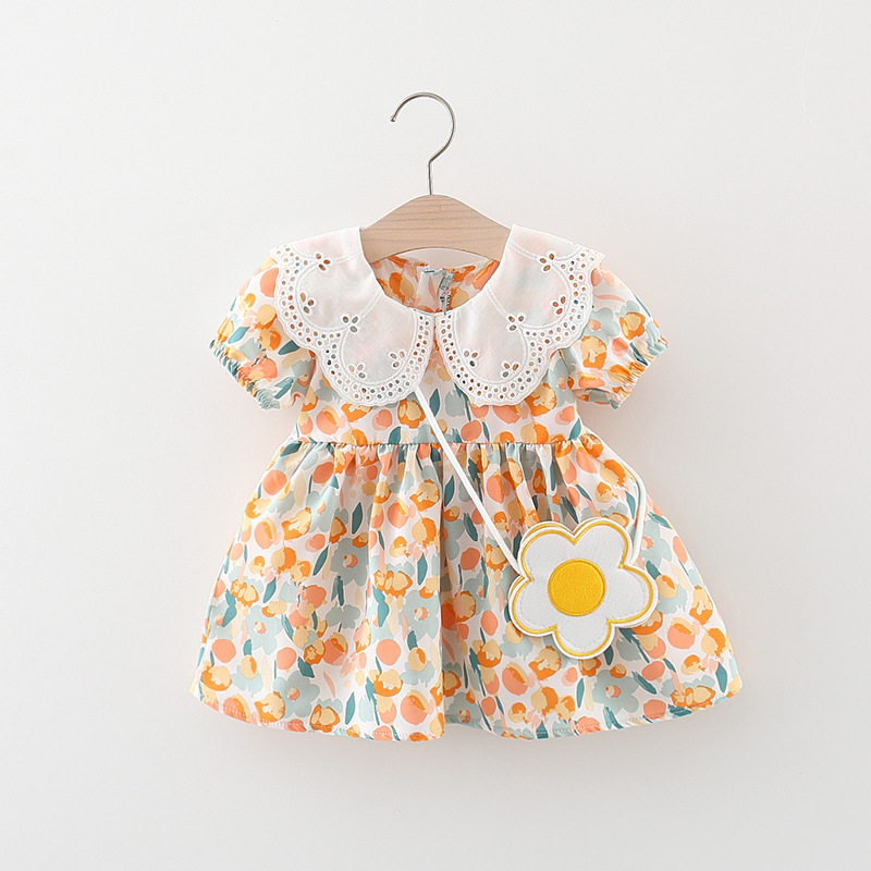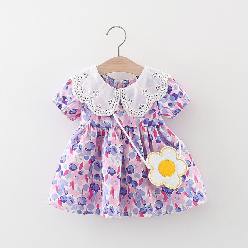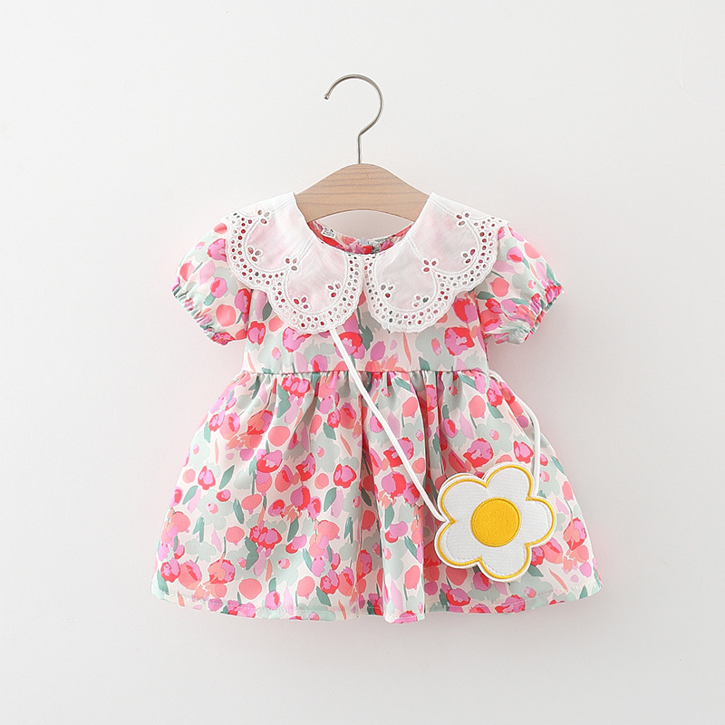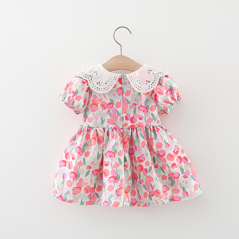아동복 아기 소녀 한국식 원피스 셔츠 어린 소녀의 여름 쉬폰 스커트 아기의 반팔 인쇄 스커트 4446스토어 가기