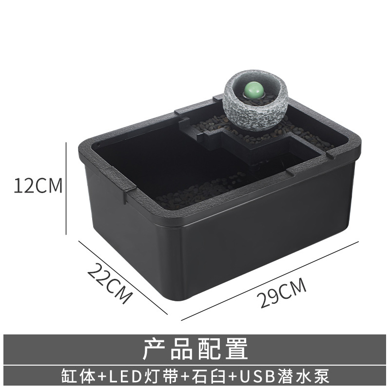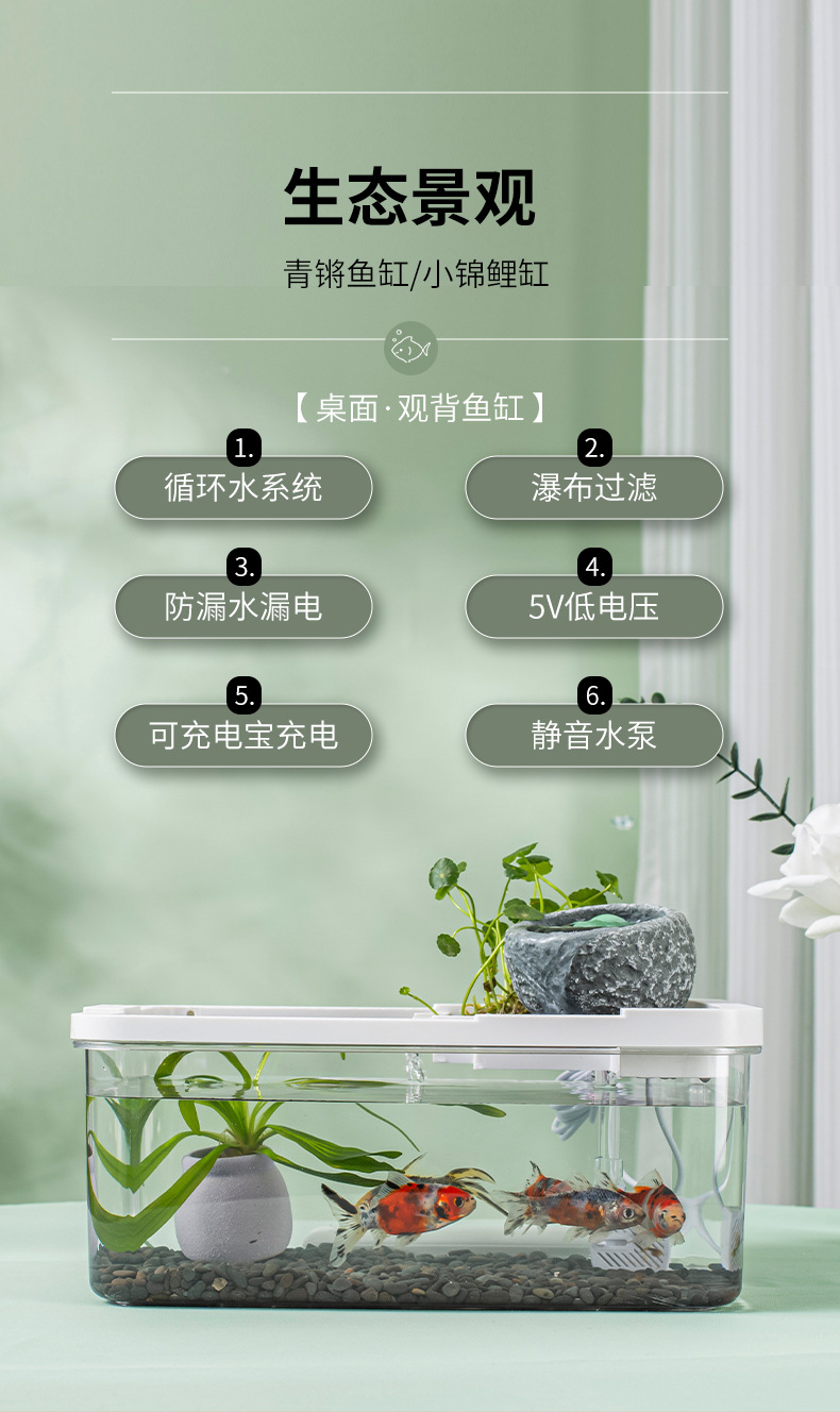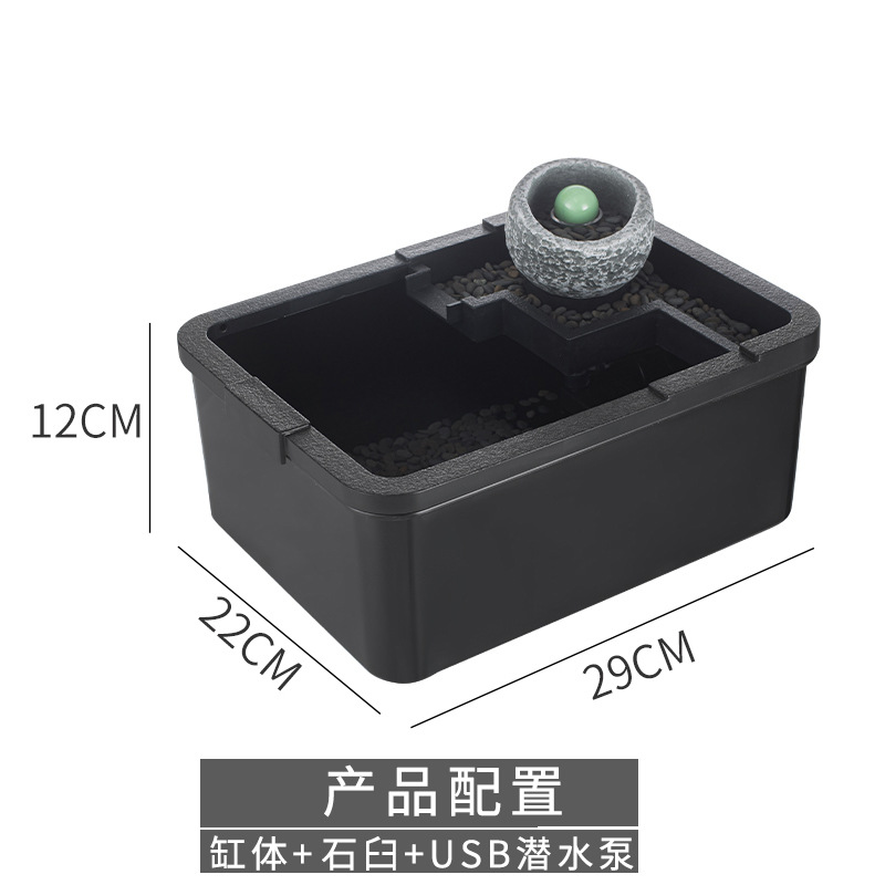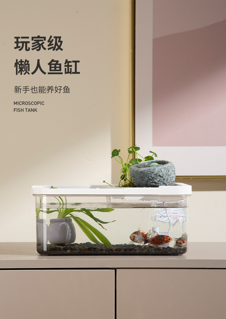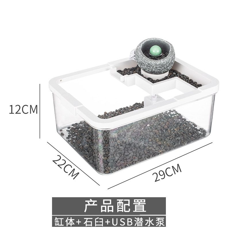 소형 데스크탑 풍경 배경에 있는 메스티스 물고기 수조, 생태학적 여과 장치, 작은 거북이, 금붕어, 흑색 수조, 고대 방식의 물고기 수조스토어 가기