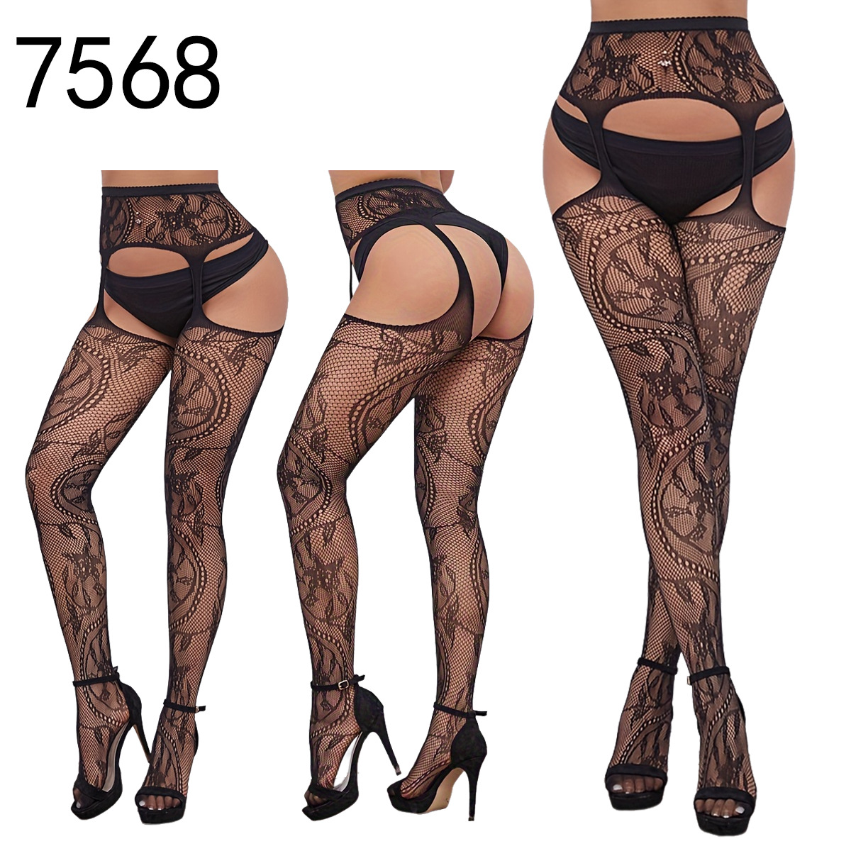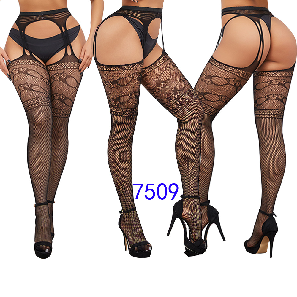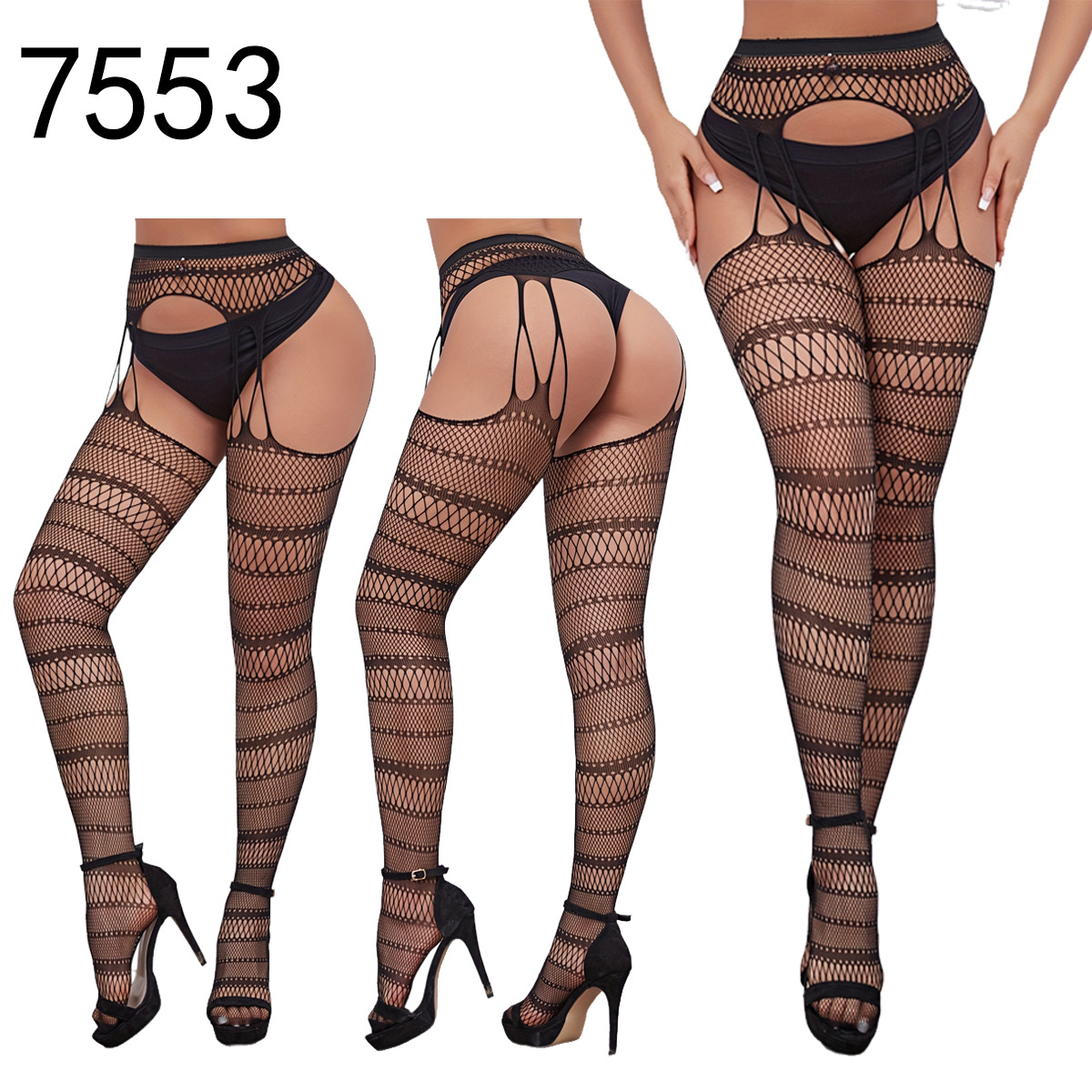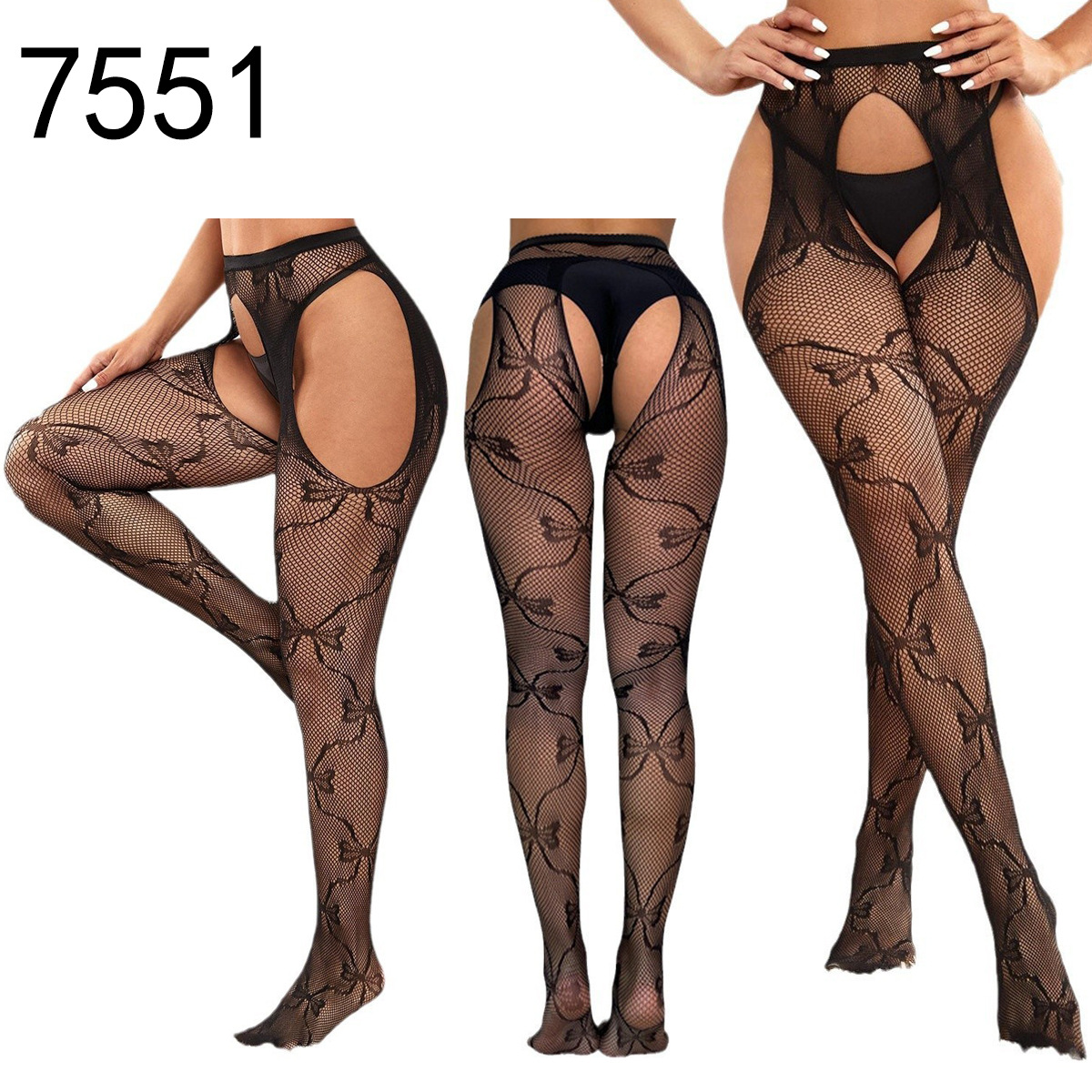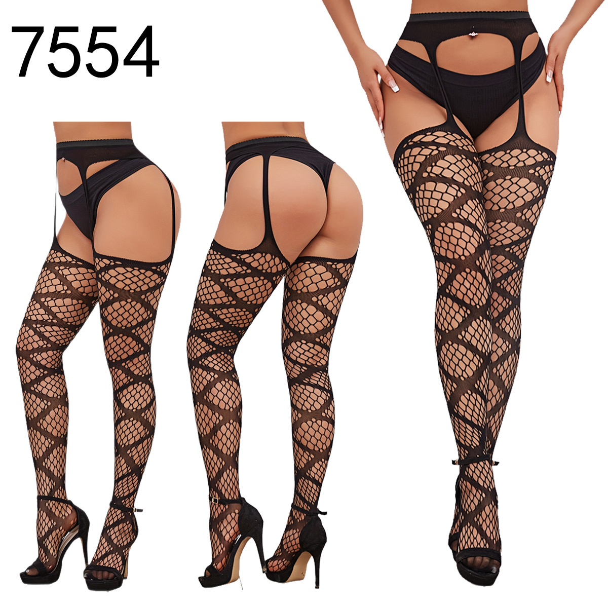 국경을 넘는 새로운 스타일의 섹시한 서스펜더 메쉬 스타킹 블랙 실크 스타킹 고탄성 섹시한 팬티 스타킹 여성용 오픈 가랑이 고급 메쉬 7546
