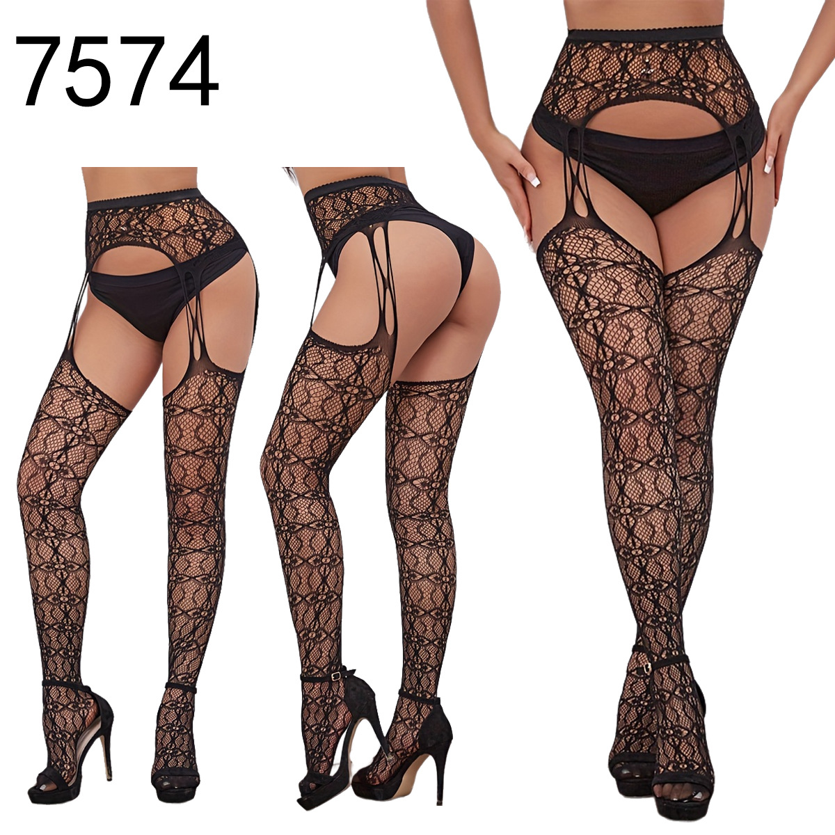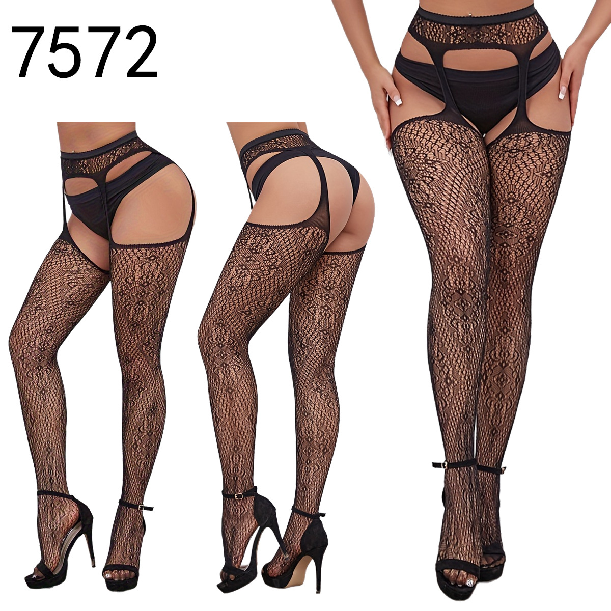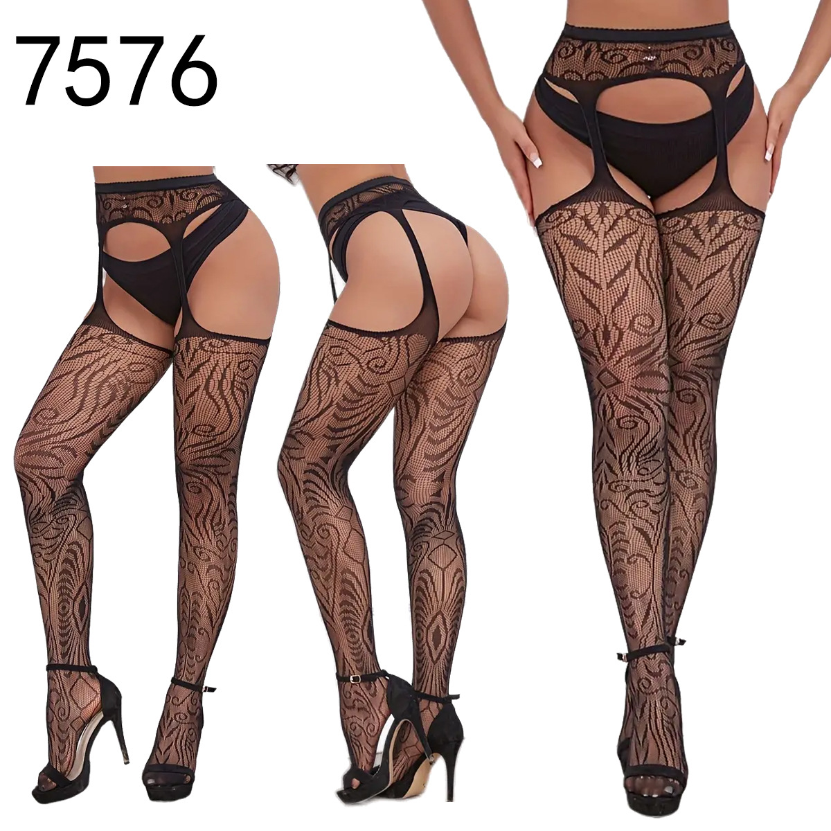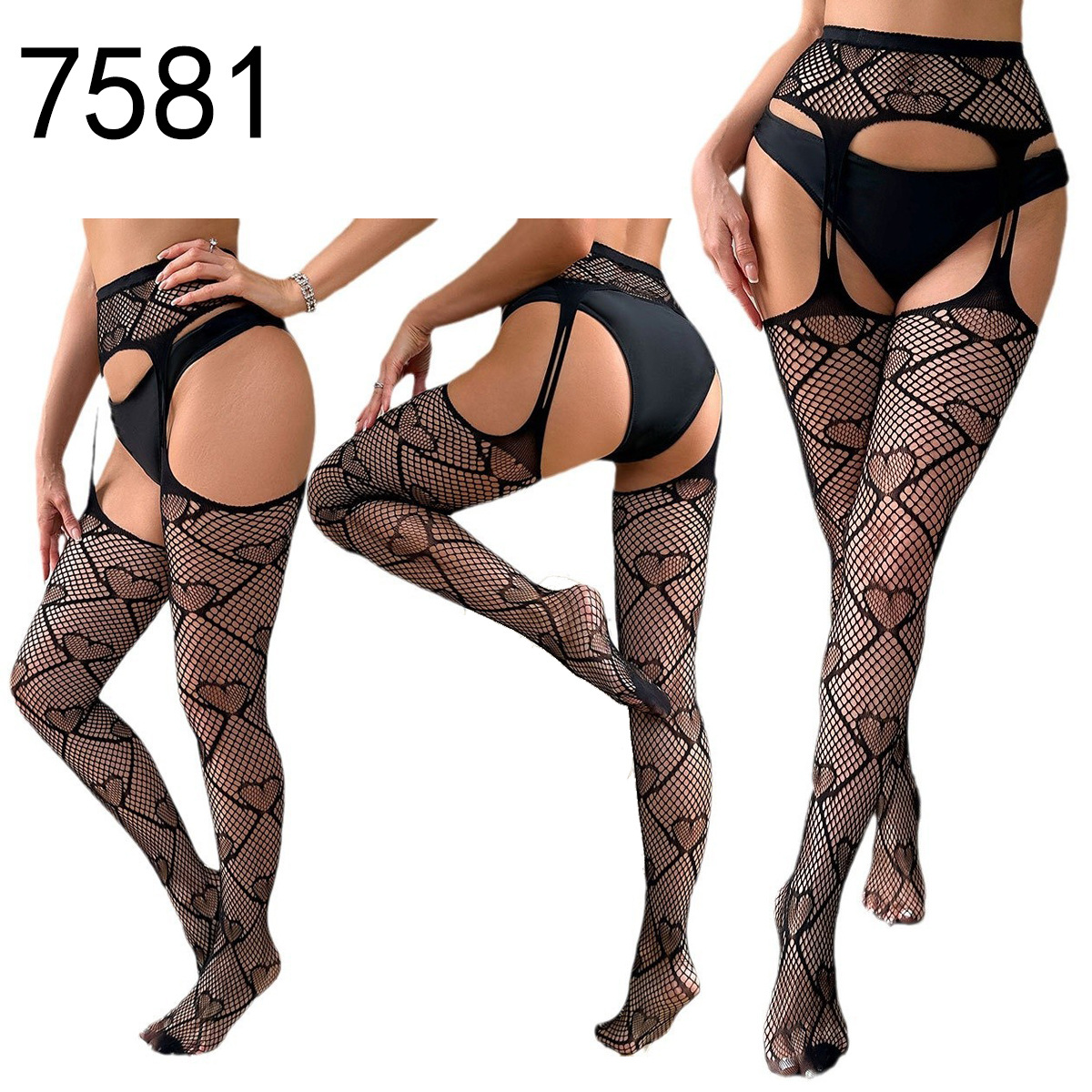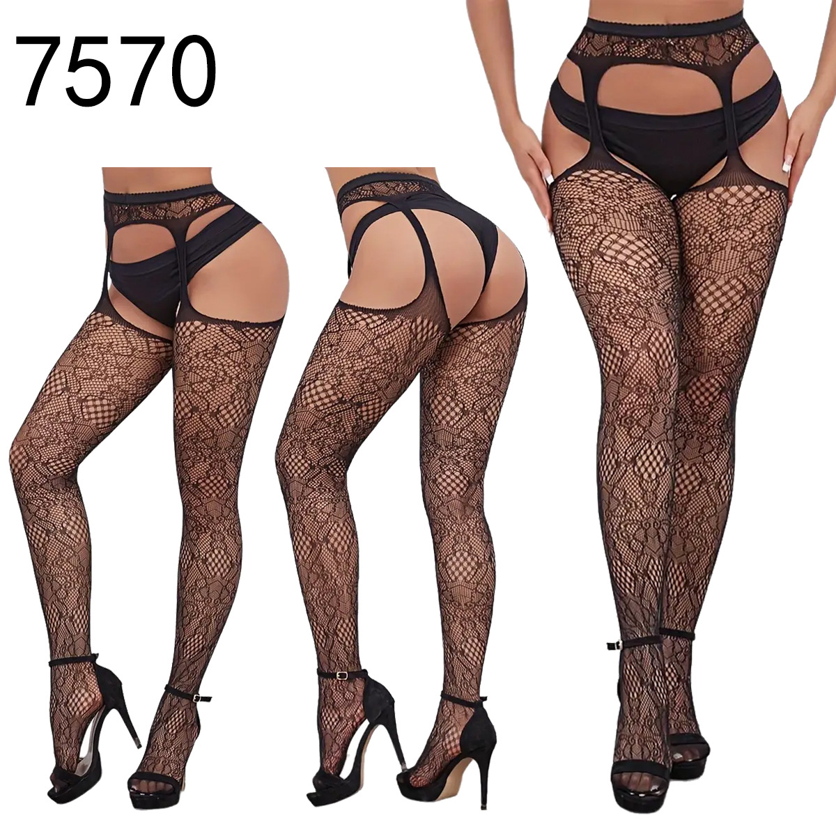국경을 넘는 새로운 스타일의 섹시한 서스펜더 메쉬 스타킹 블랙 실크 스타킹 고탄성 섹시한 팬티 스타킹 여성용 오픈 가랑이 고급 메쉬 7546
